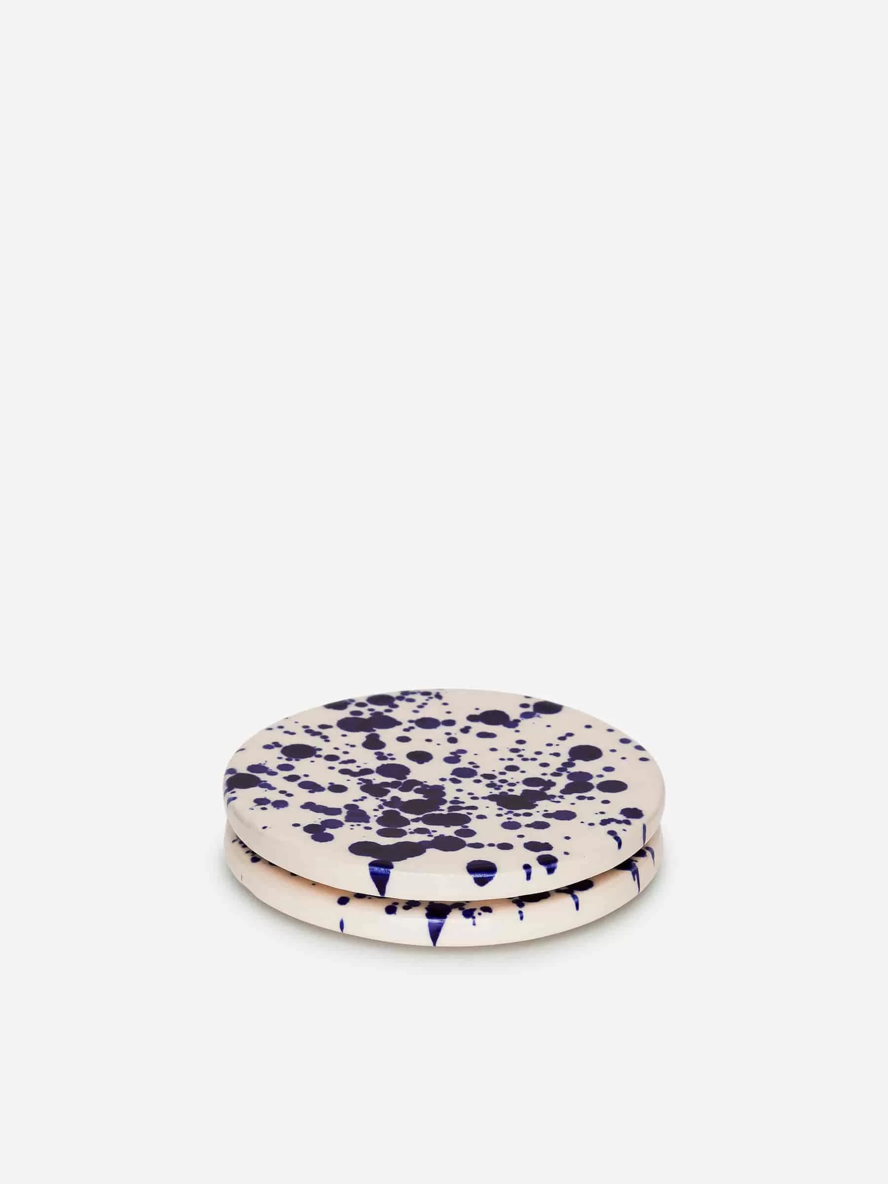 ARKE Homeware Stoneware Coasters Set of 2 Off White/Blue