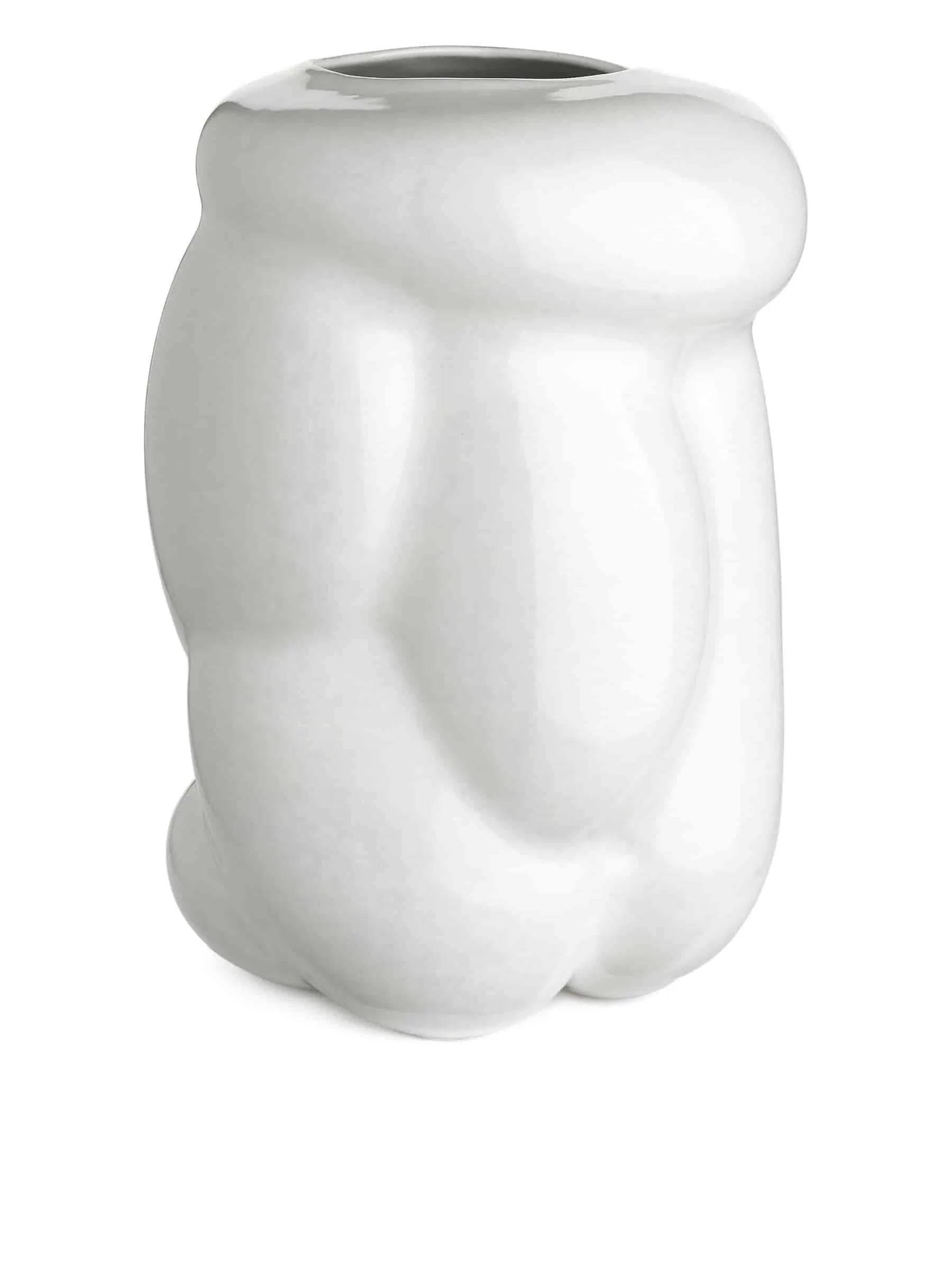 Organic shapes vase for plants and flowers made from glazed terracotta. Height 25.3 cm. Diameter 17 cm. Top rim 8.6 cm.
