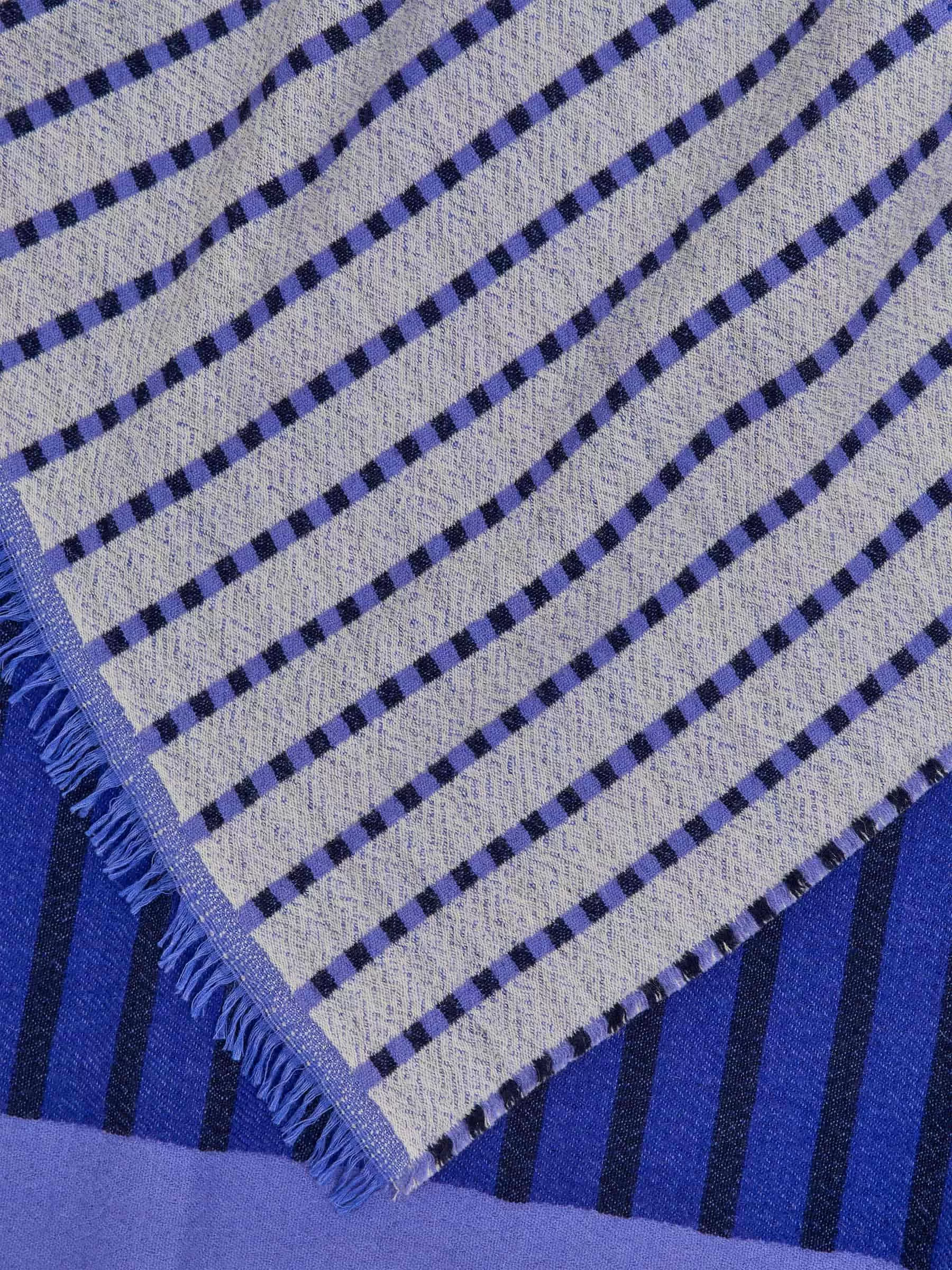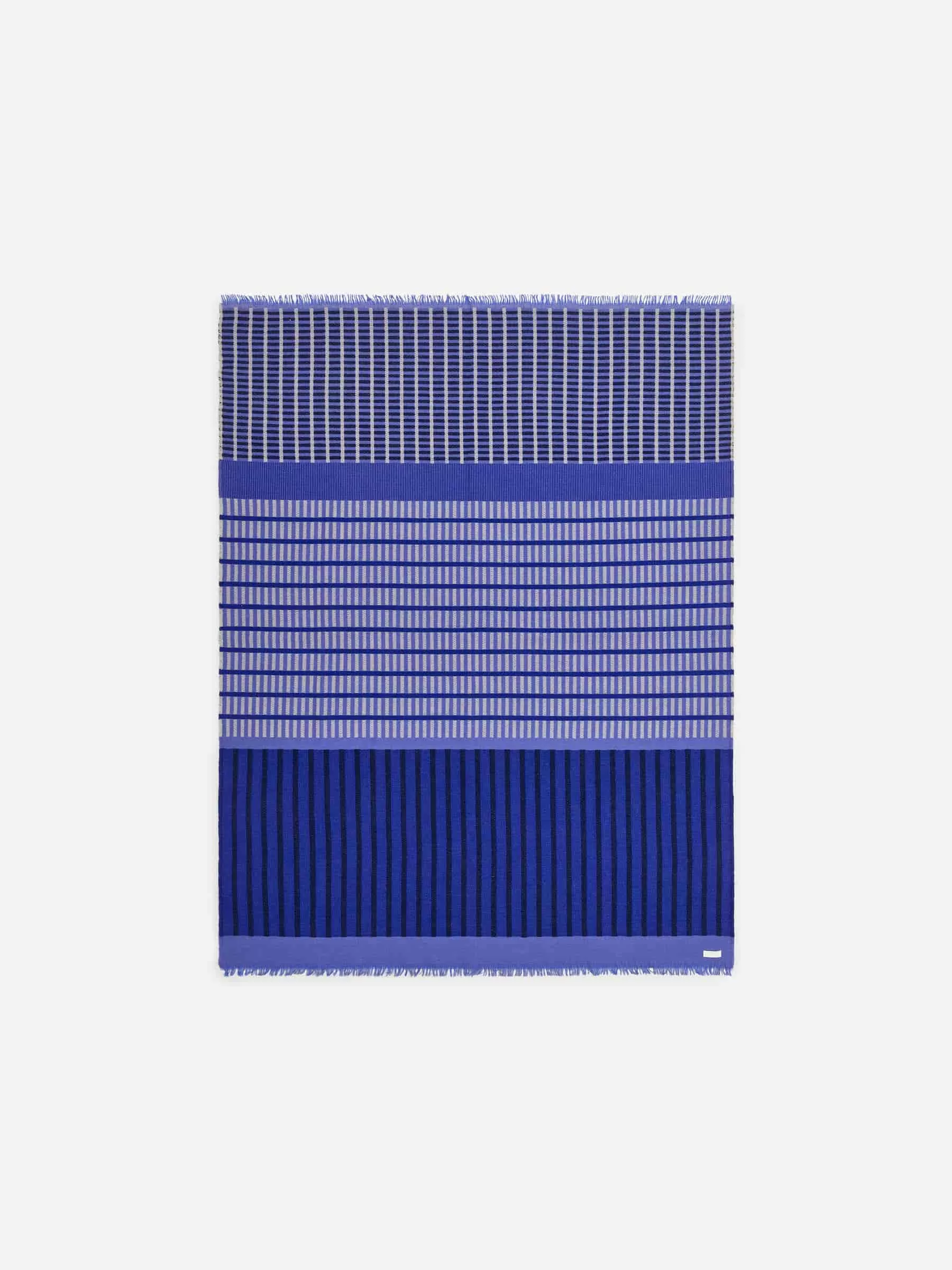 Blanket made wool. Detailed with fringes along the shorter edges. Measurements 130 cm x 70 cm. This blanket contains 100% RWS wool, certified by control union 872195. Products certified to the Responsible Wool Standard (RWS) contain wool fiber from farms independently certified to animal welfare and land management requirements.