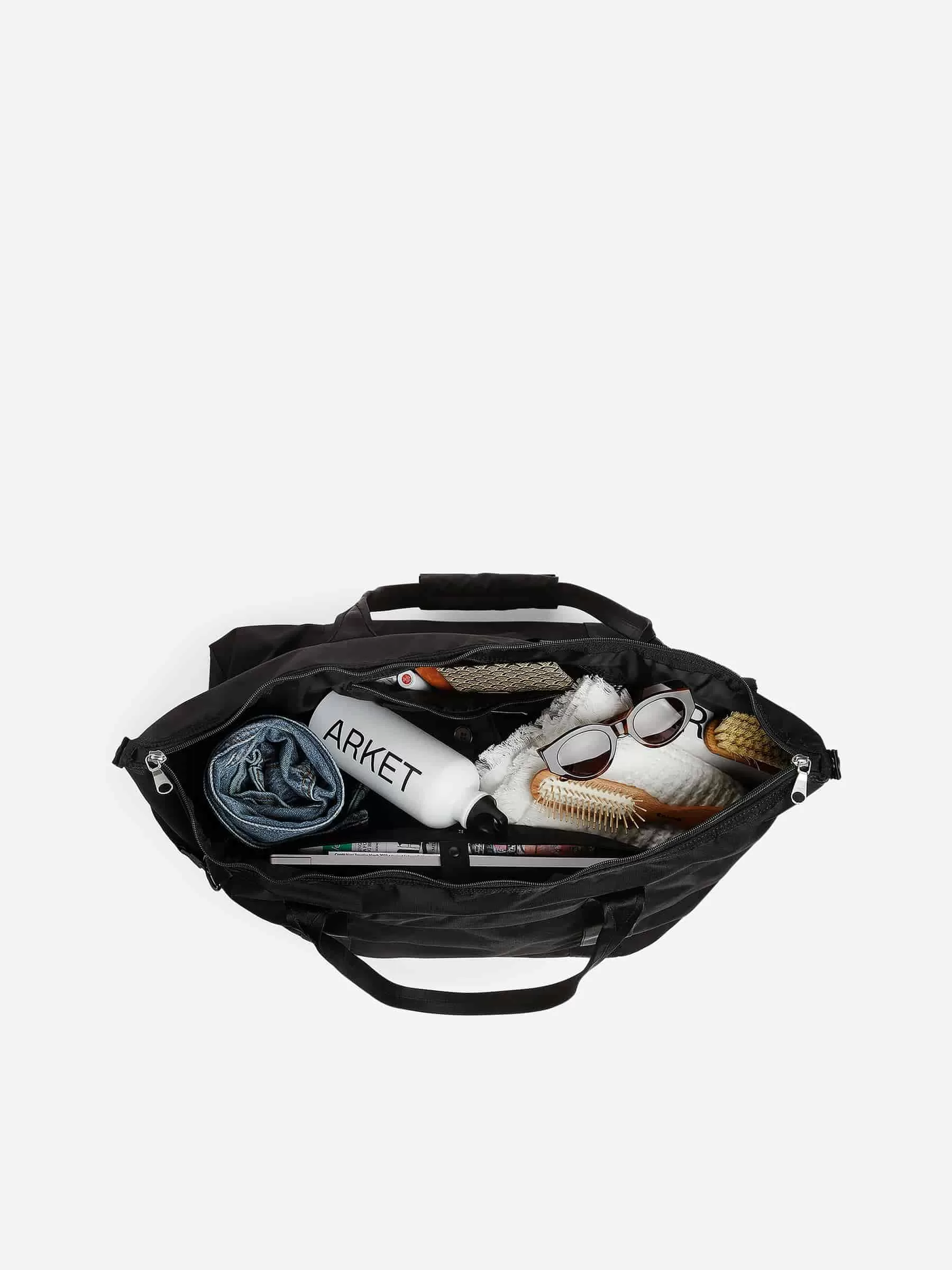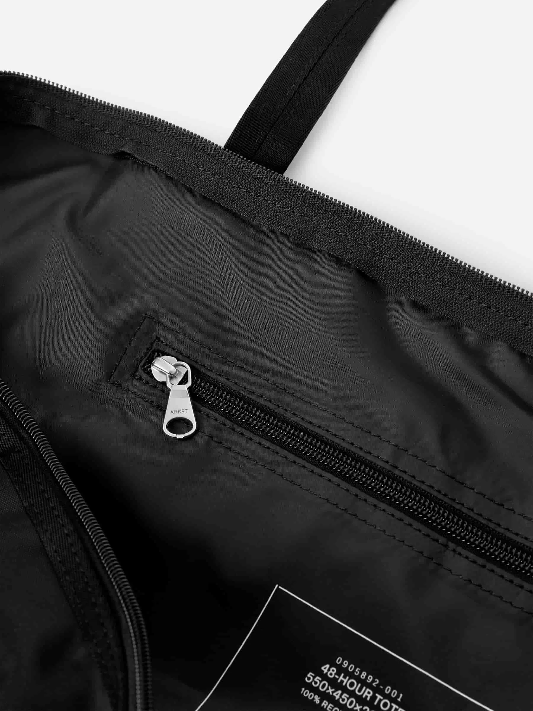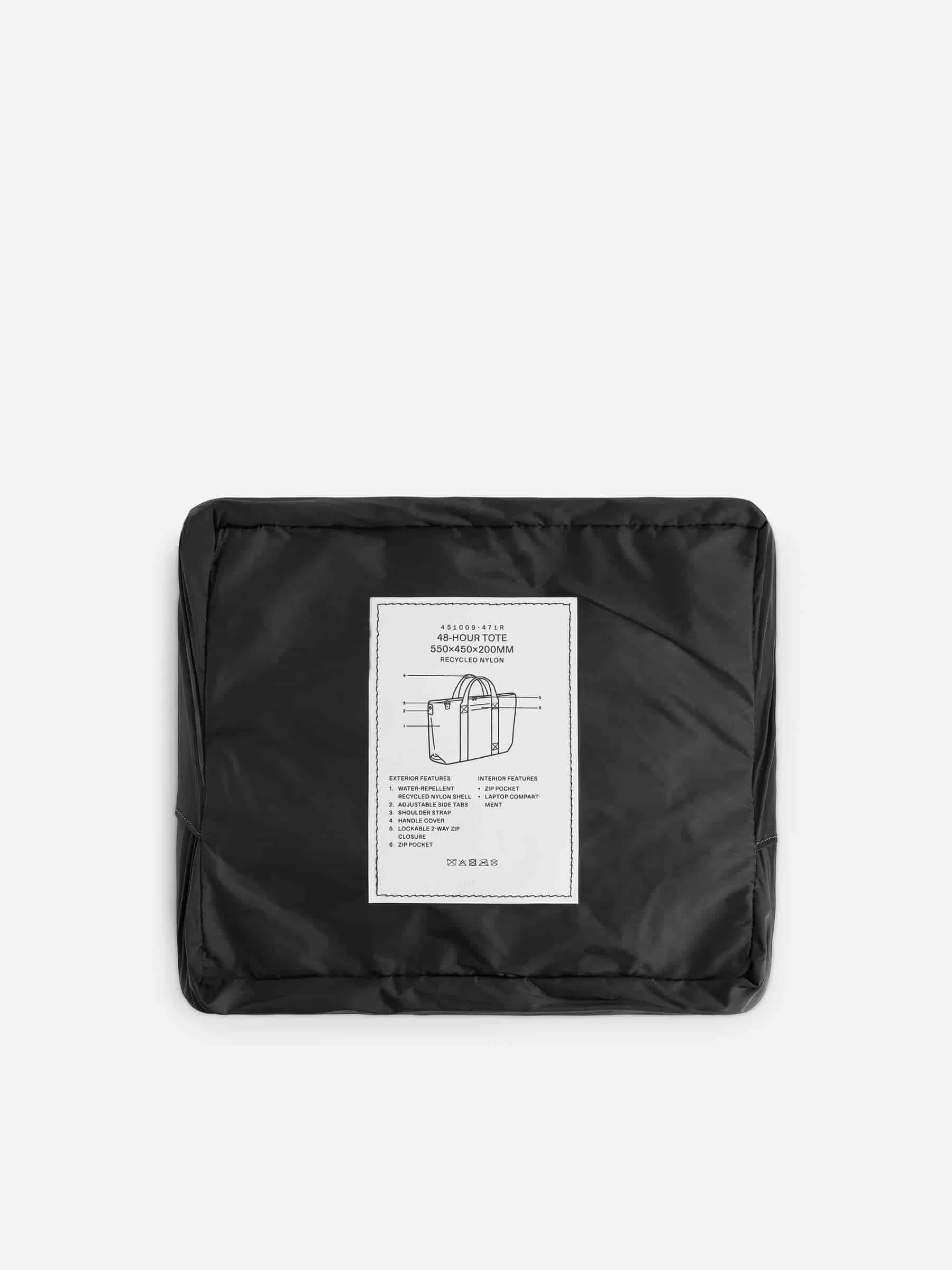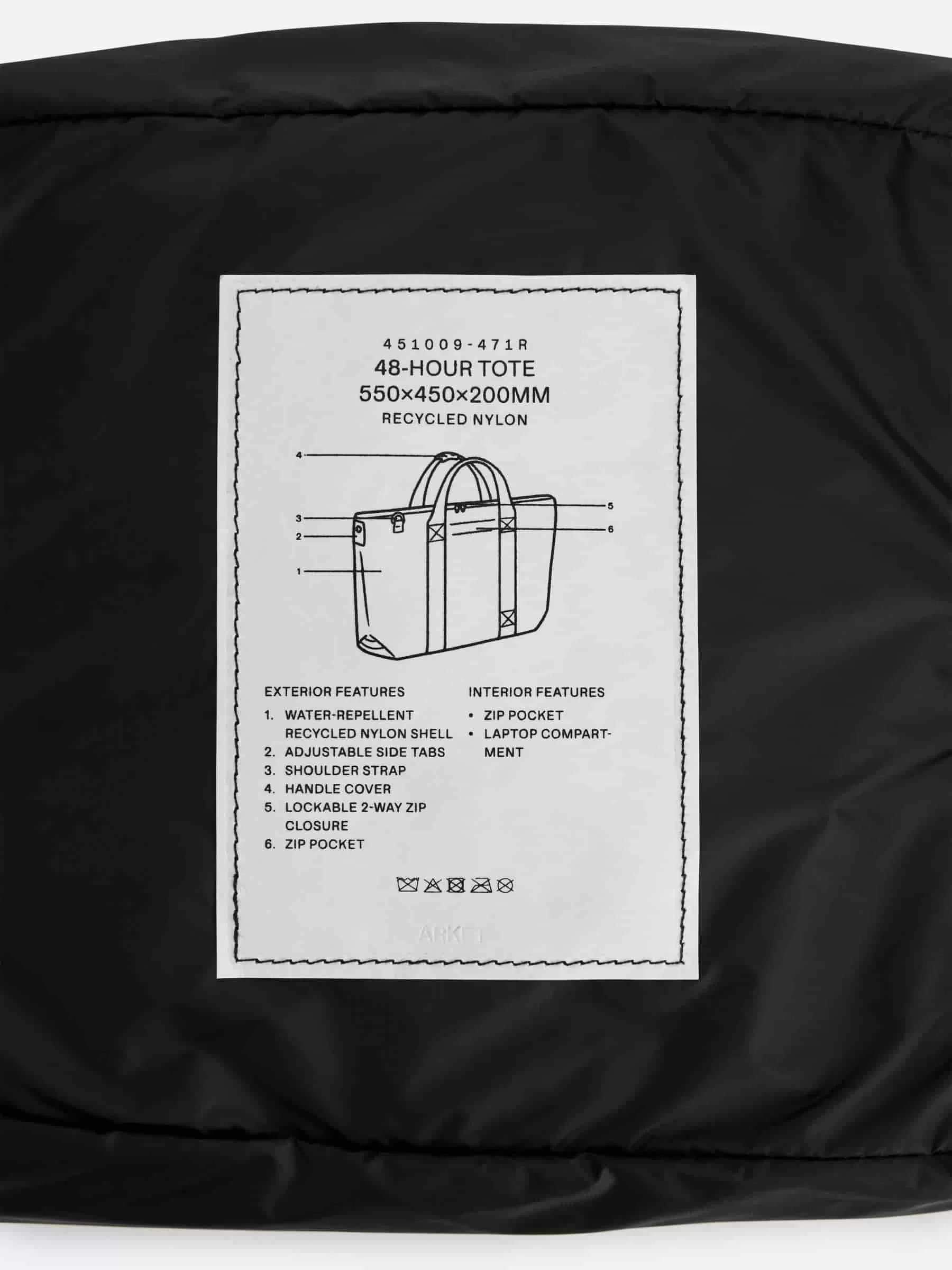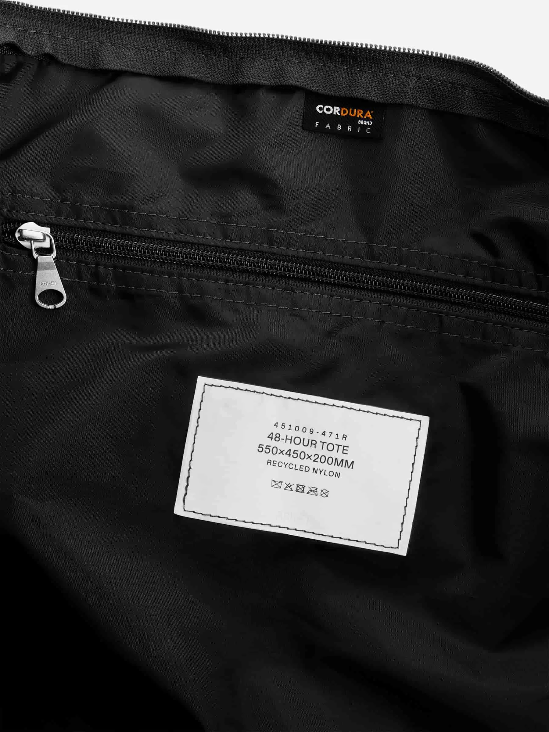The 48-Hour Tote is made from a water-repellent, durable nylon shell fabric. Inner and outer compartments are customised to standard travel items. Styled with lockable 2-way zip closure, adjustable side tabs and handle cover for comfort. Detachable shoulder strap and laptop/tablet compartment. Size 55 x 45 x 20 cm. Lined.