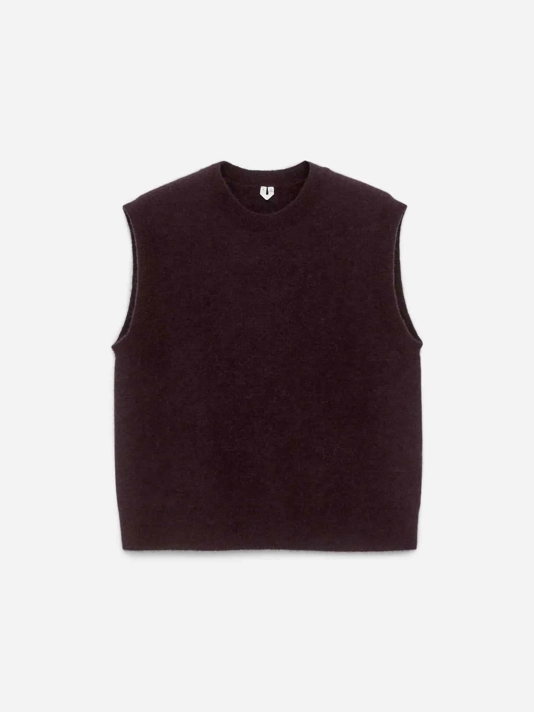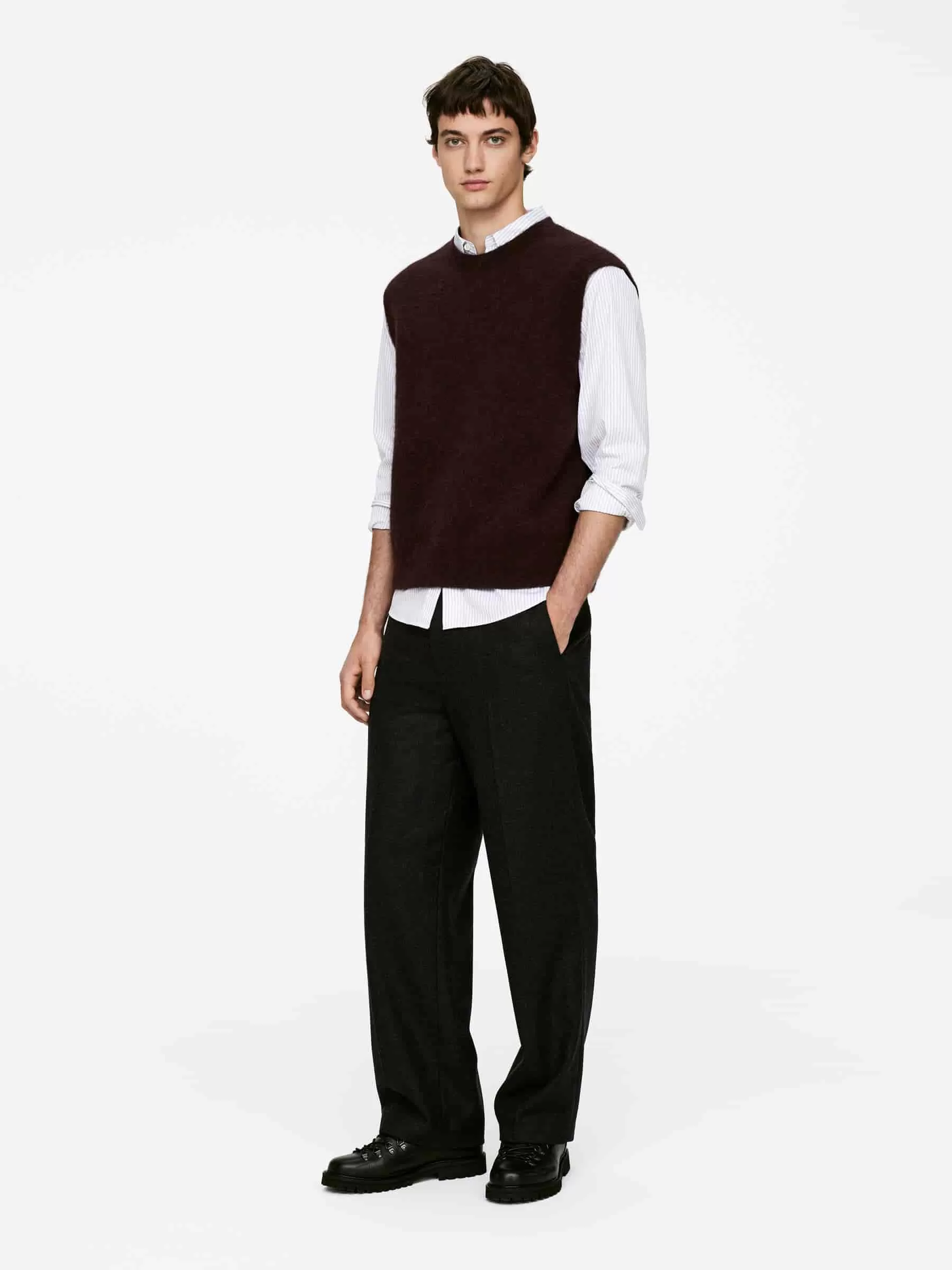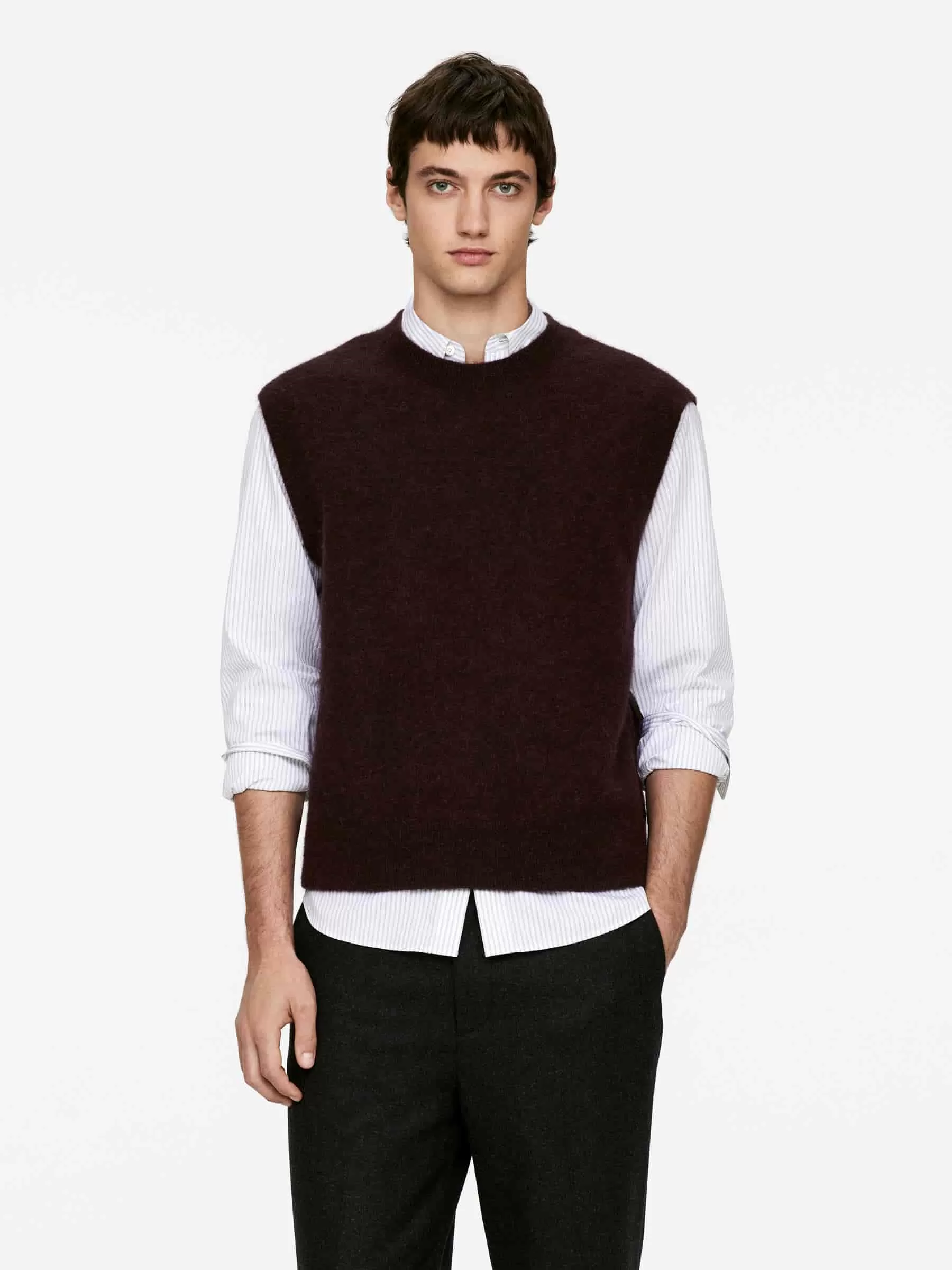 Knitted vest with crew-neck crafted from a blend of alpaca and merino wool. Rib-knitted trims.