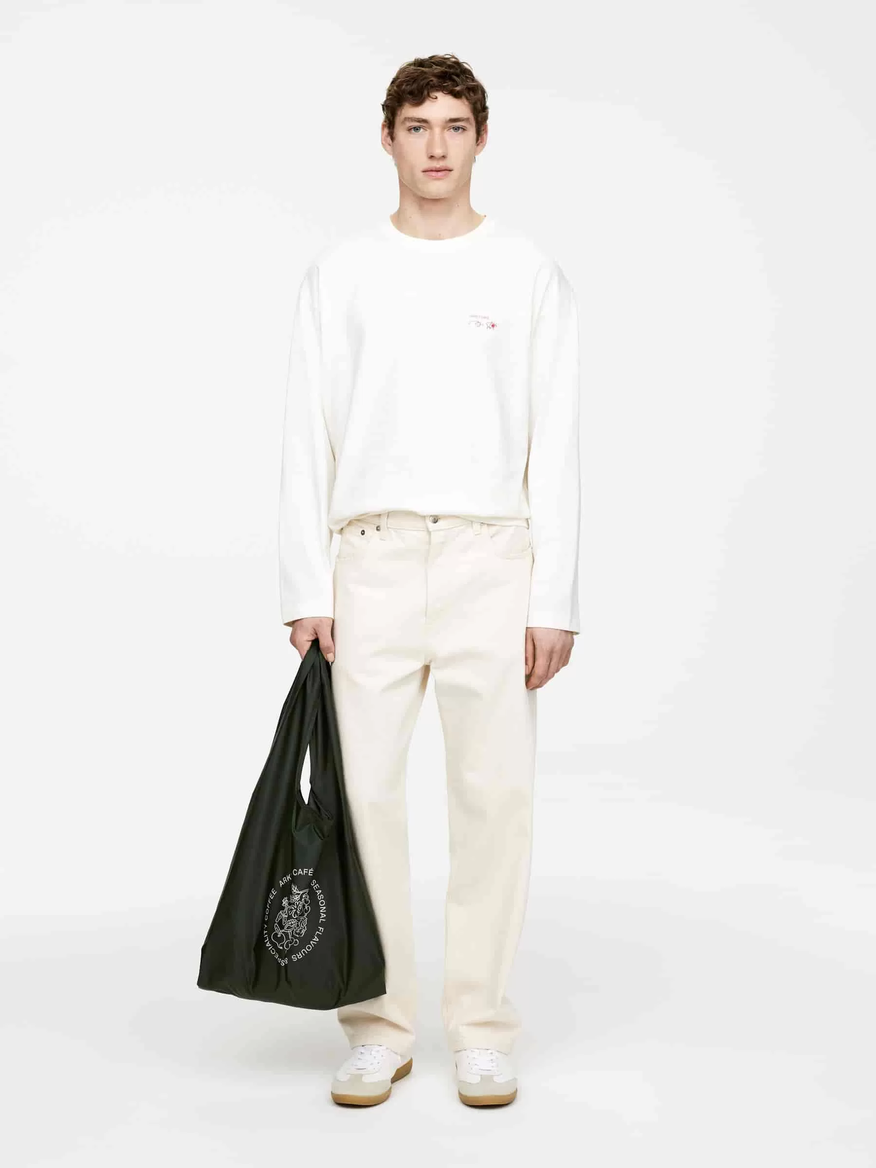 Lightweight shopper with a printed motif. A practical bring-along piece that packs into its own pocket for easy storage. Dimensions 70 cm x 34 cm. This product is part of the ARKET CAFÉ collection featuring illustrations by Olga Prader.