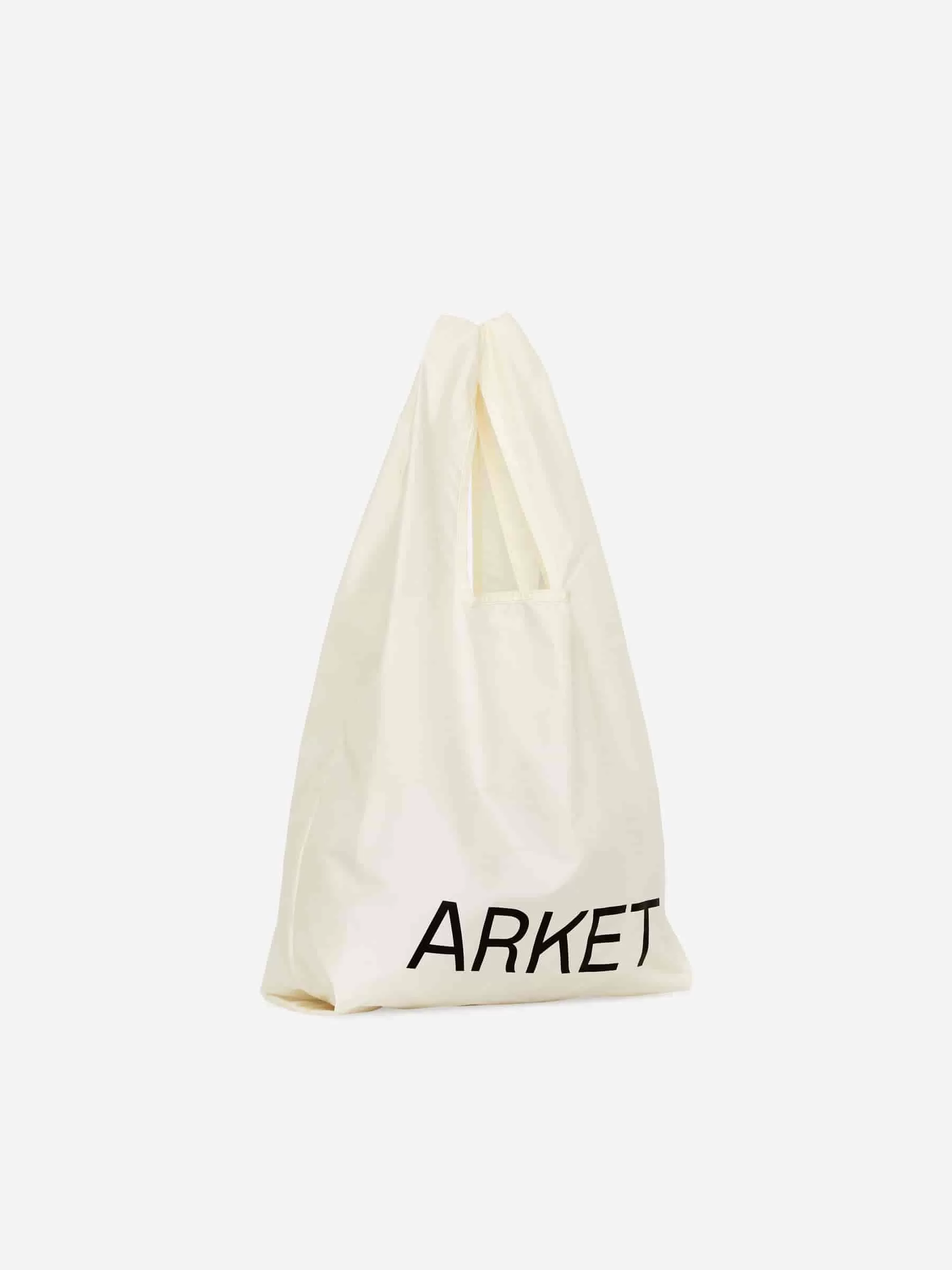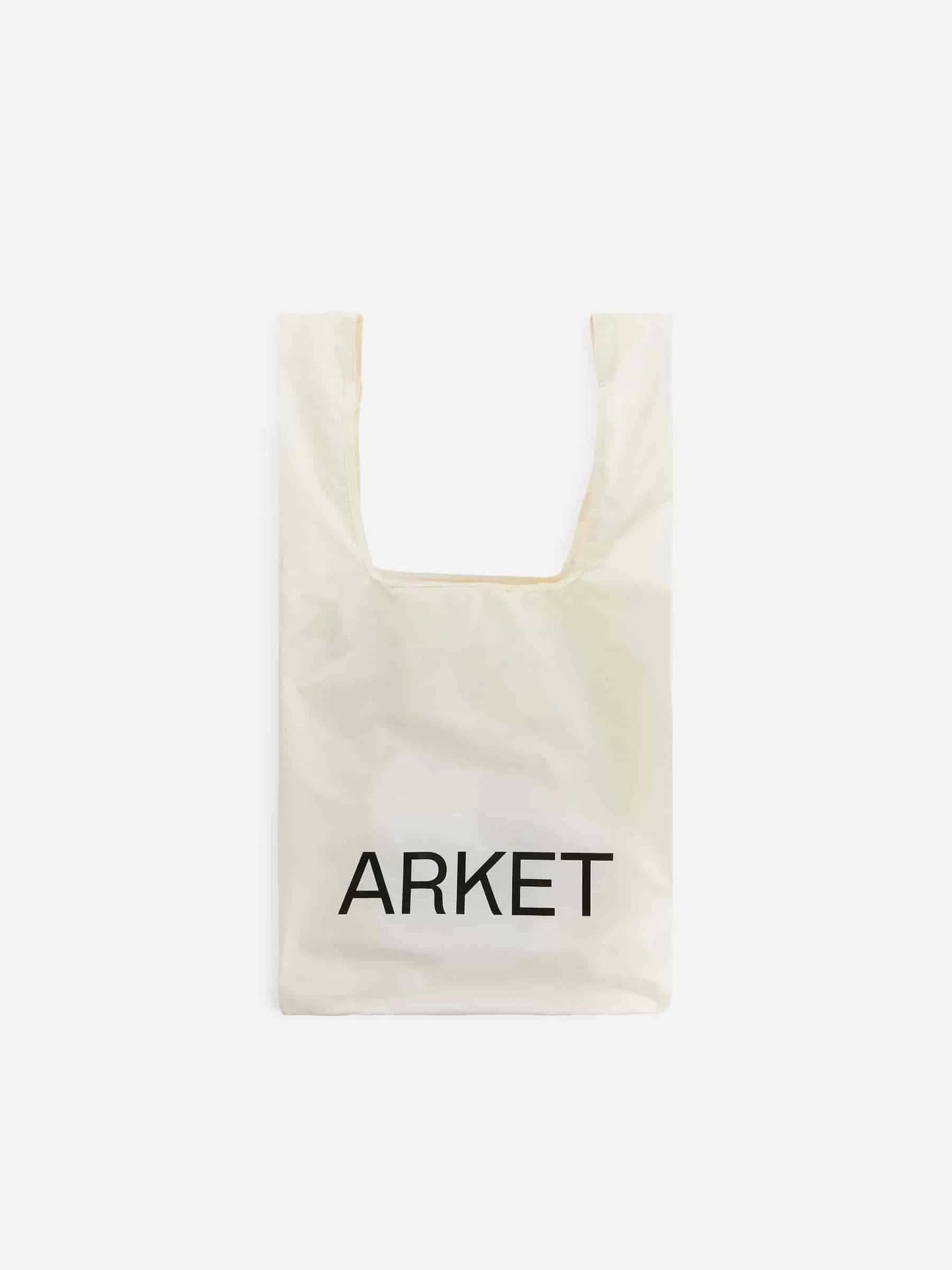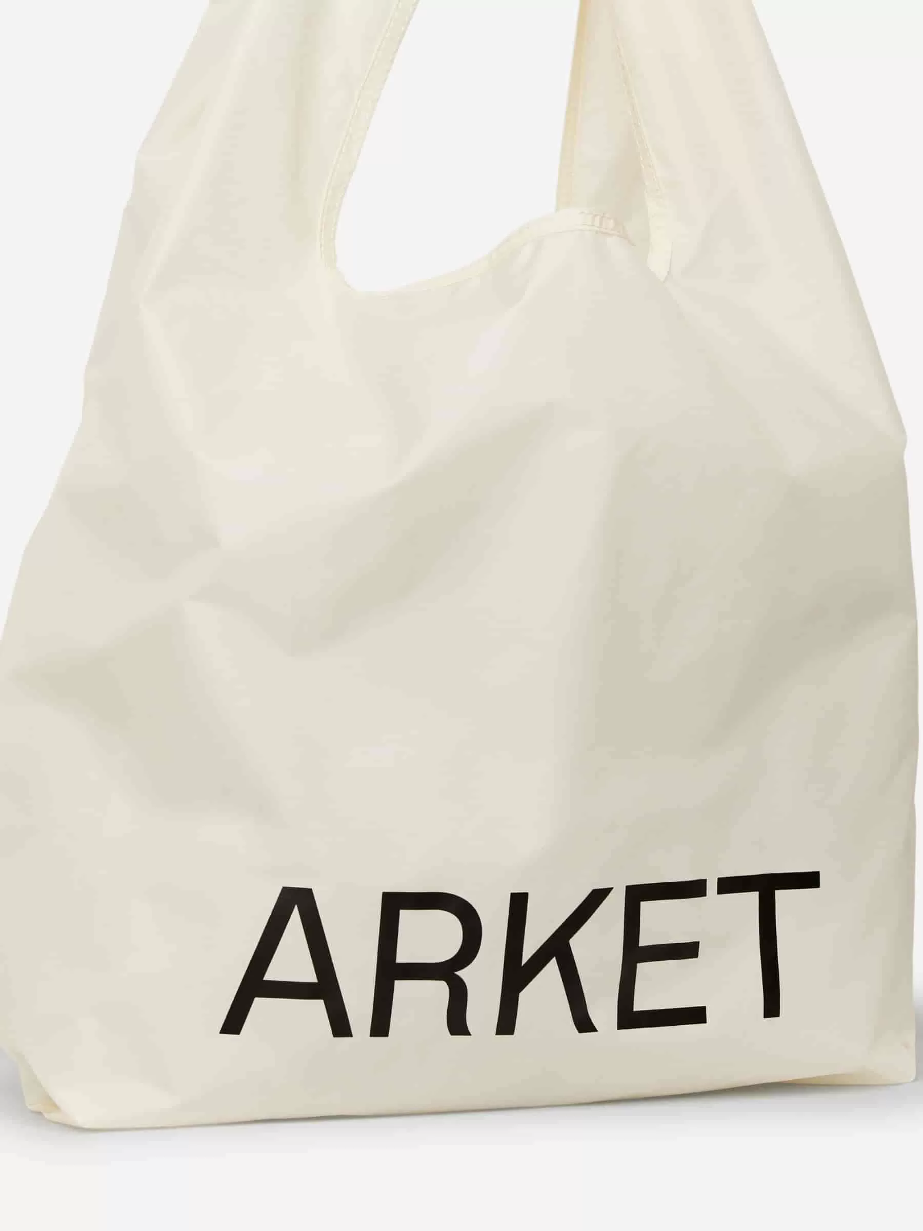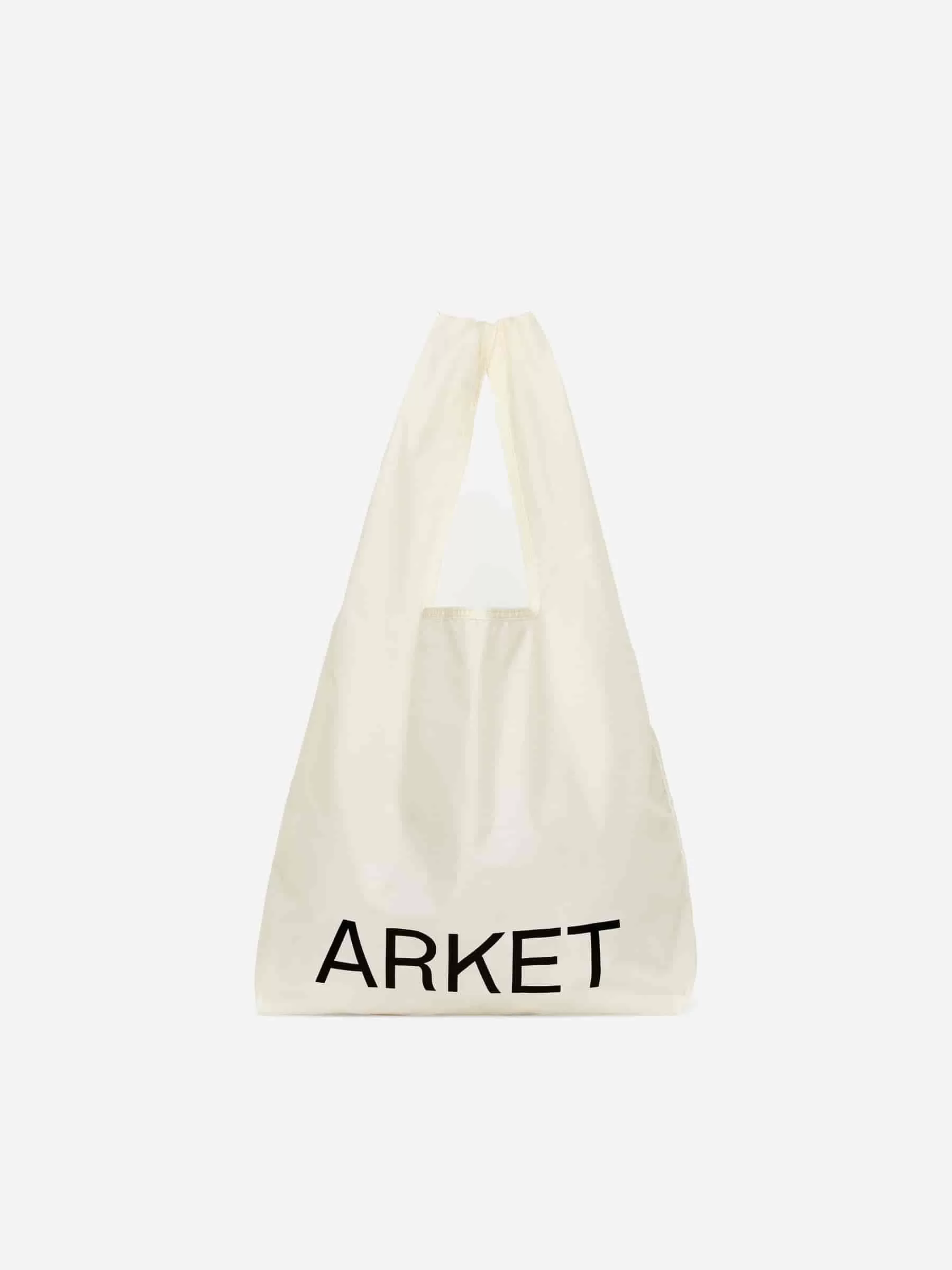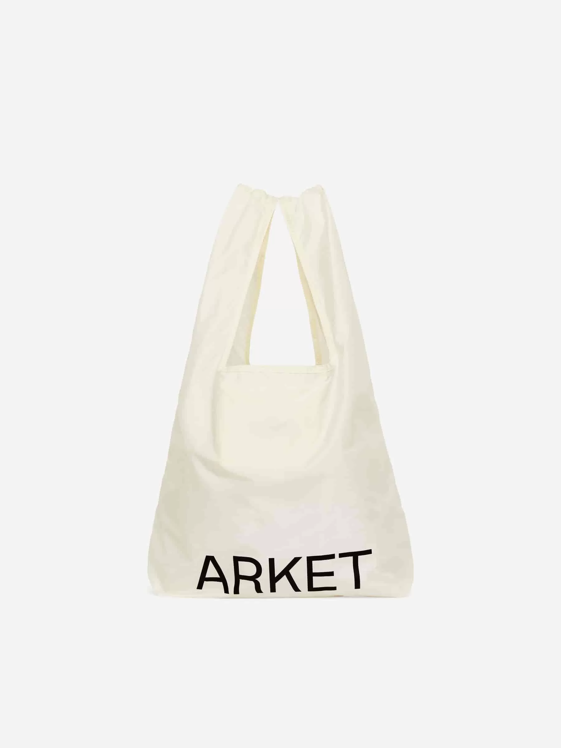 Lightweight shopper with a printed ARKET logo. A practical bring-along piece that packs into its own pocket for easy storage. Dimensions 70 cm x 34 cm.