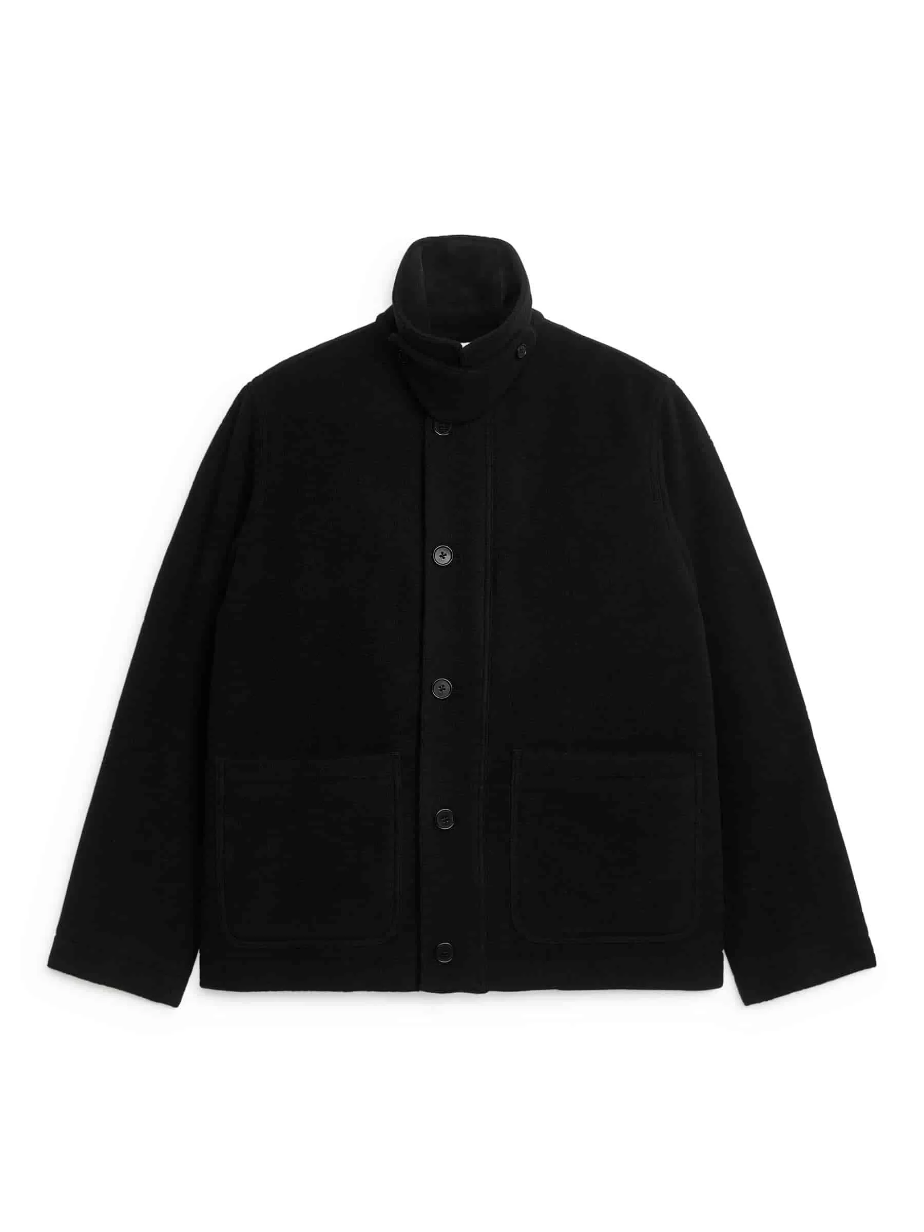 Jacket in a wool blend with a straight, boxy fit. Styled with patch pockets at front and two jetted inner pockets. Fully lined.