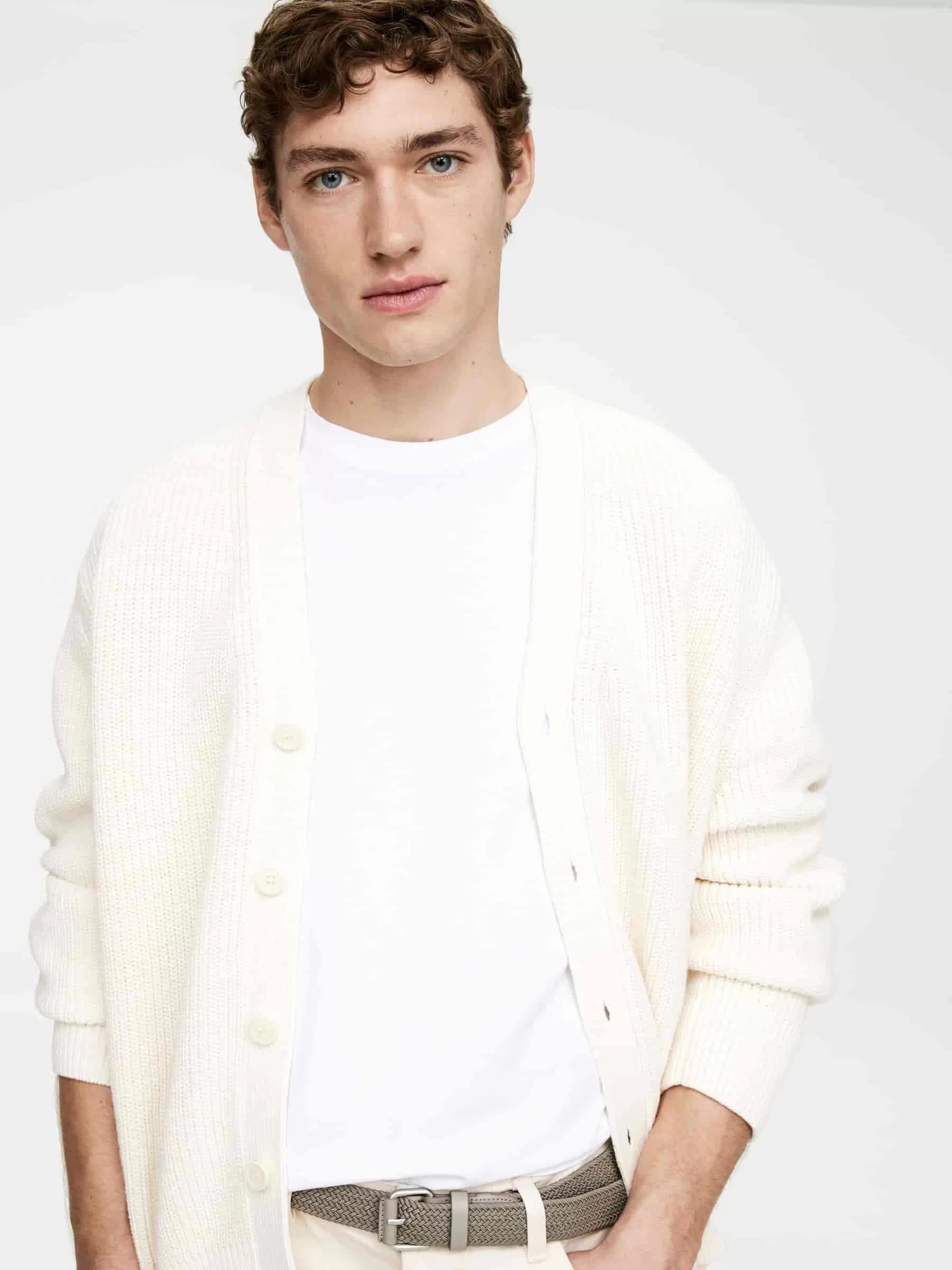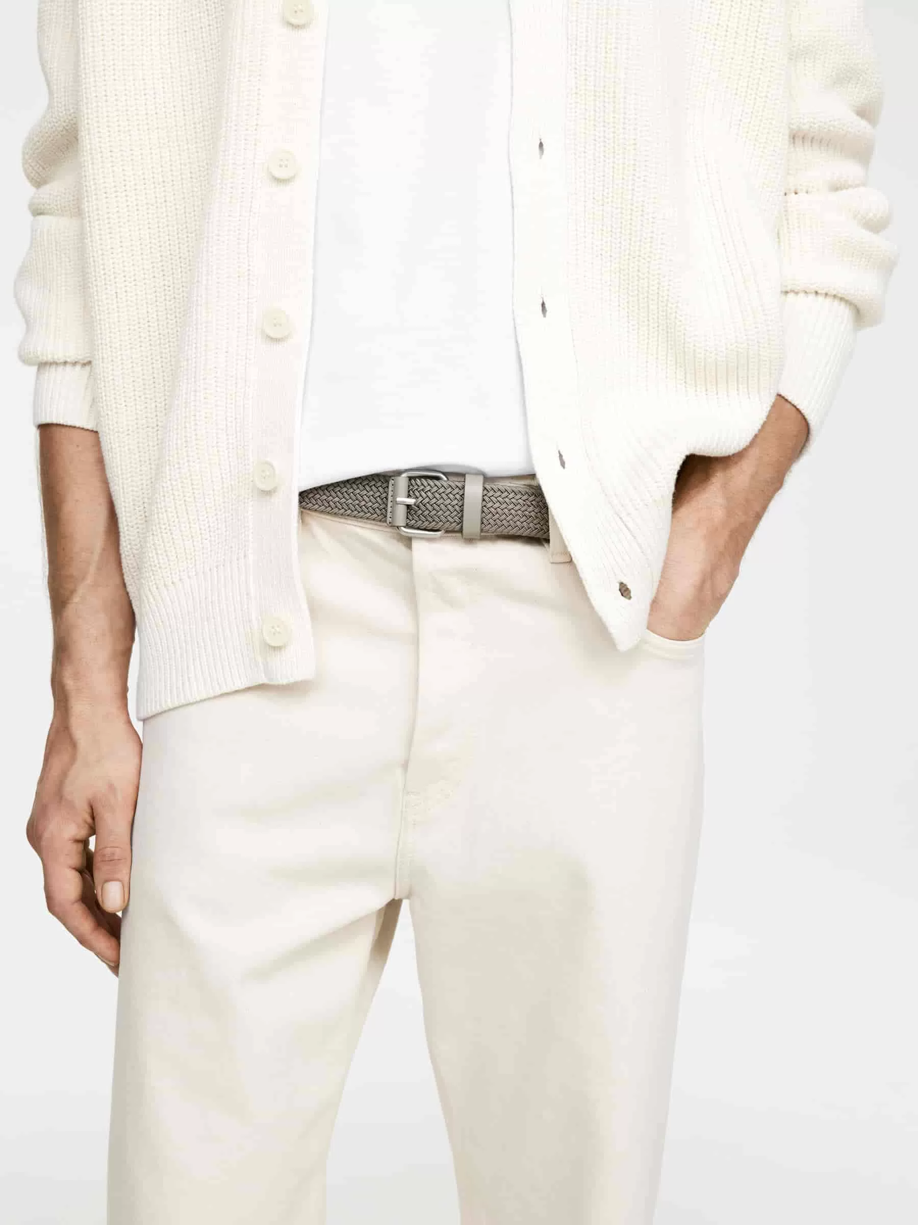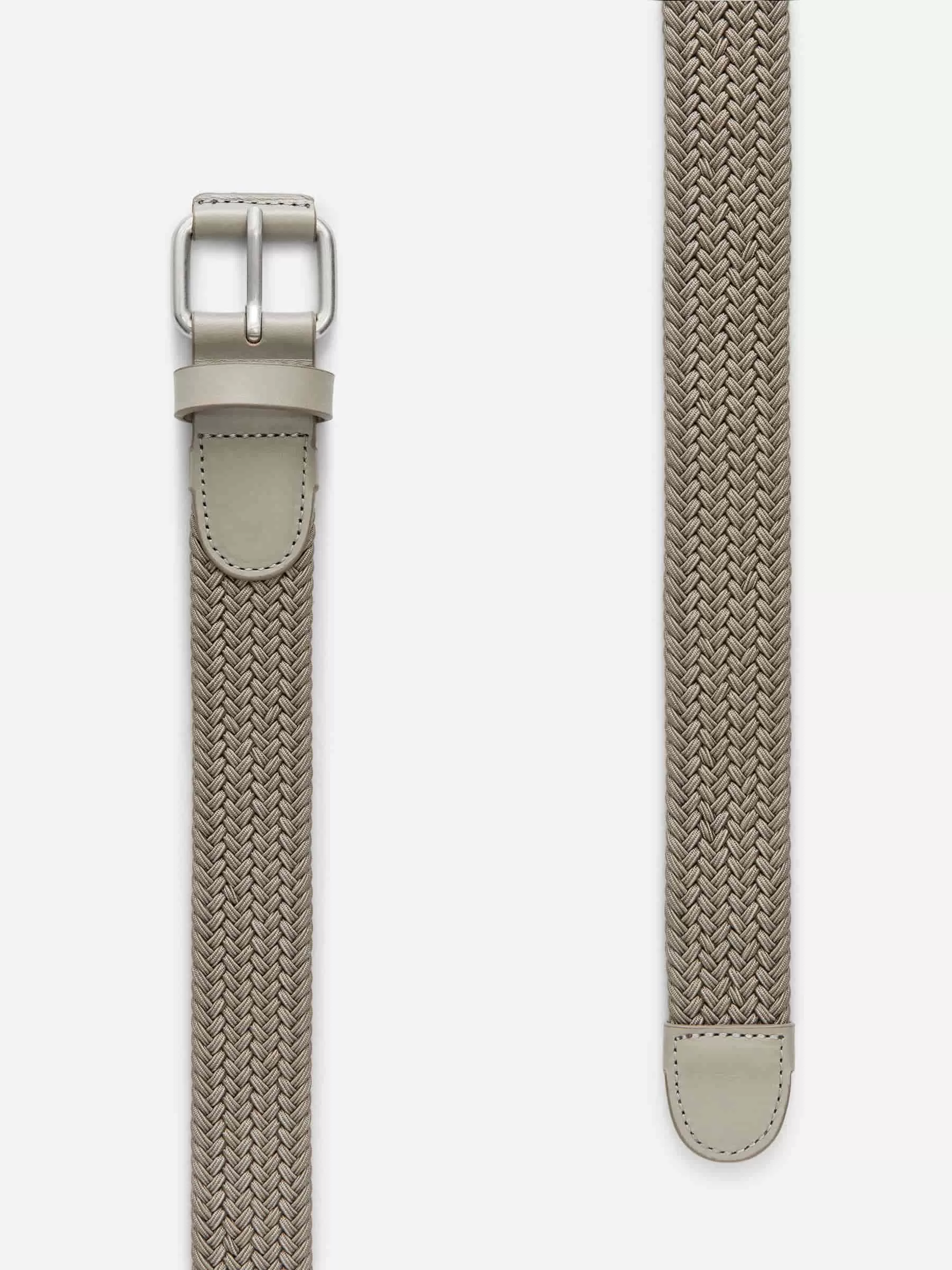 Braided belt made from elasticated cords. Trimmed with leather details. Width 3 cm.