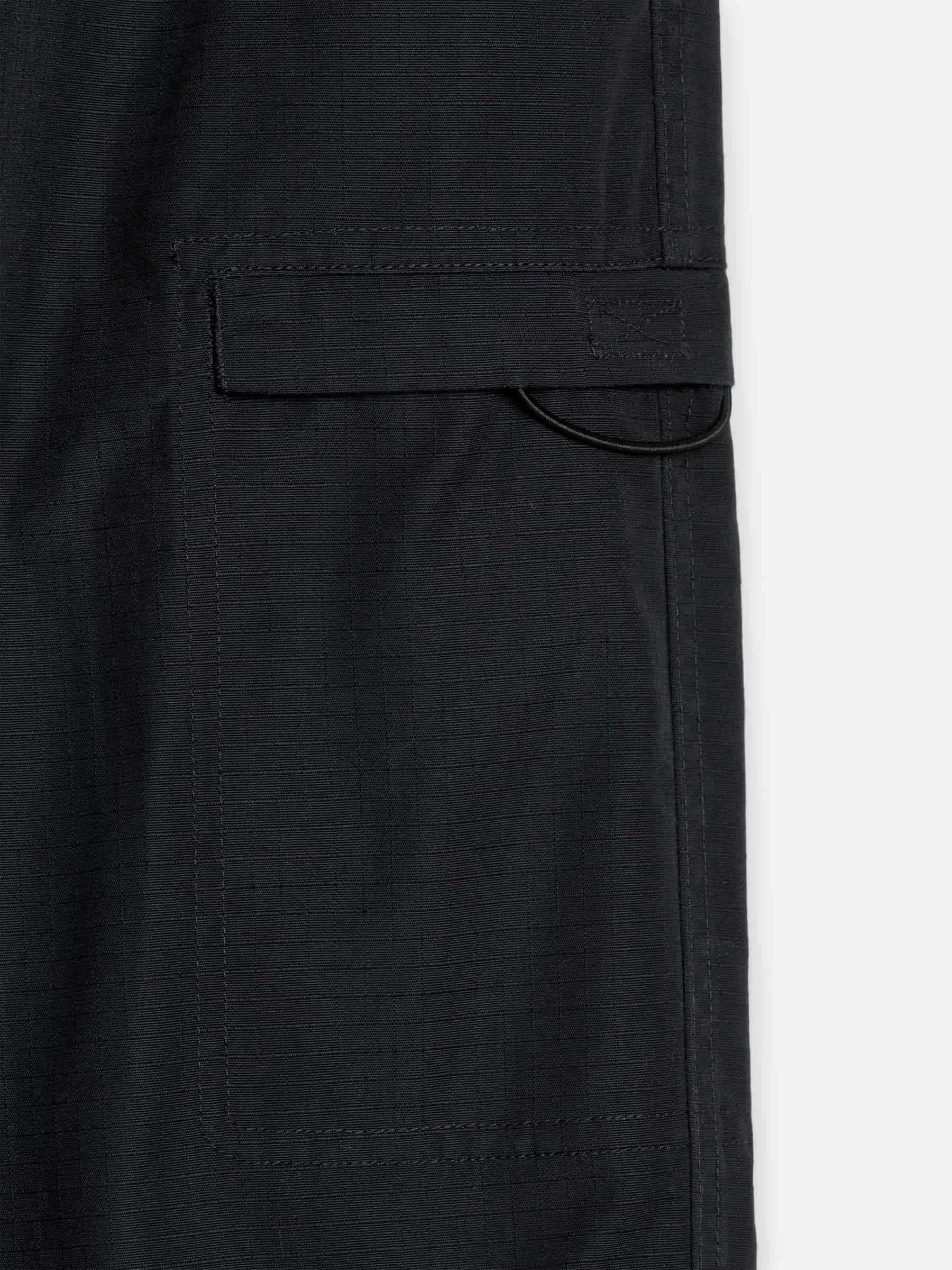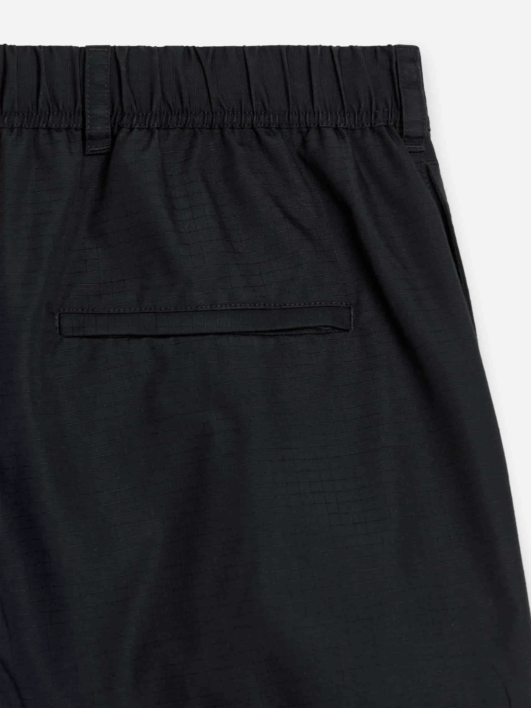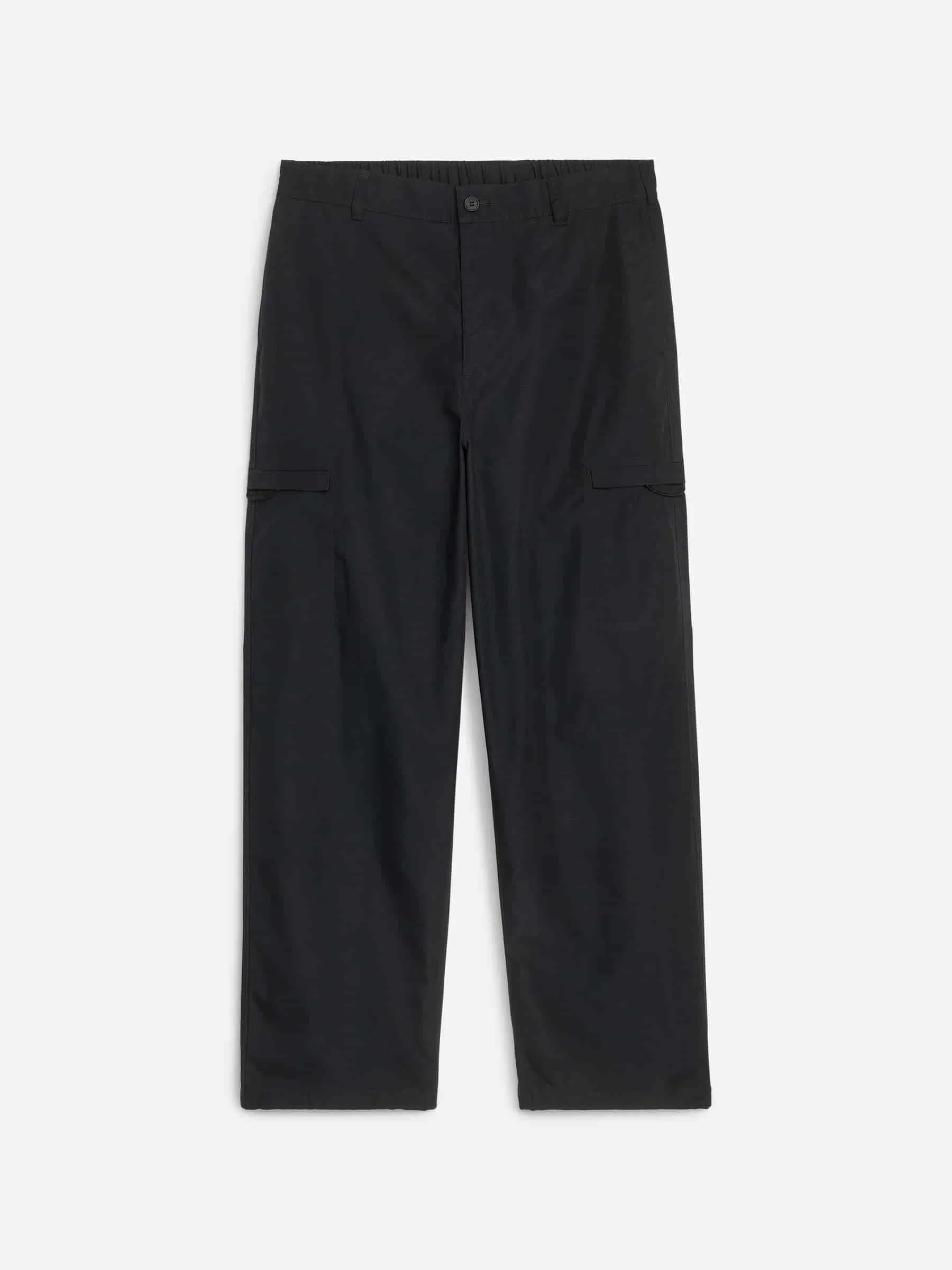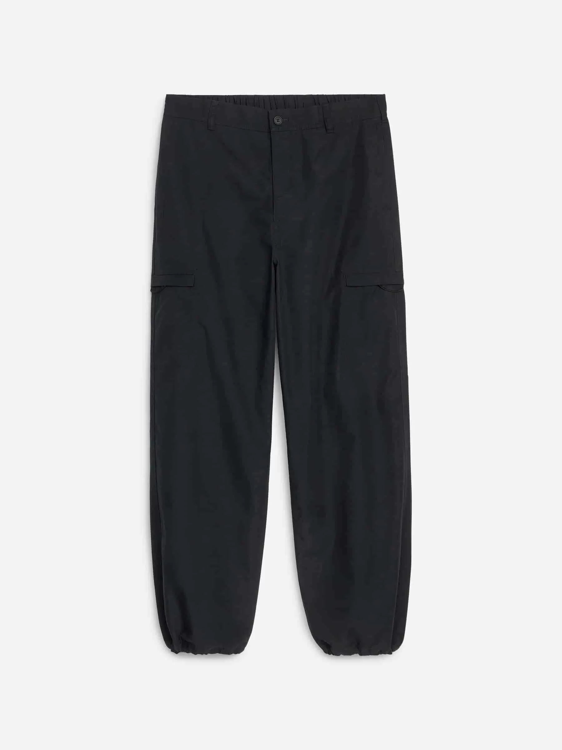 Functional trousers crafted from a cotton-polyester ripstop weave. Elastics and zip with snap button at waist. Side pockets with Velcro closure and a zip back pocket. Adjustable bottom hem.