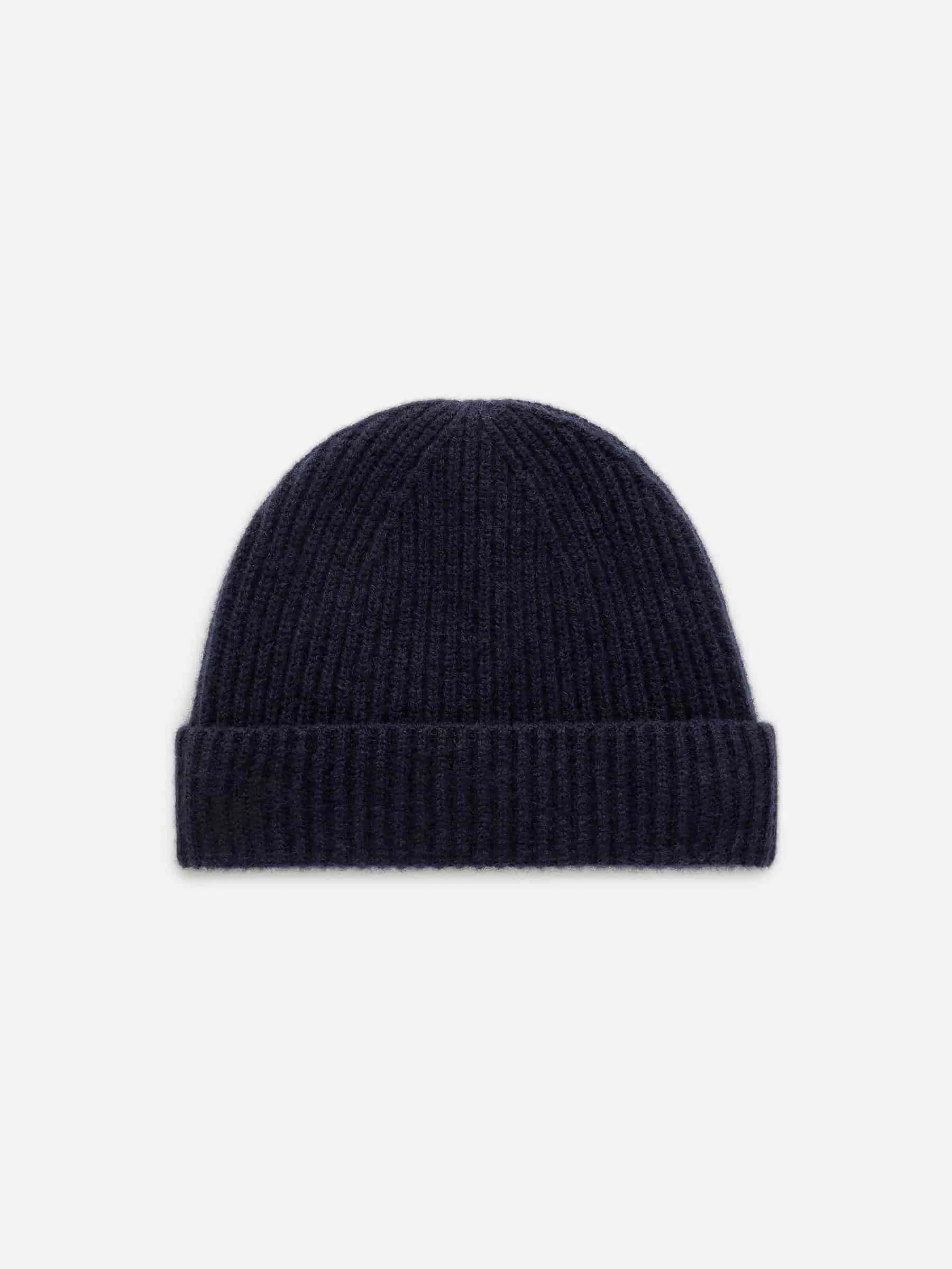 Beanie knitted in a full cardigan stitch made from a soft, warming blend of cashmere and merino wool. Styled with a 6 cm fold up.
