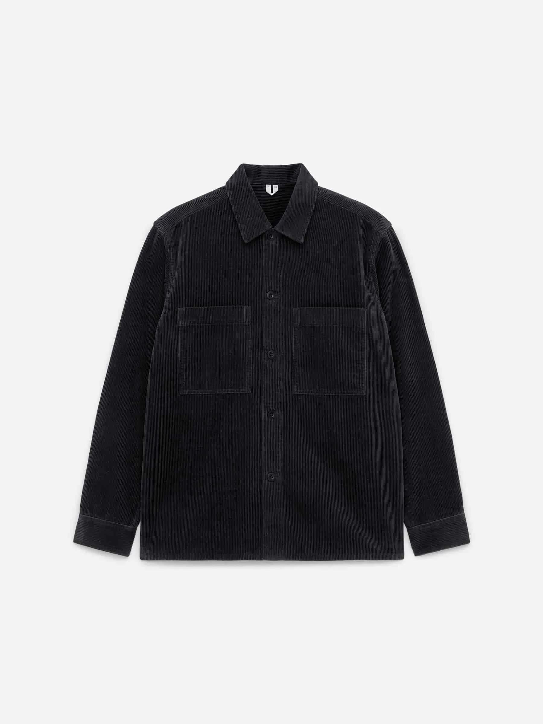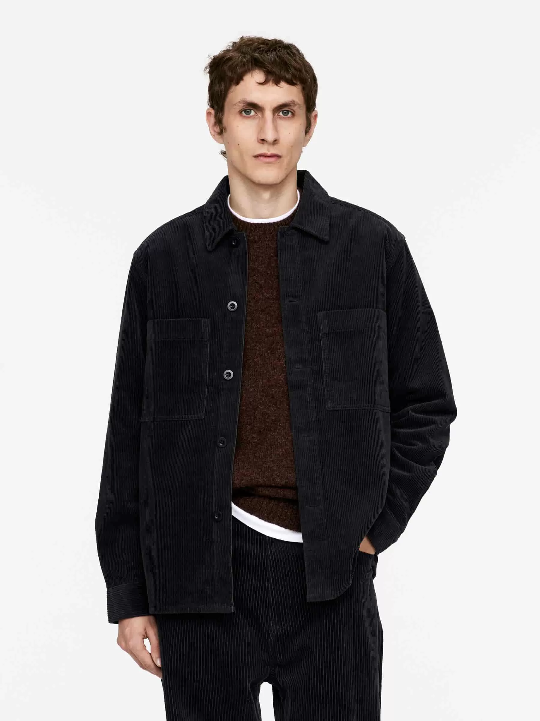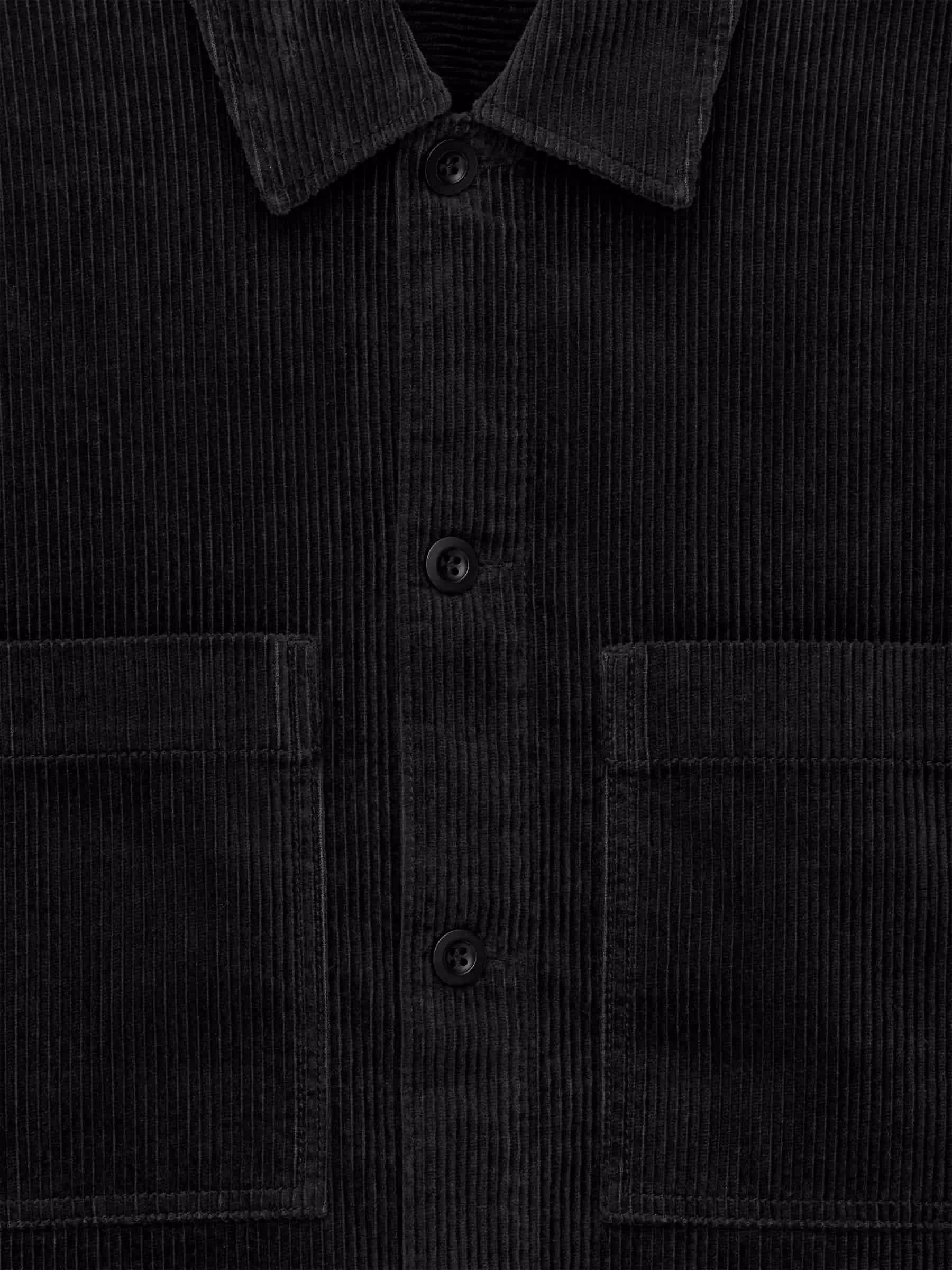 Overshirt crafted from corduroy. A straight-cut style with front buttoning and two patch pockets at chest. Yoke at the back. Buttoned cuffs.