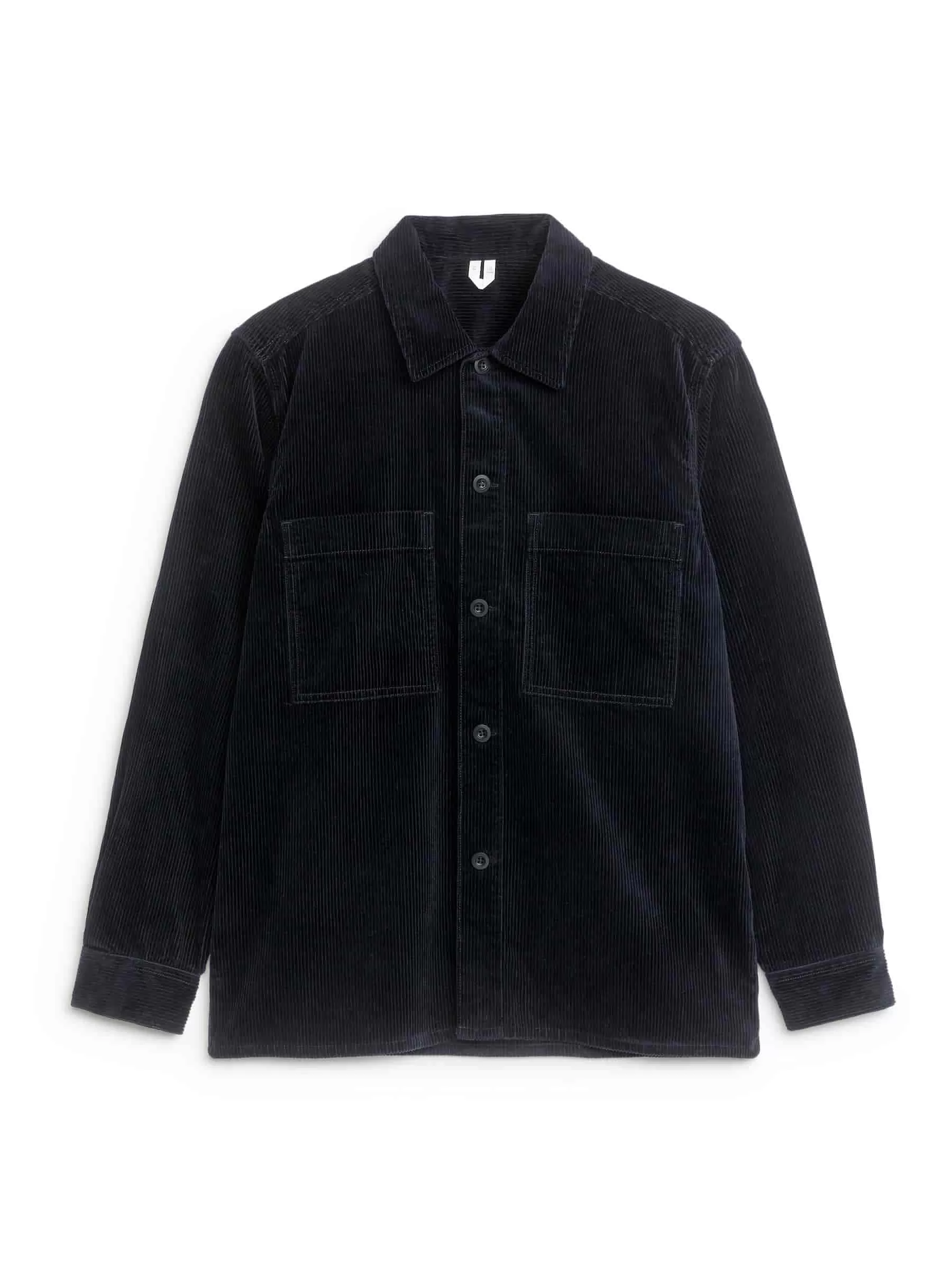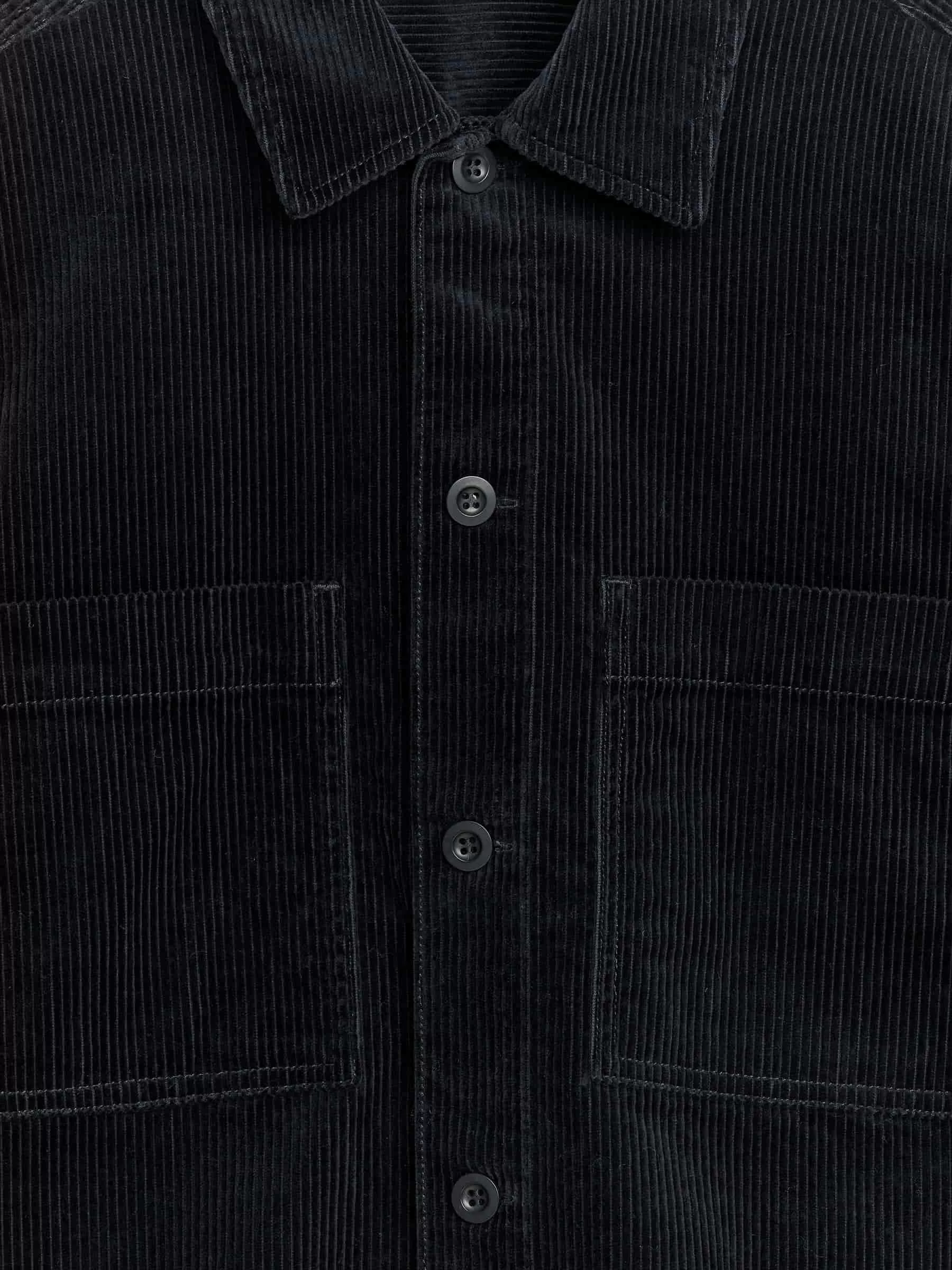Overshirt crafted from corduroy. A straight-cut style with front buttoning and two patch pockets at chest. Yoke at the back. Buttoned cuffs.