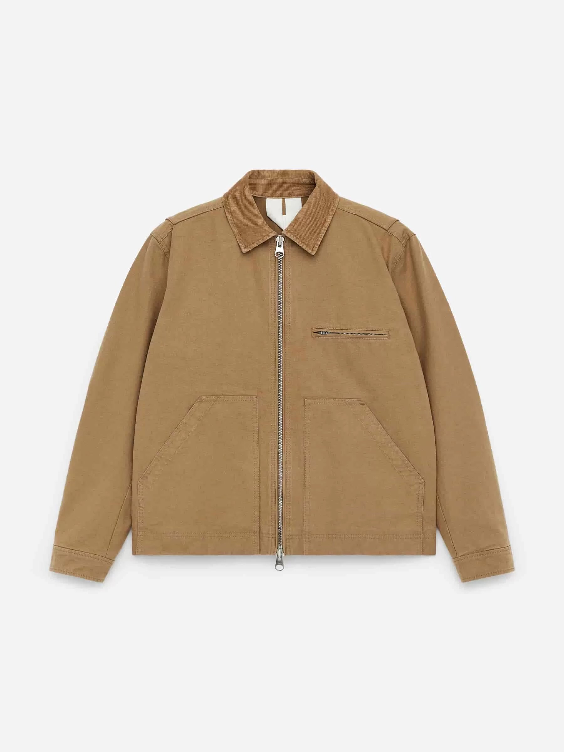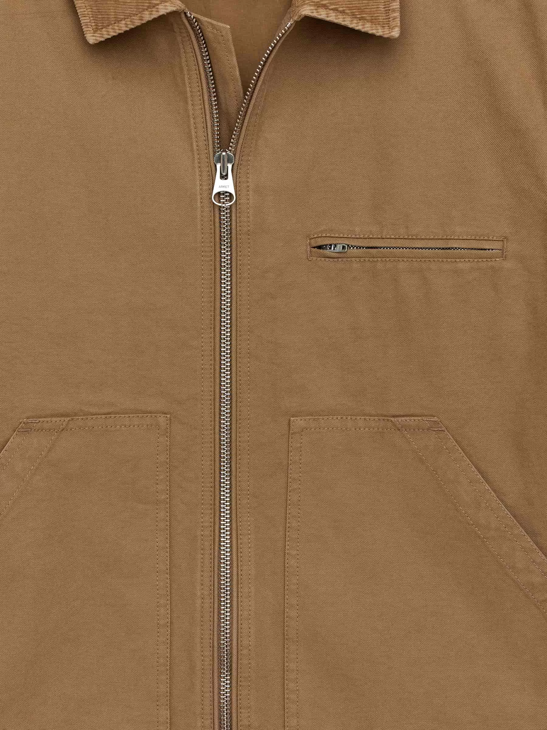 Workwear-inspired jacket sewn from cotton canvas with a collar made of corduroy. Styled with zip closure and buttoned cuffs. Detailed with a single jet pocket with zip at chest, slanted pockets at front and an inside pocket. Regular fit.