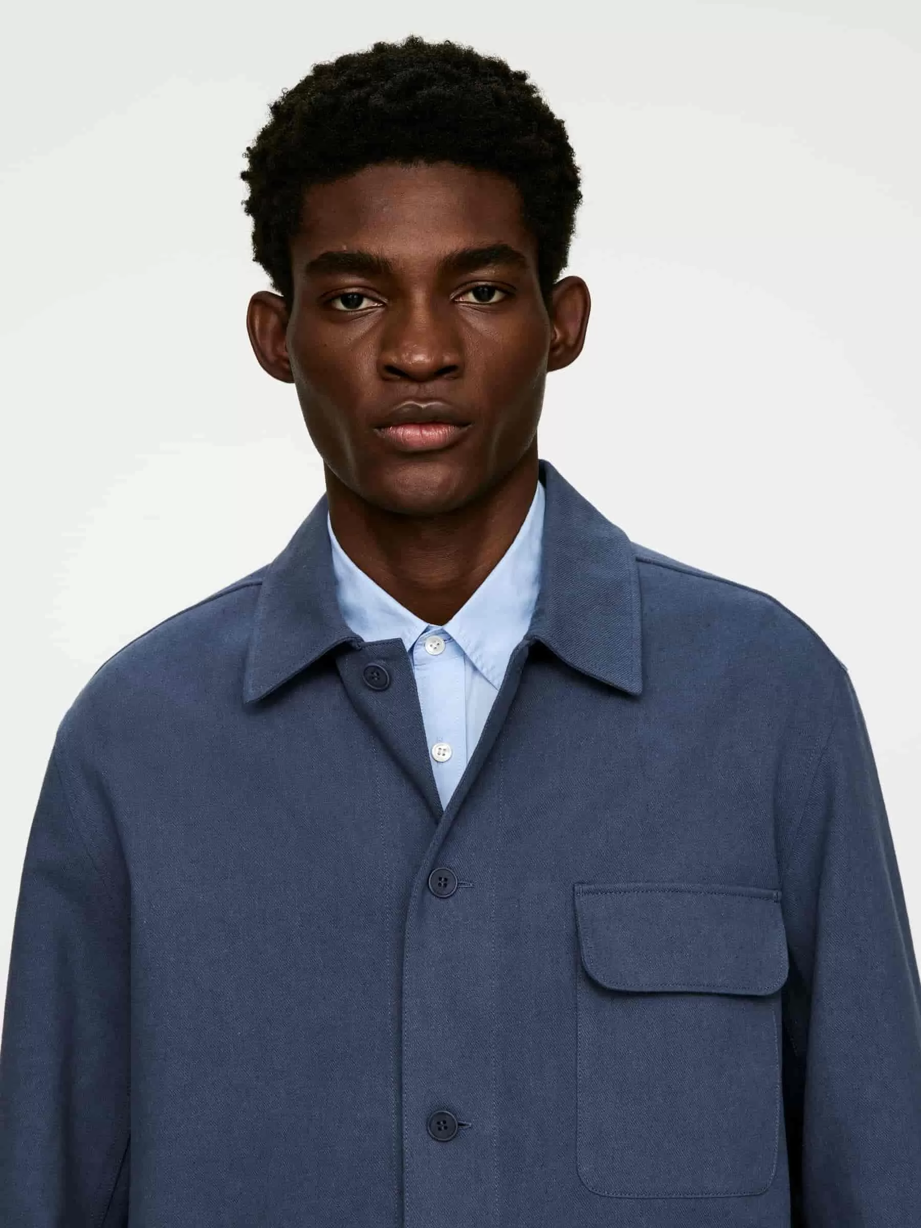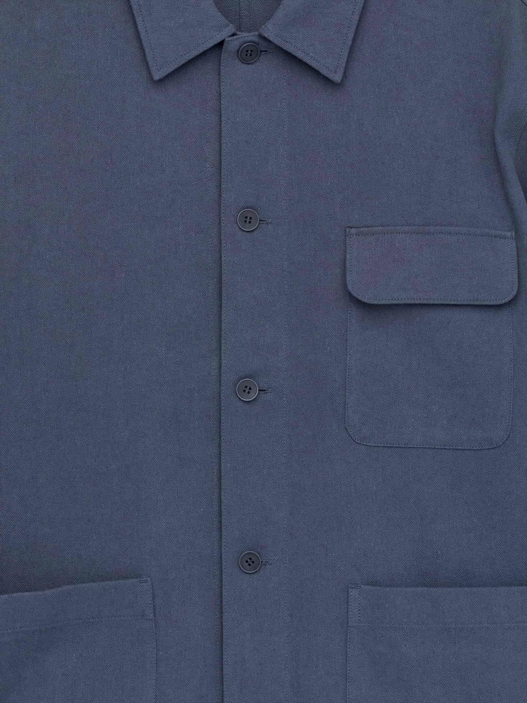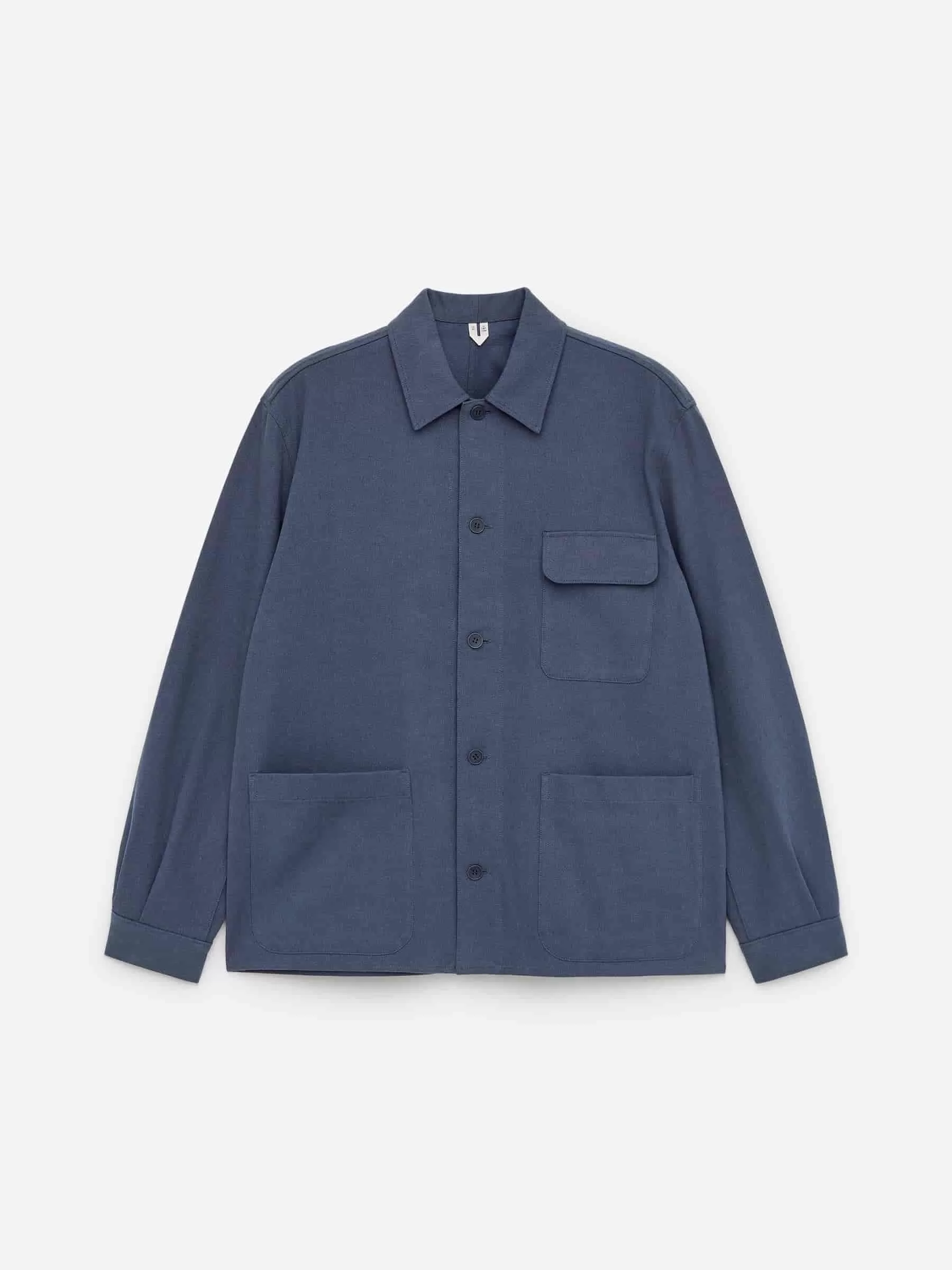Overshirt crafted from a cotton linen blend. Cut for a relaxed fit and styled with a cut-and-sewn collar and a front placket with buttons. Two patch pockets at front and a single chest pocket with flap. Buttoned cuffs. Unlined.