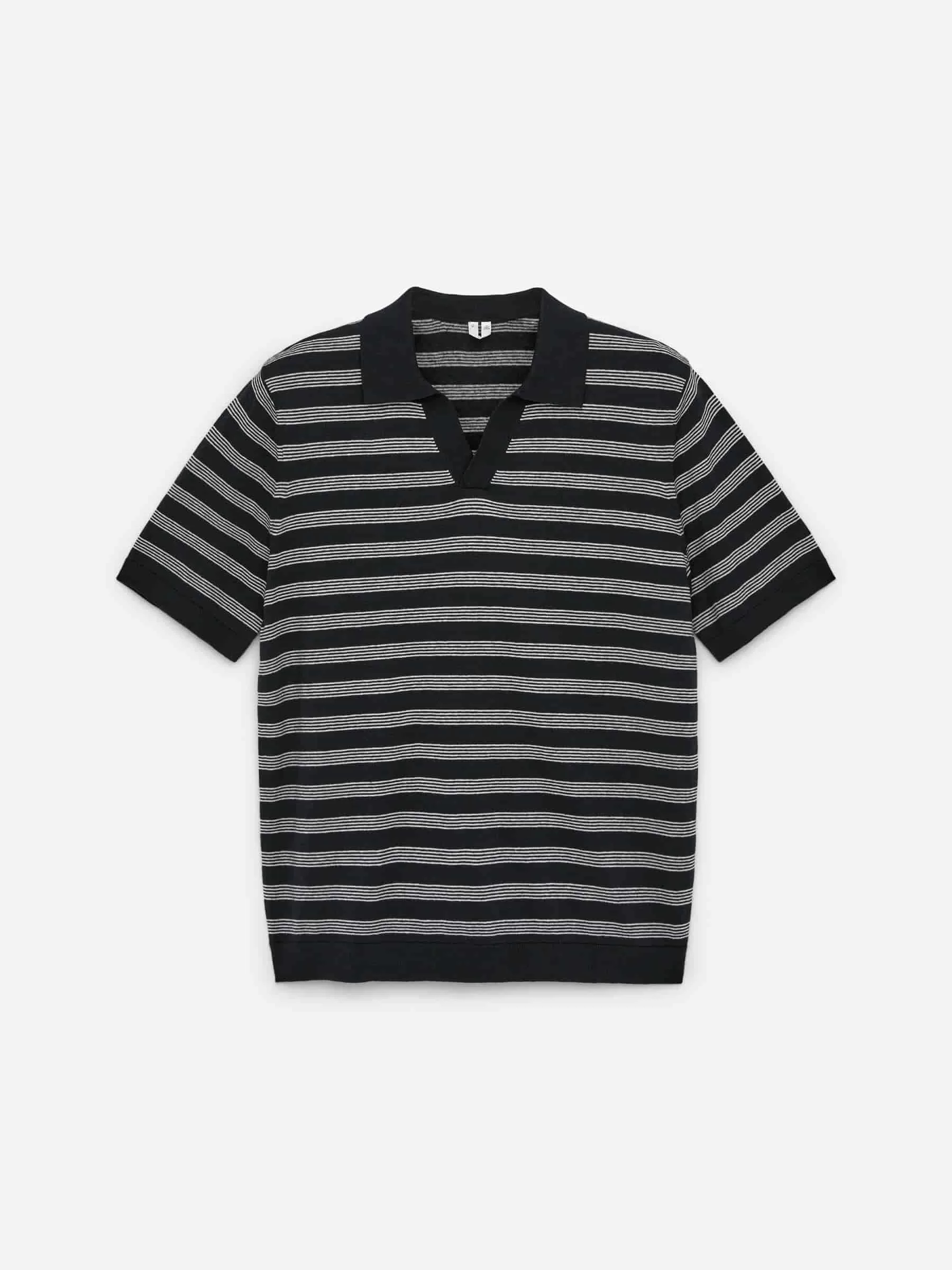 The blend of linen and cotton gives a soft, cooling comfort to this fine-knit polo shirt. A casual, short-sleeve style detailed with a rib-knitted collar and a V-neck. Regular fit.