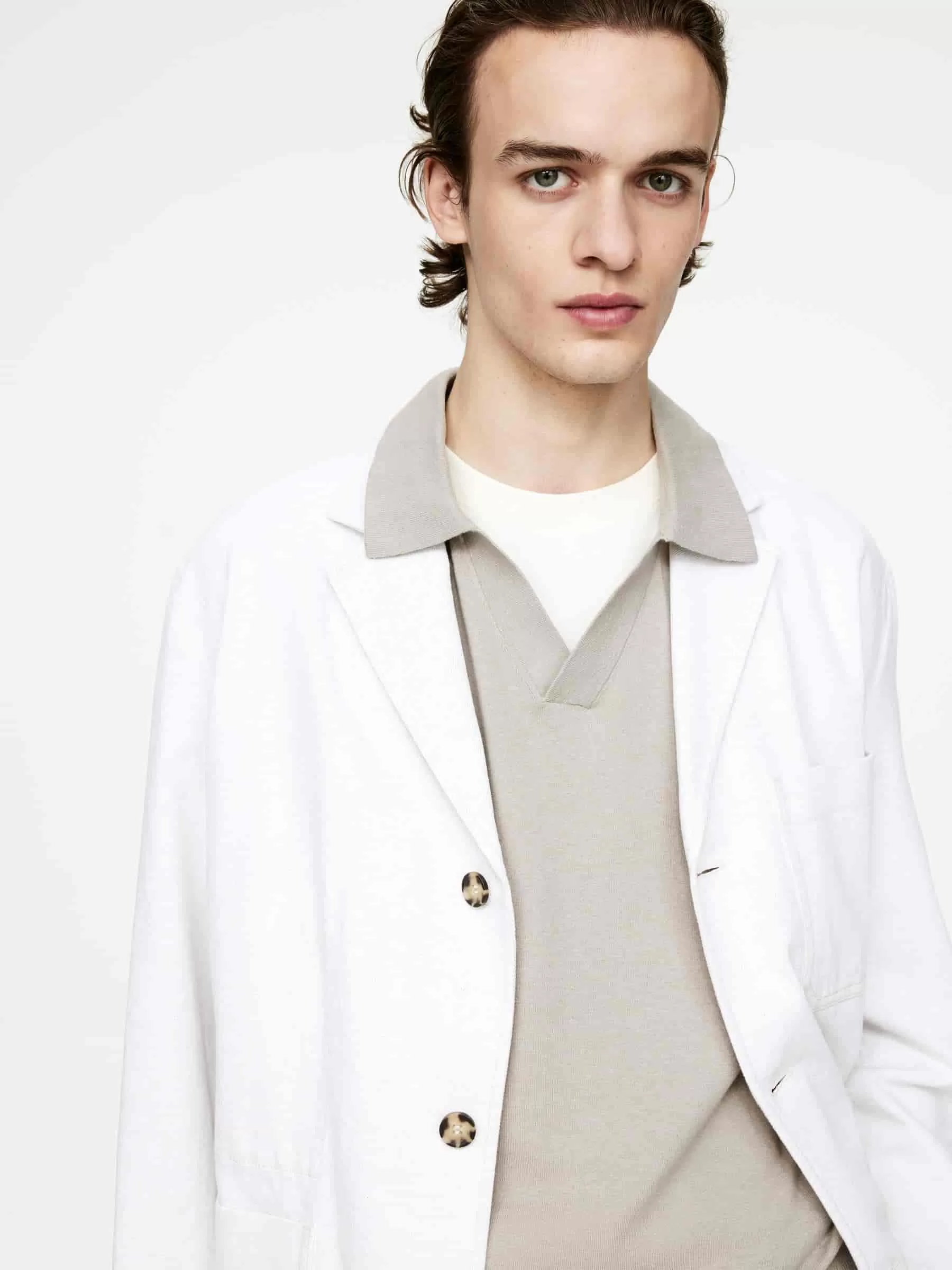 The blend of linen and cotton gives a soft, cooling comfort to this fine-knit polo shirt. A casual, short-sleeve style detailed with a rib-knitted collar and a V-neck. Regular fit.