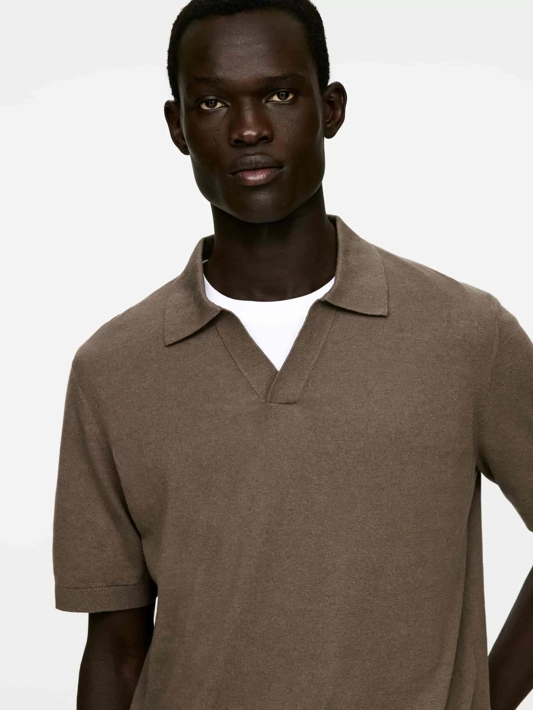 The blend of linen and cotton gives a soft, cooling comfort to this fine-knit polo shirt. A casual, short-sleeve style detailed with a rib-knitted collar and a V-neck. Regular fit.