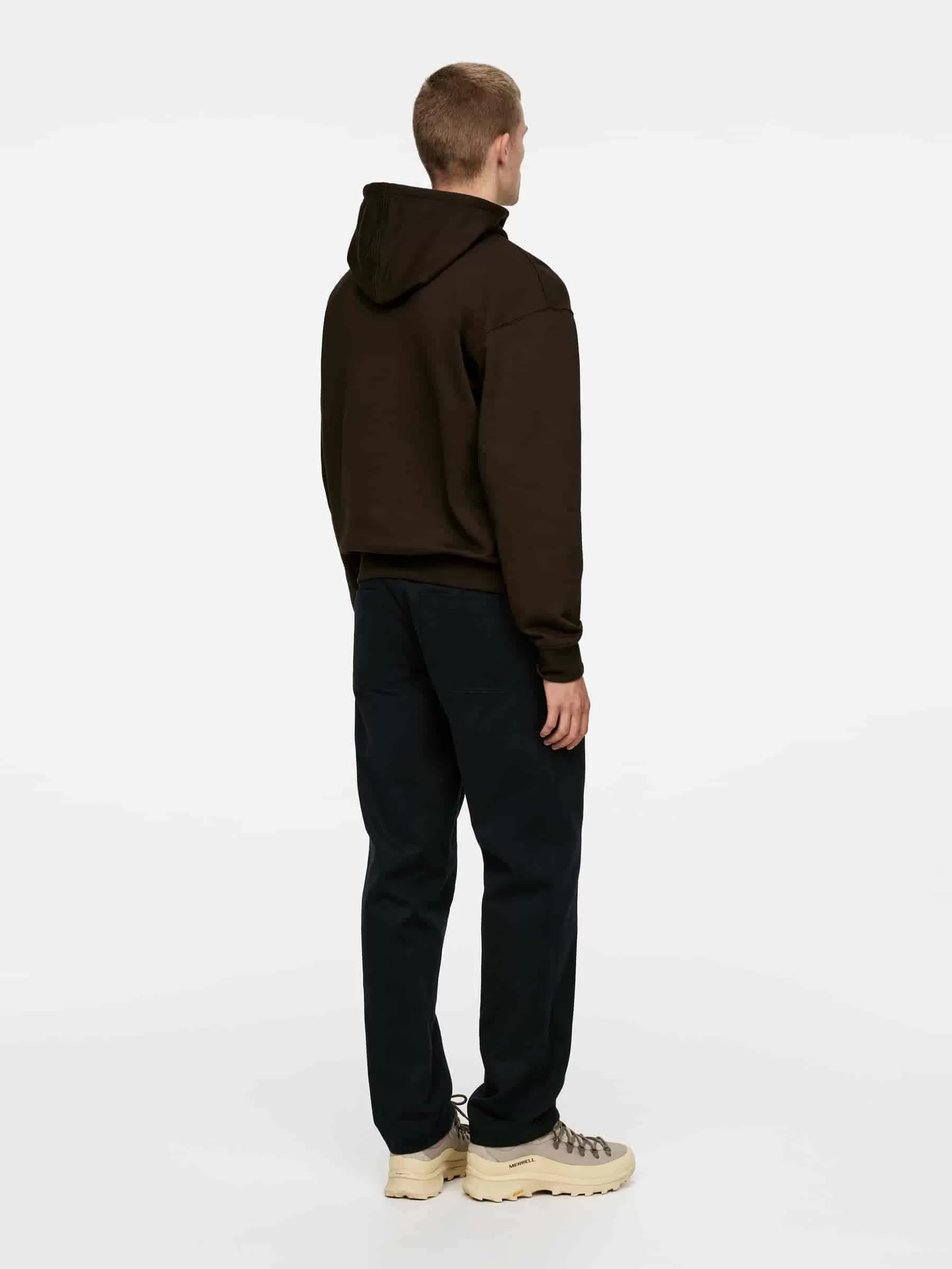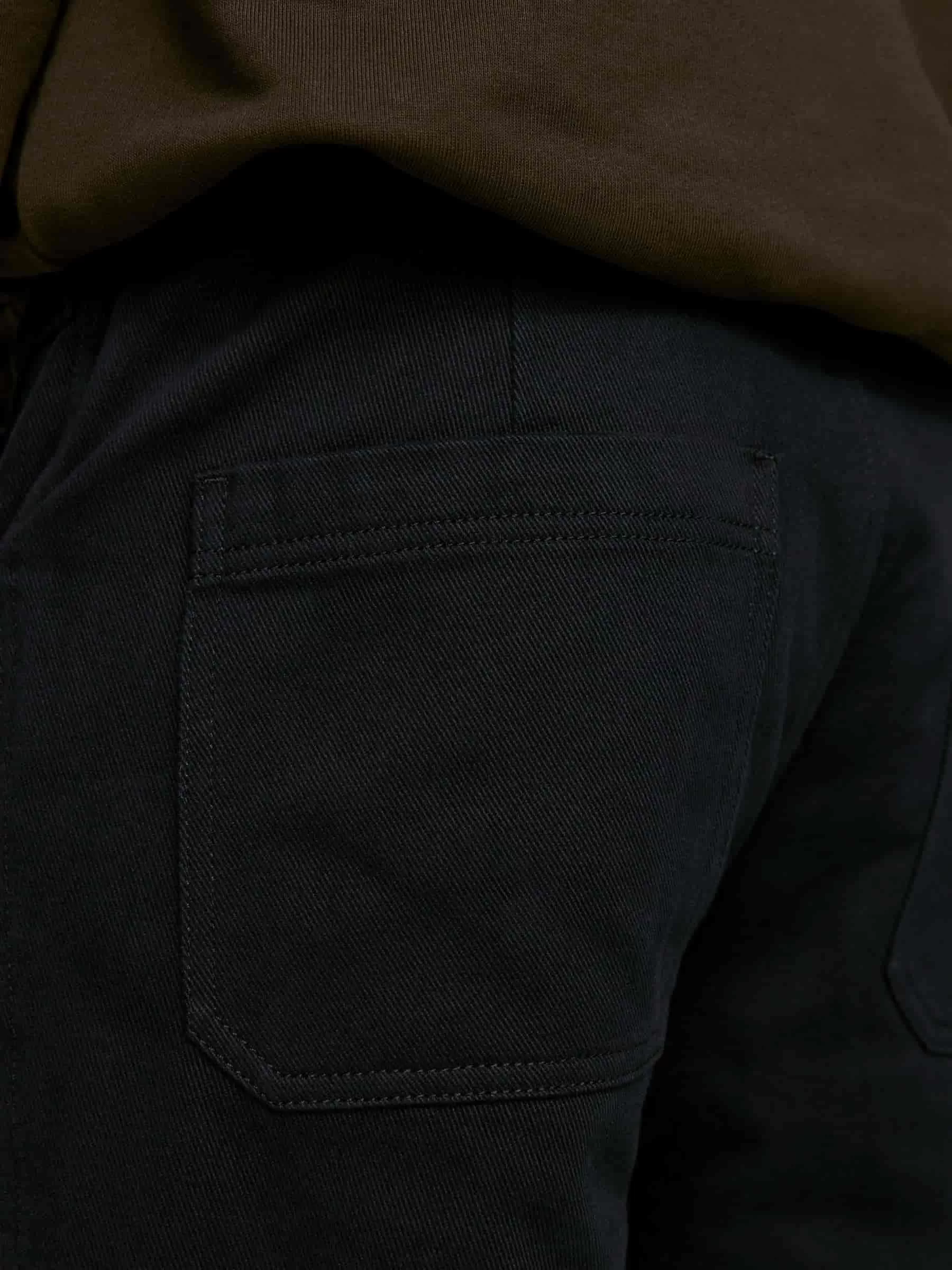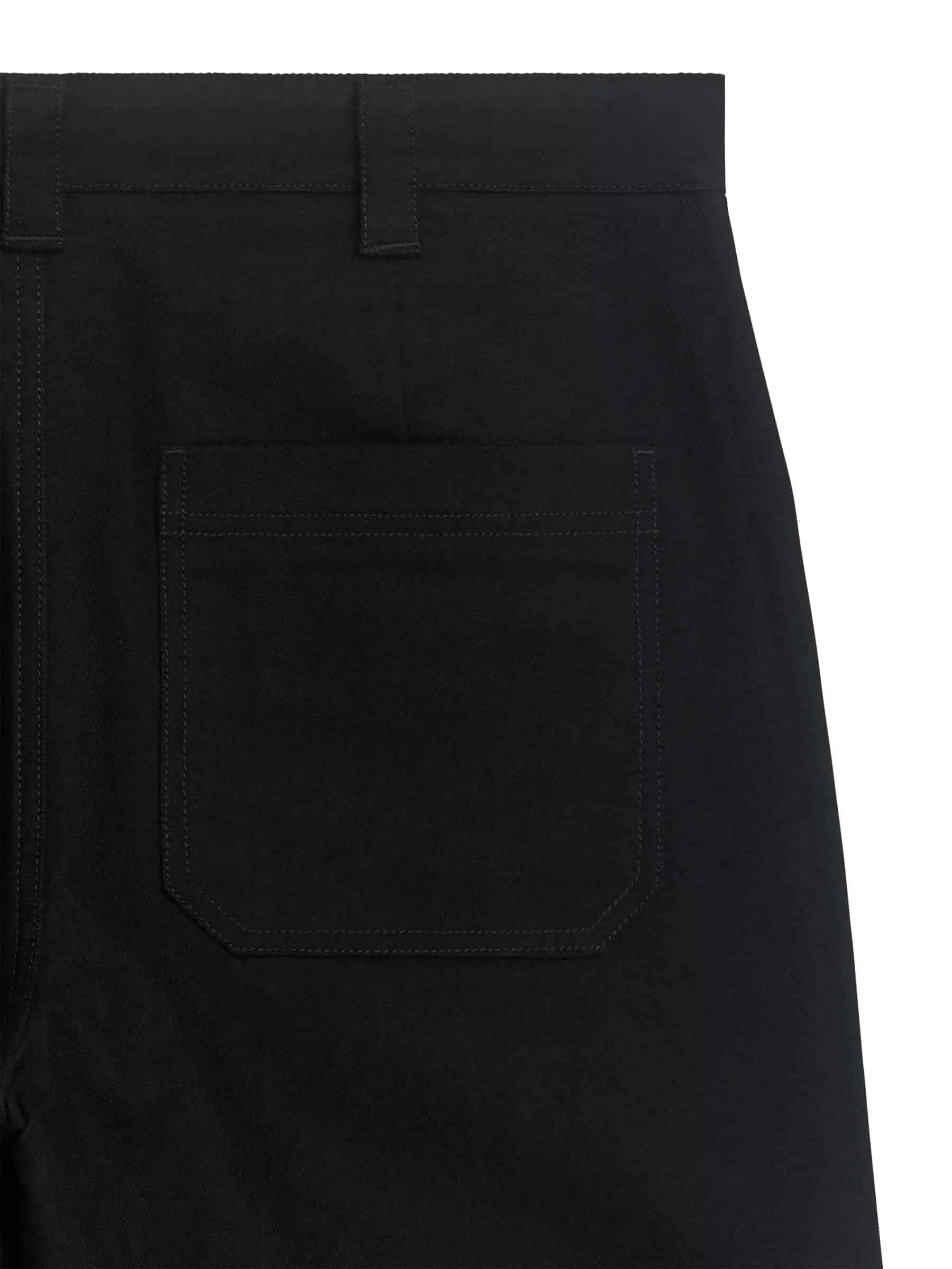 Cotton moleskin twill trousers with slanted front pockets and patch pockets at the back. Button closure and zip fly.