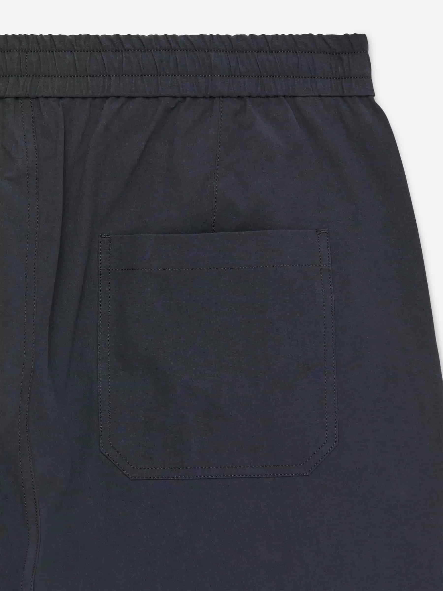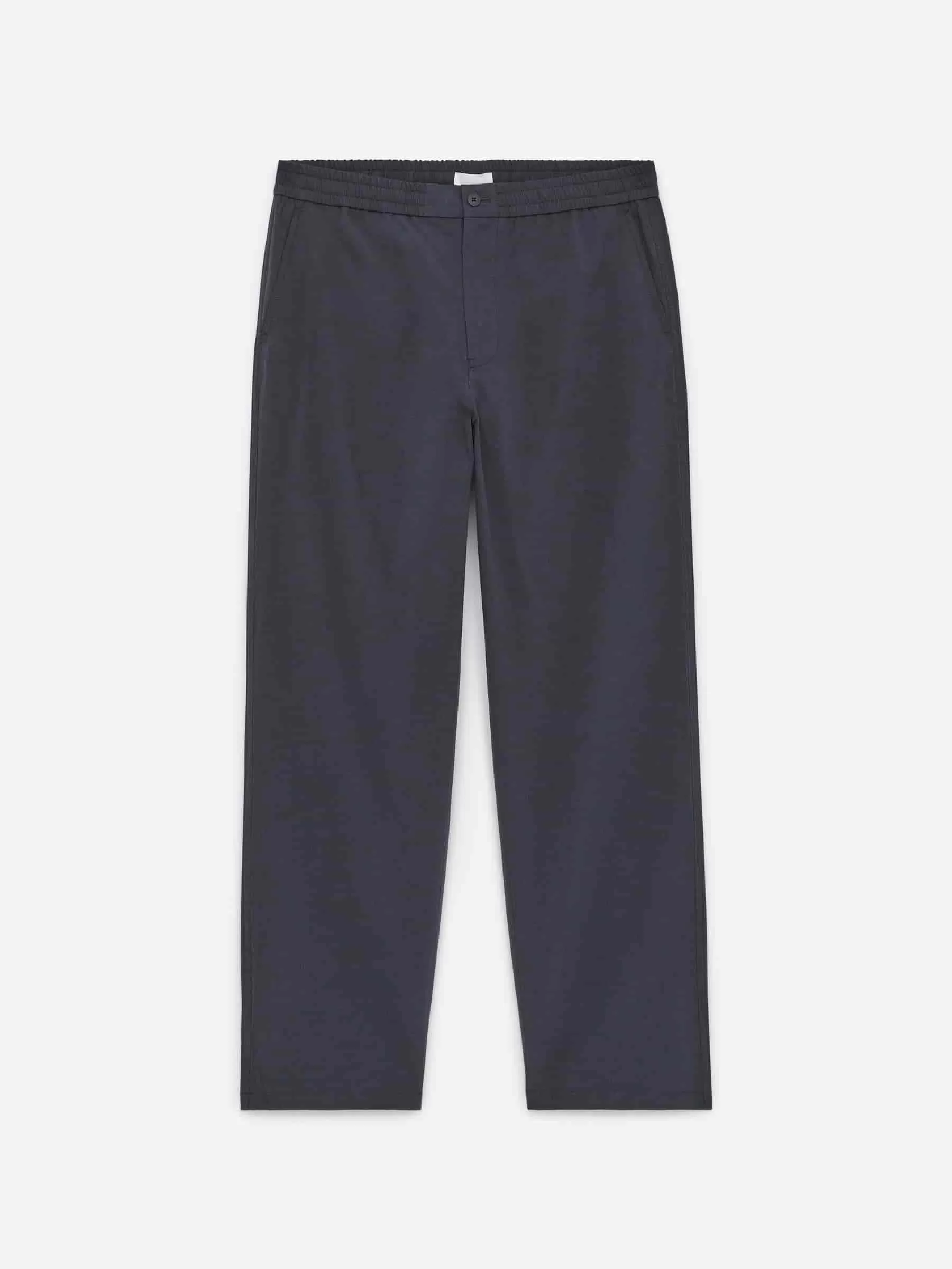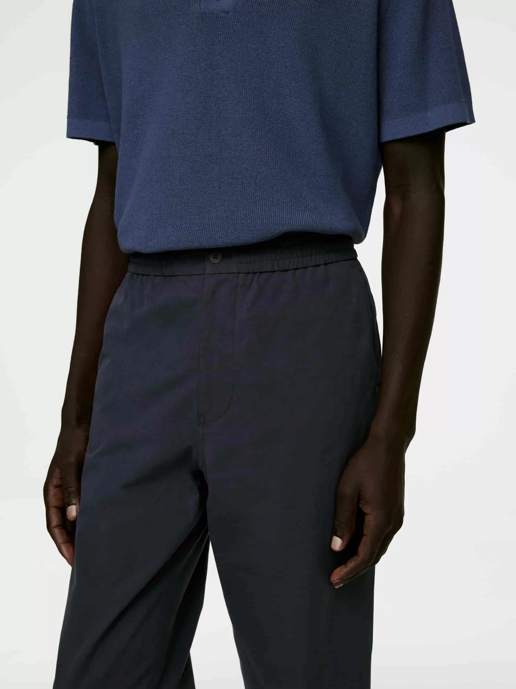 Cotton trousers featuring an inner drawstring and elastics at waist. Button closure and zip fly. Cut for a regular fit with straight legs. Slanted front pockets and patch pockets at the back.