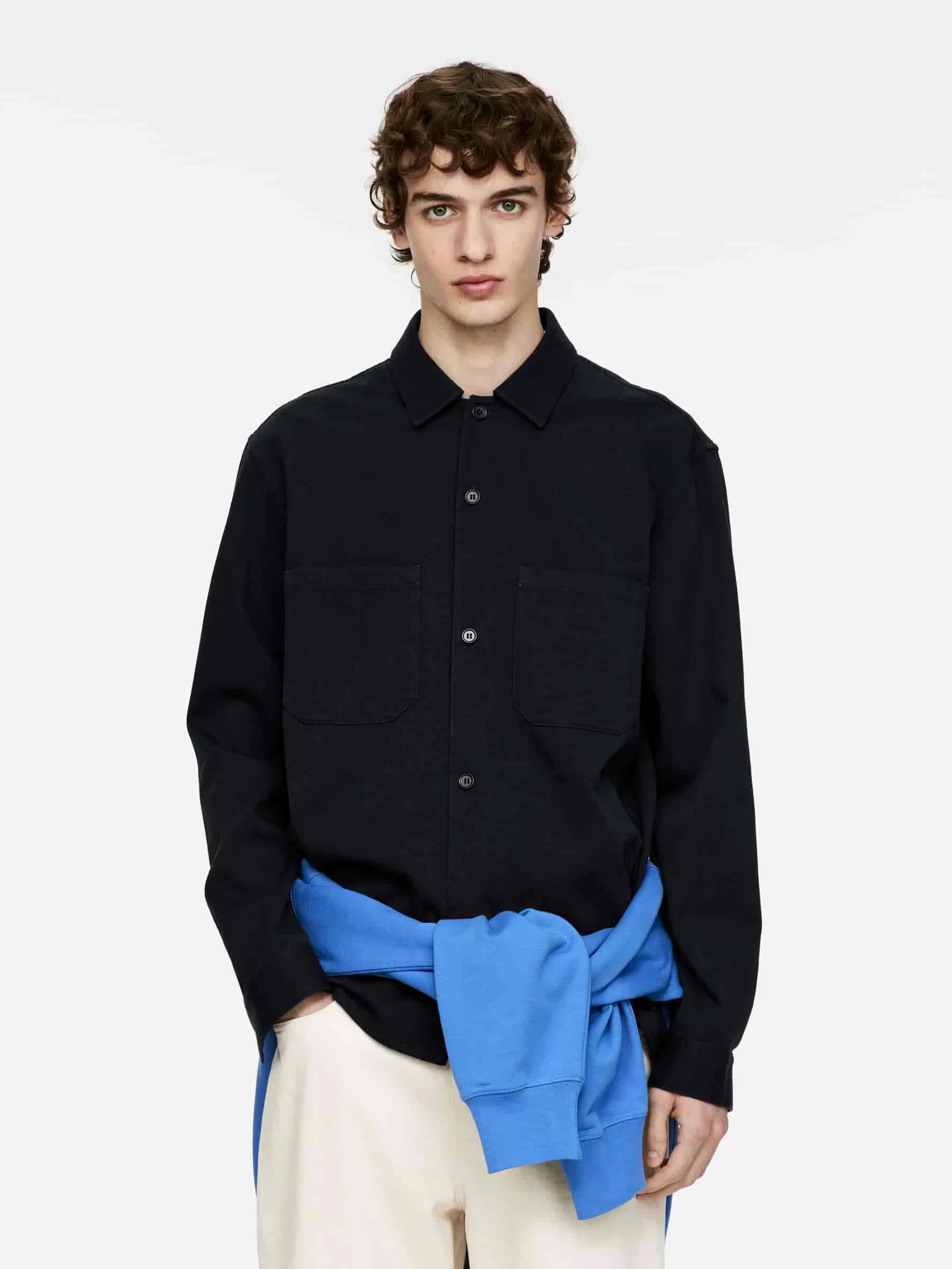 Overshirt crafted from a smooth cotton twill weave. A regular-fit style detailed with chest pockets, pressed collar and buttoned placket and cuffs.