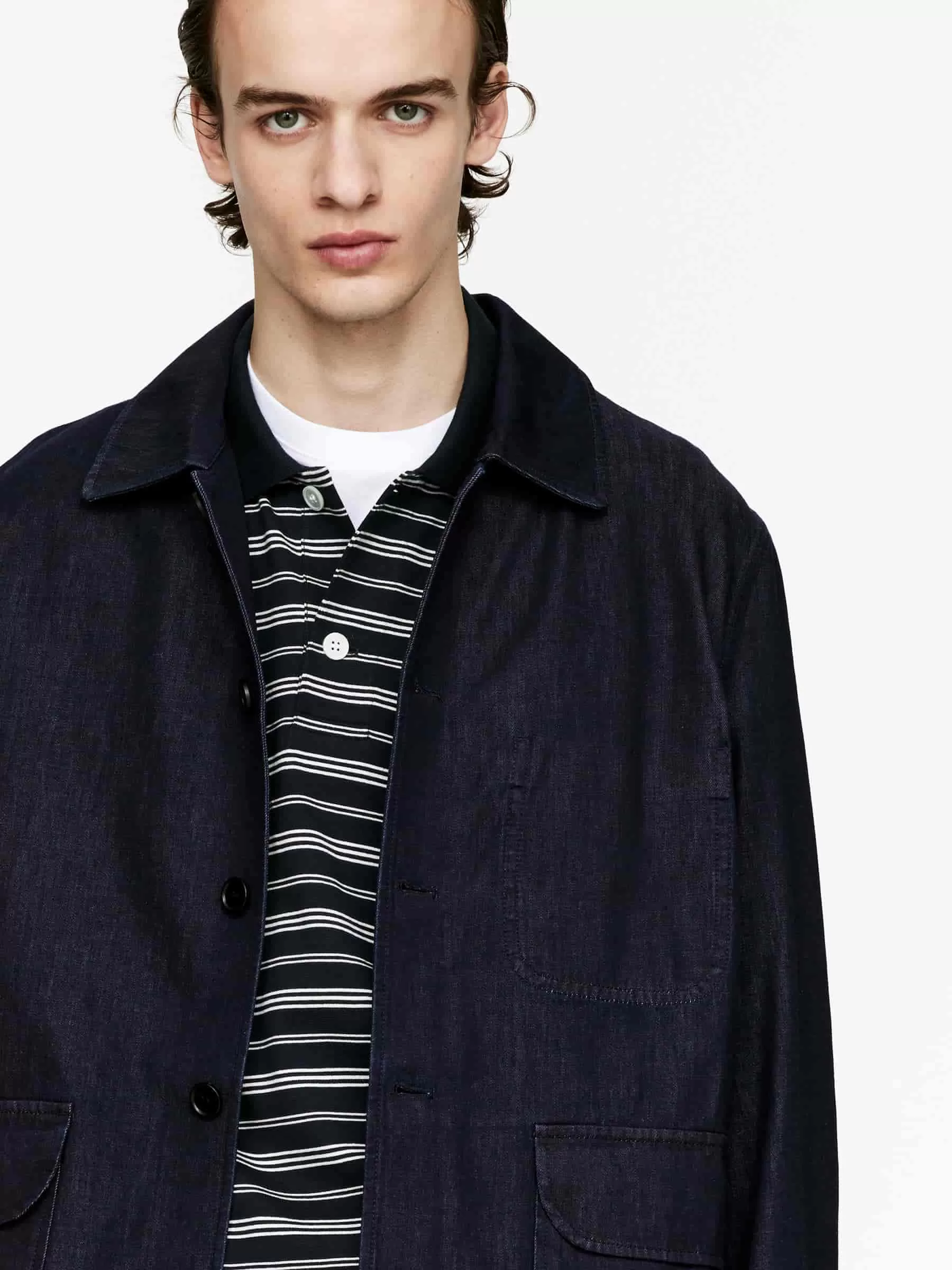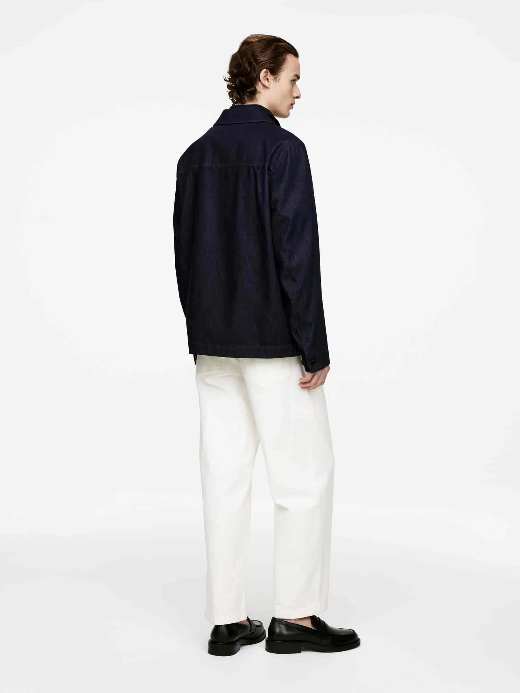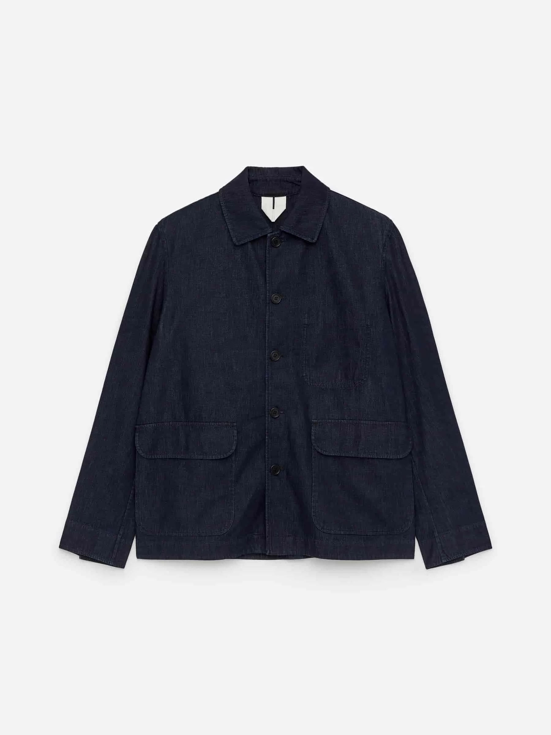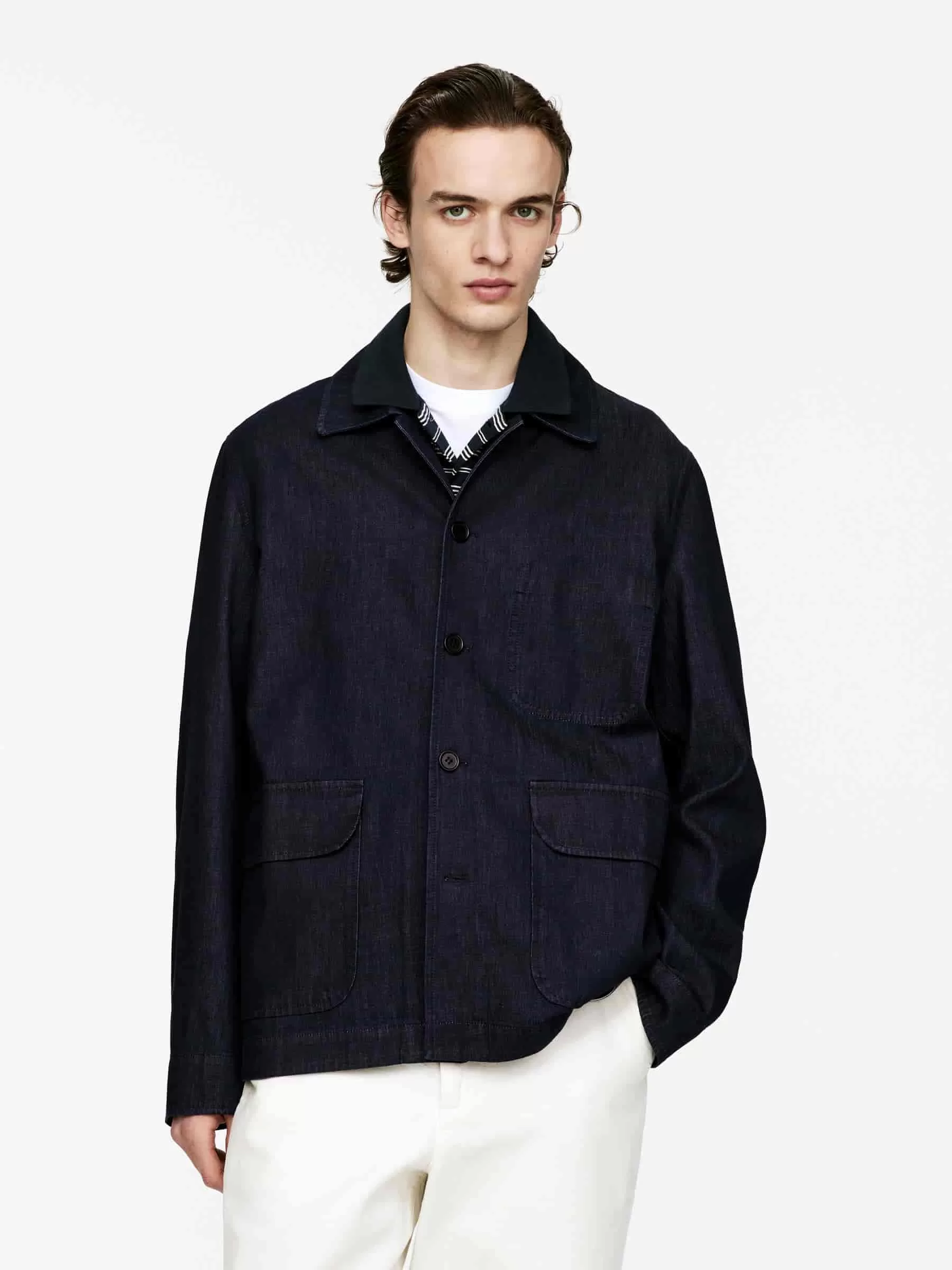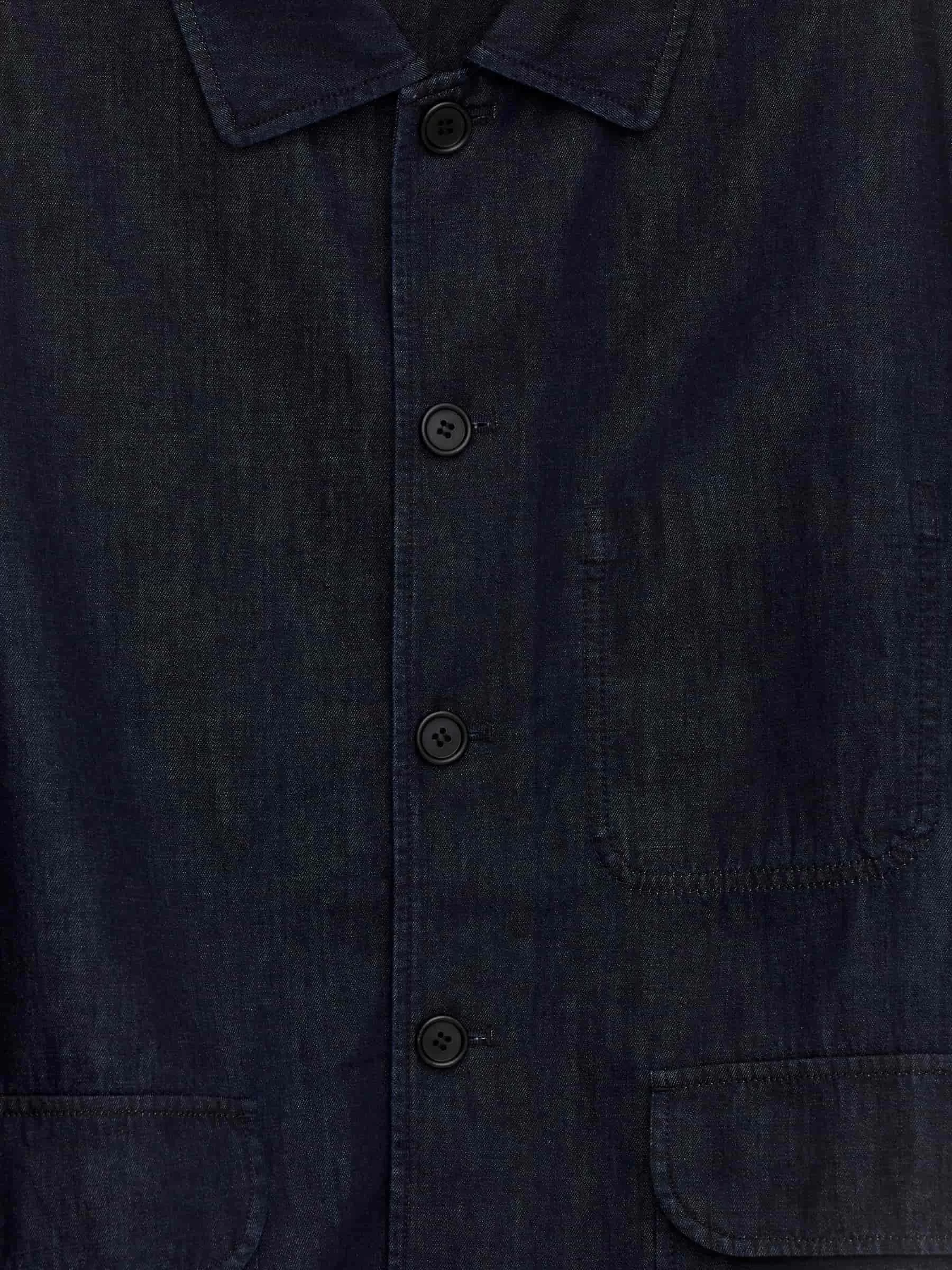 Denim jacket cut for a relaxed fit. Styled with a regular collar, front buttoning. Two patch pockets with flaps and a single chest pocket. Adjustable cuffs with buttoning. Inner pocket.