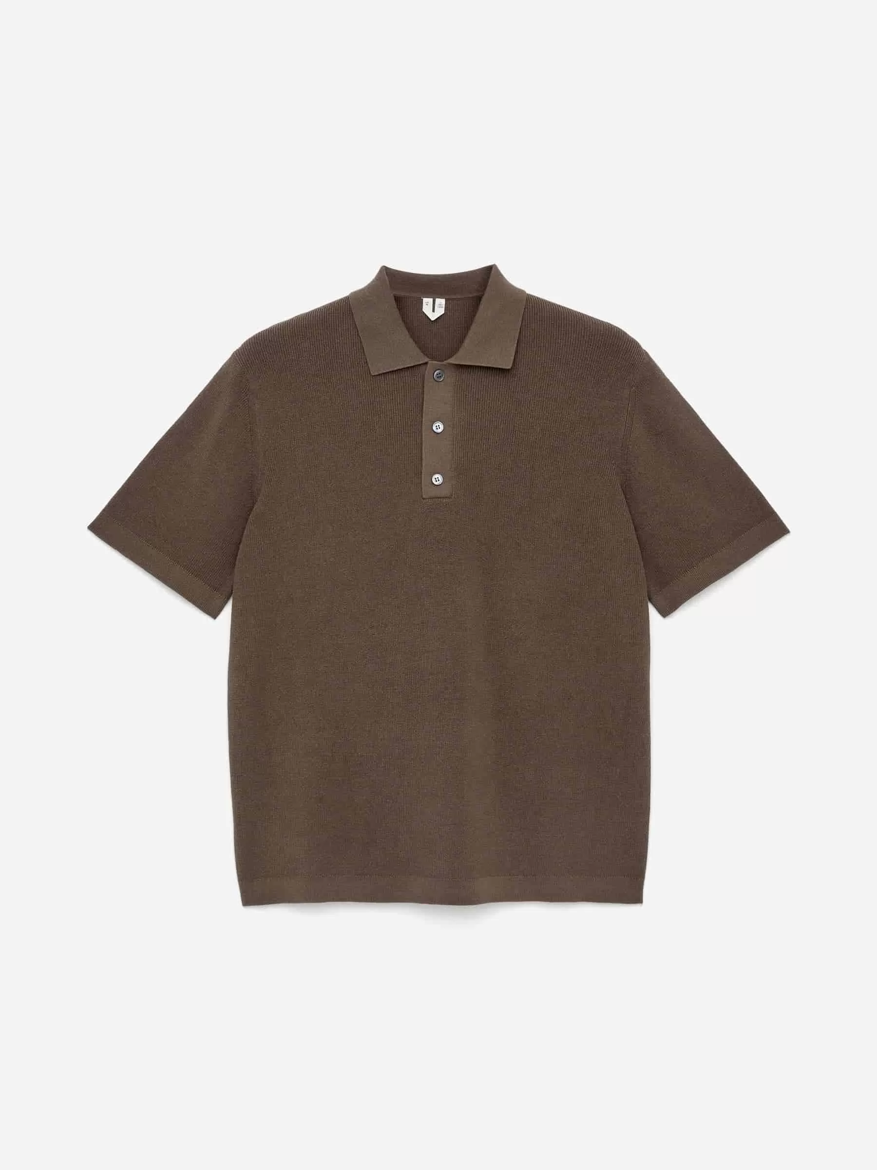 Fine-knit polo shirt made from a cotton blend. A short-sleeve style designed for a relaxed it. Styled with a collar knitted in a full-Milano rib, a half placket with buttoning, and rib-knitted details.