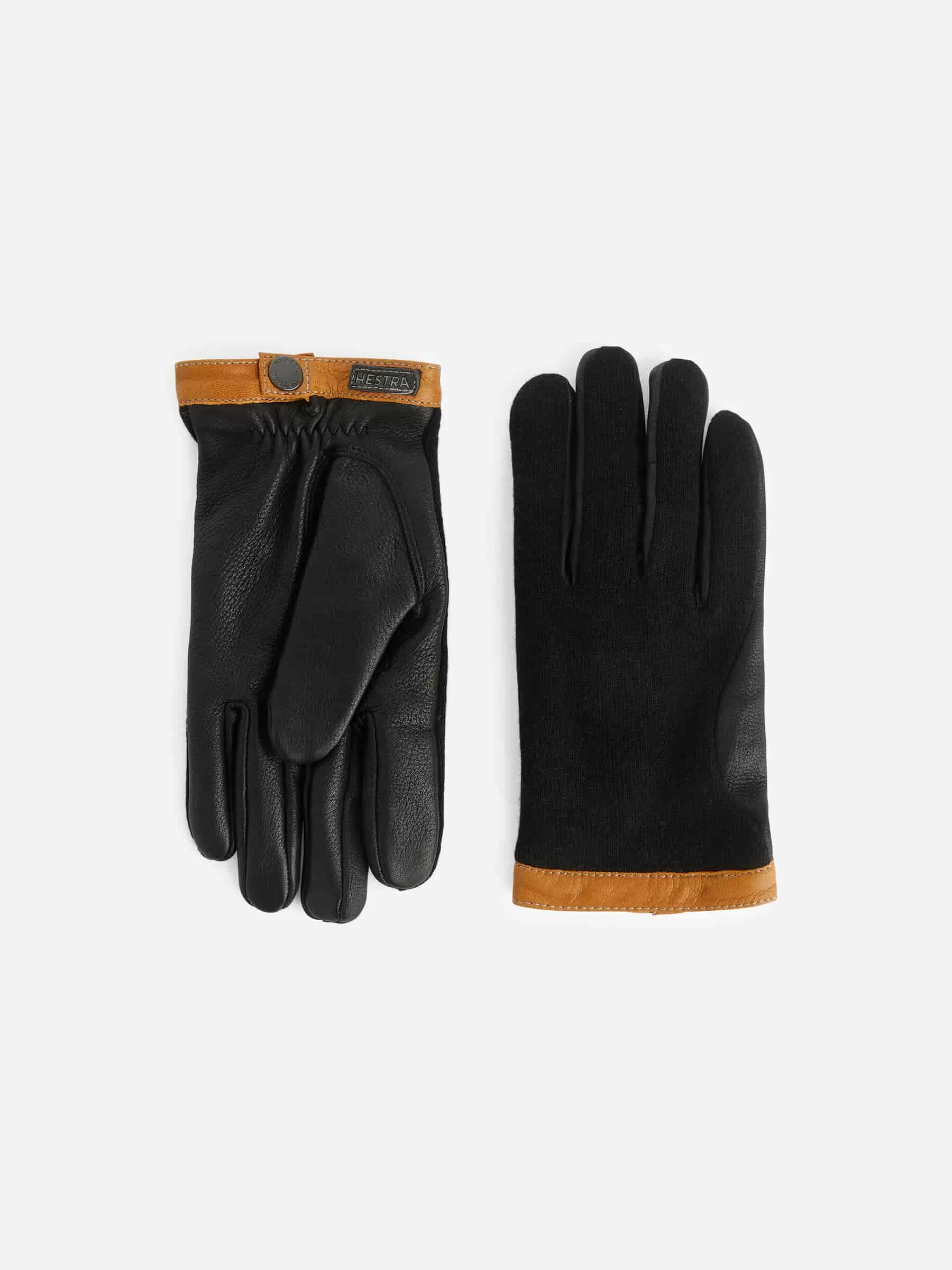 ARKE Men Hestra Deerskin Wool Tricot Gloves Black