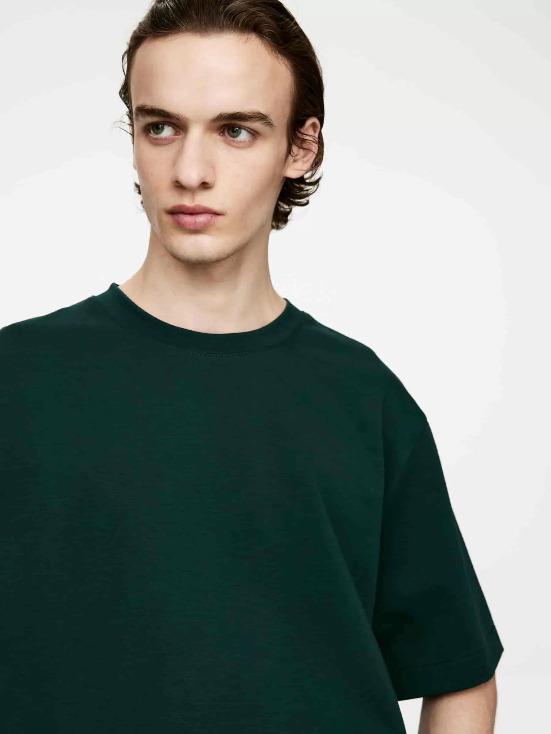 Crafted from a heavyweight interlock jersey fabric, this cotton T-shirt offers a slight comfort stretch. A crew-neck style with a regular fit.
