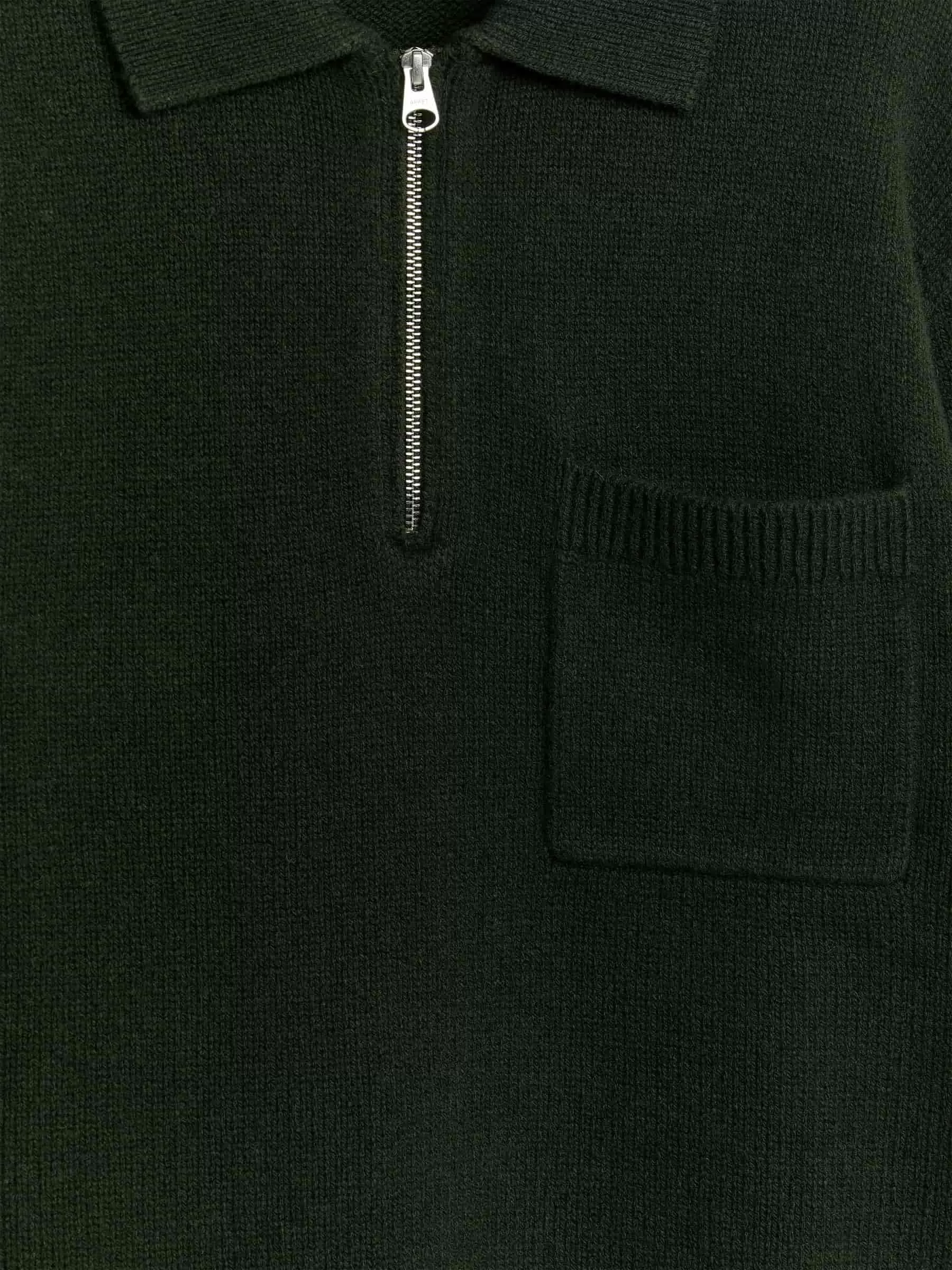 ARKE Men Knitted Wool Zip Polo Shirt Dark Green