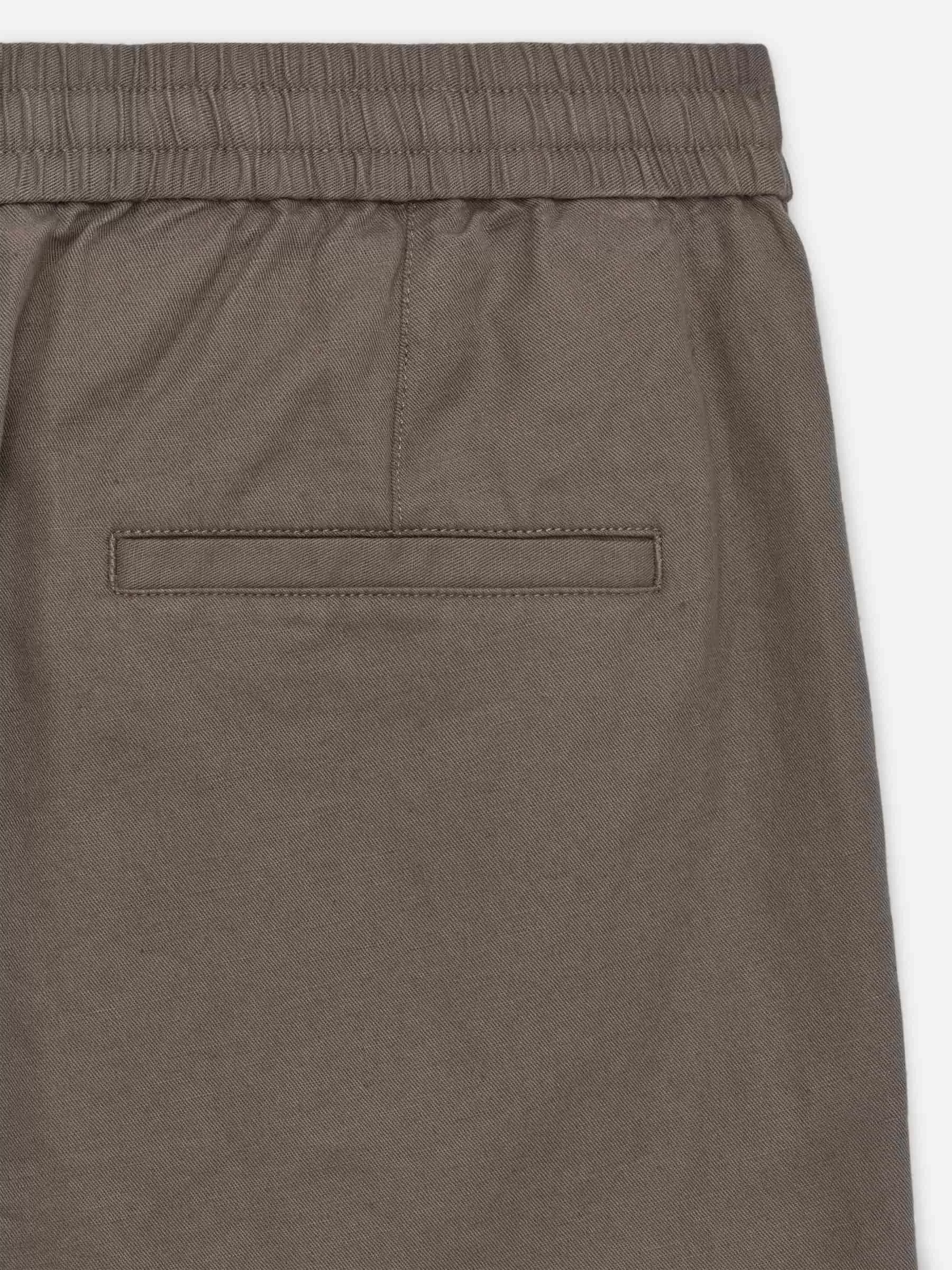 Trousers sewn from a linen blend. Detailed with an elasticated waistband with a drawstring on the inside, button closure and a zip fly. Slanted pockets at front and welt pockets at the back. Regular fit.