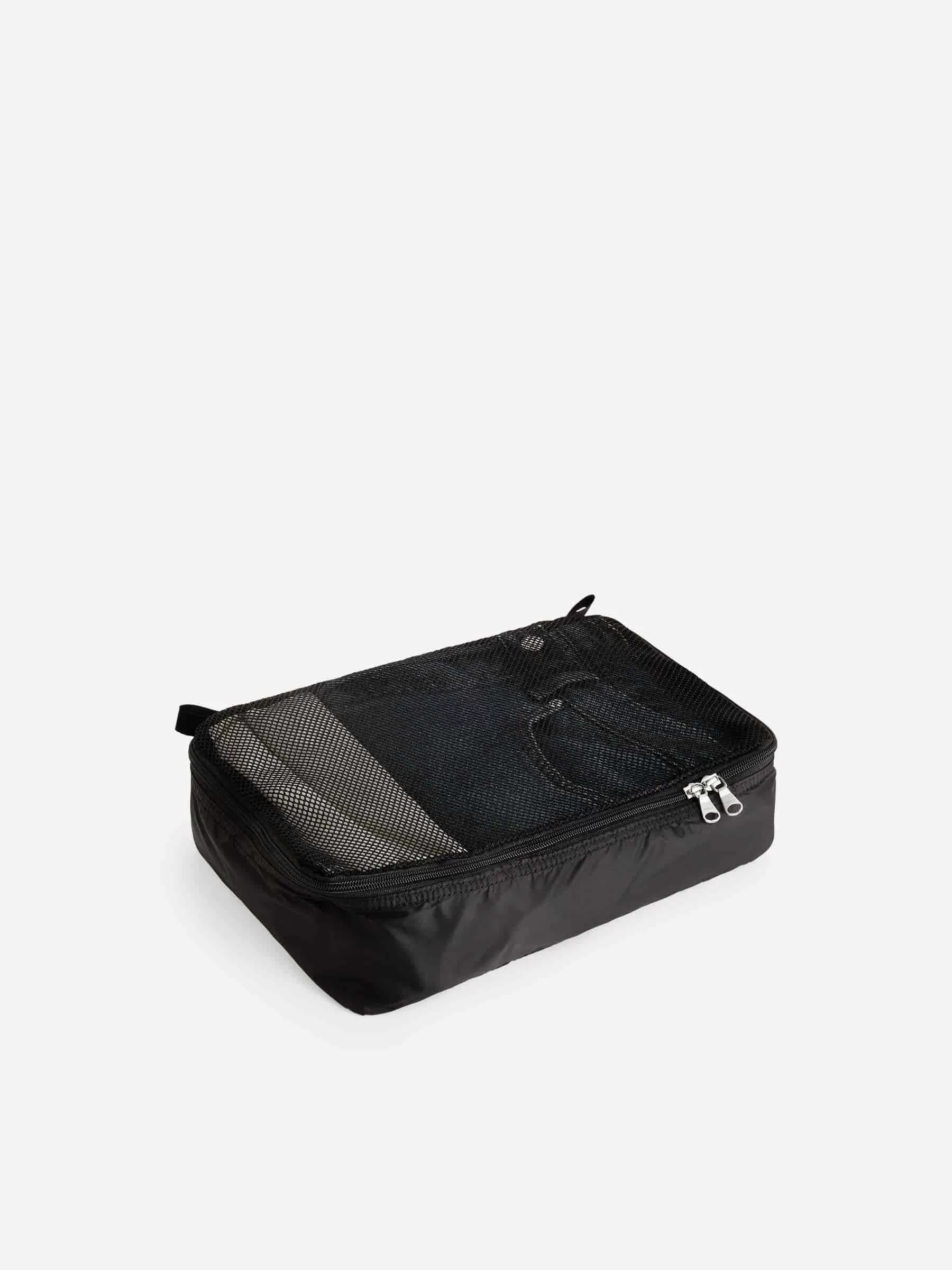 Crafted from lightweight water-repellent shell with a top of durable mesh, this packing cube is made from recycled polyester. A lightweight, practical item designed to store and protect clothes when travelling. Available in different sizes to help the whole family stay organised.