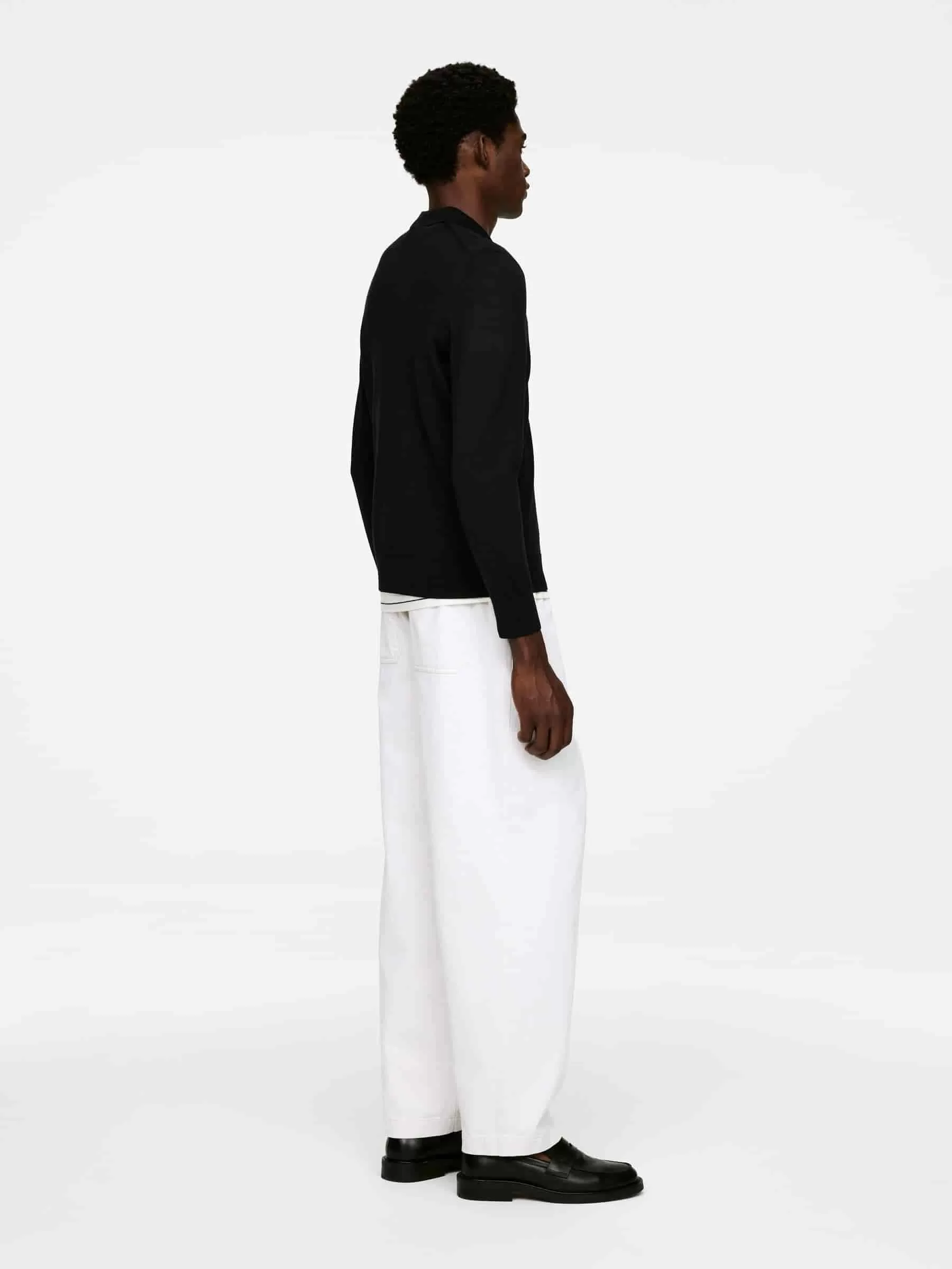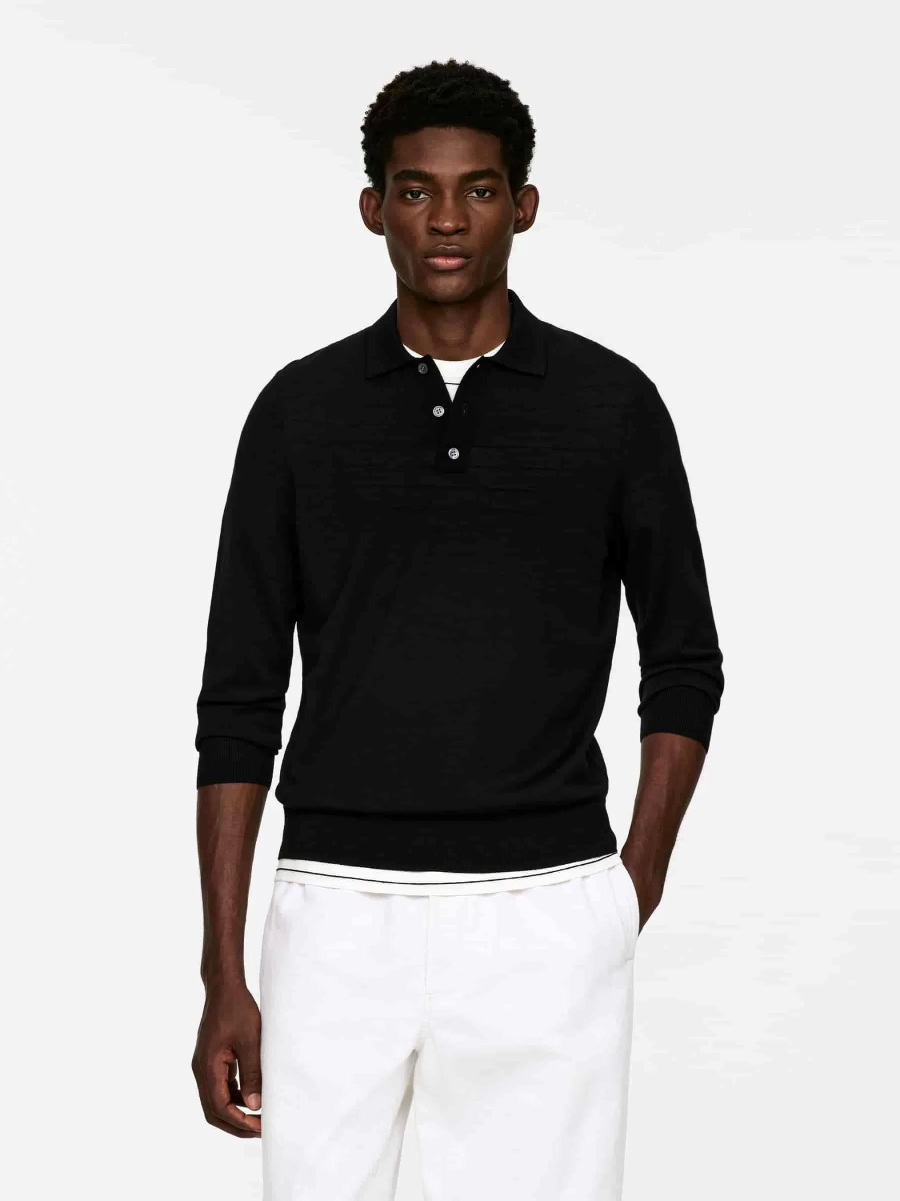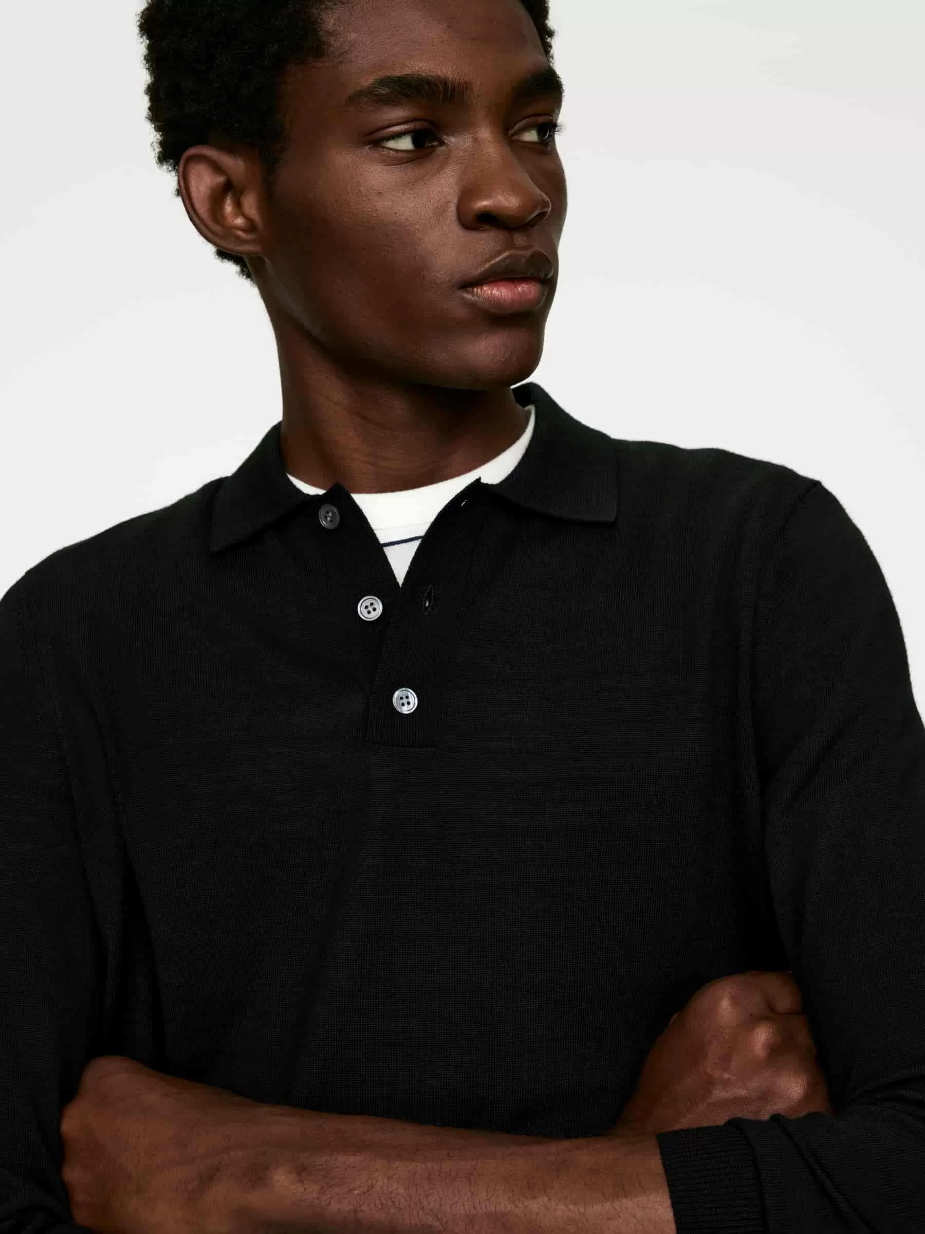Fine-knit polo jumper crafted from merino wool. This style has a soft feel to the touch and a slightly lustrous surface. The jumper is detailed with collar and a buttoned half placket. The hemline and cuffs are rib-knitted. This jumper contains 100% RWS wool, certified by control union 1244999. Products certified to the Responsible Wool Standard (RWS) contain wool fiber from farms independently certified to animal welfare and land management requirements.