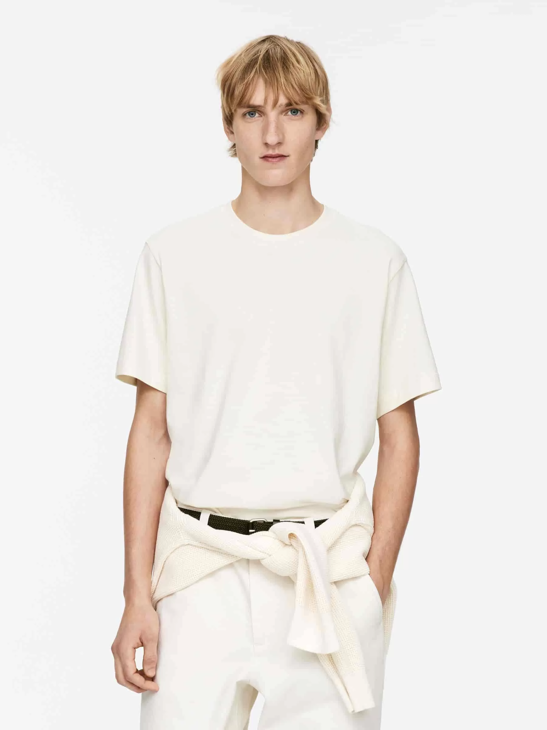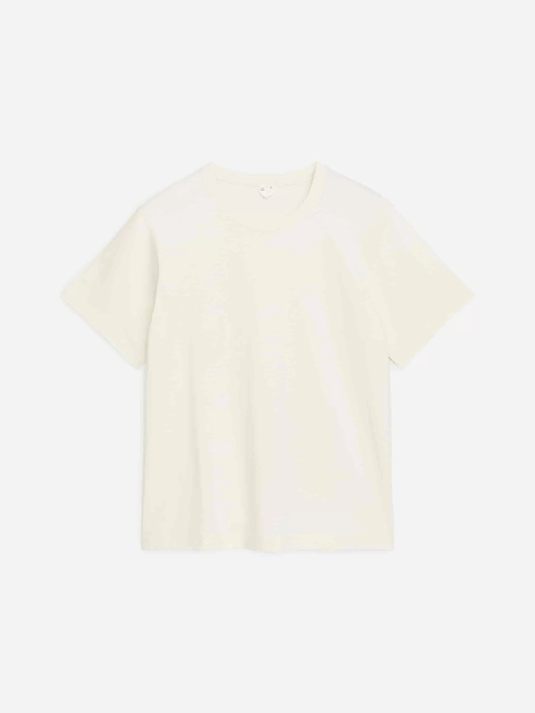 Classic crew-neck T-shirt cut for a regular fit. It is made of 220 GSM single jersey, which indicates that this is the midweight version of ARKET’s standard T-shirts.