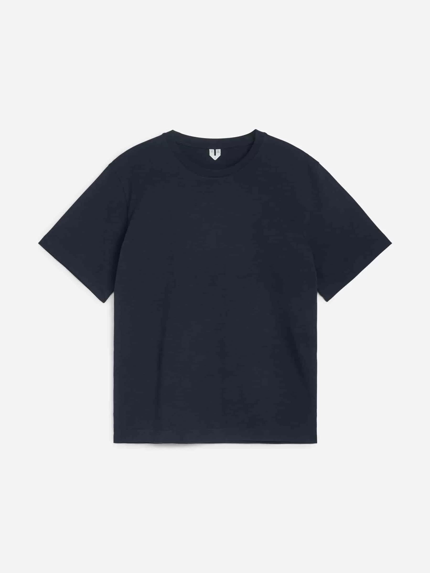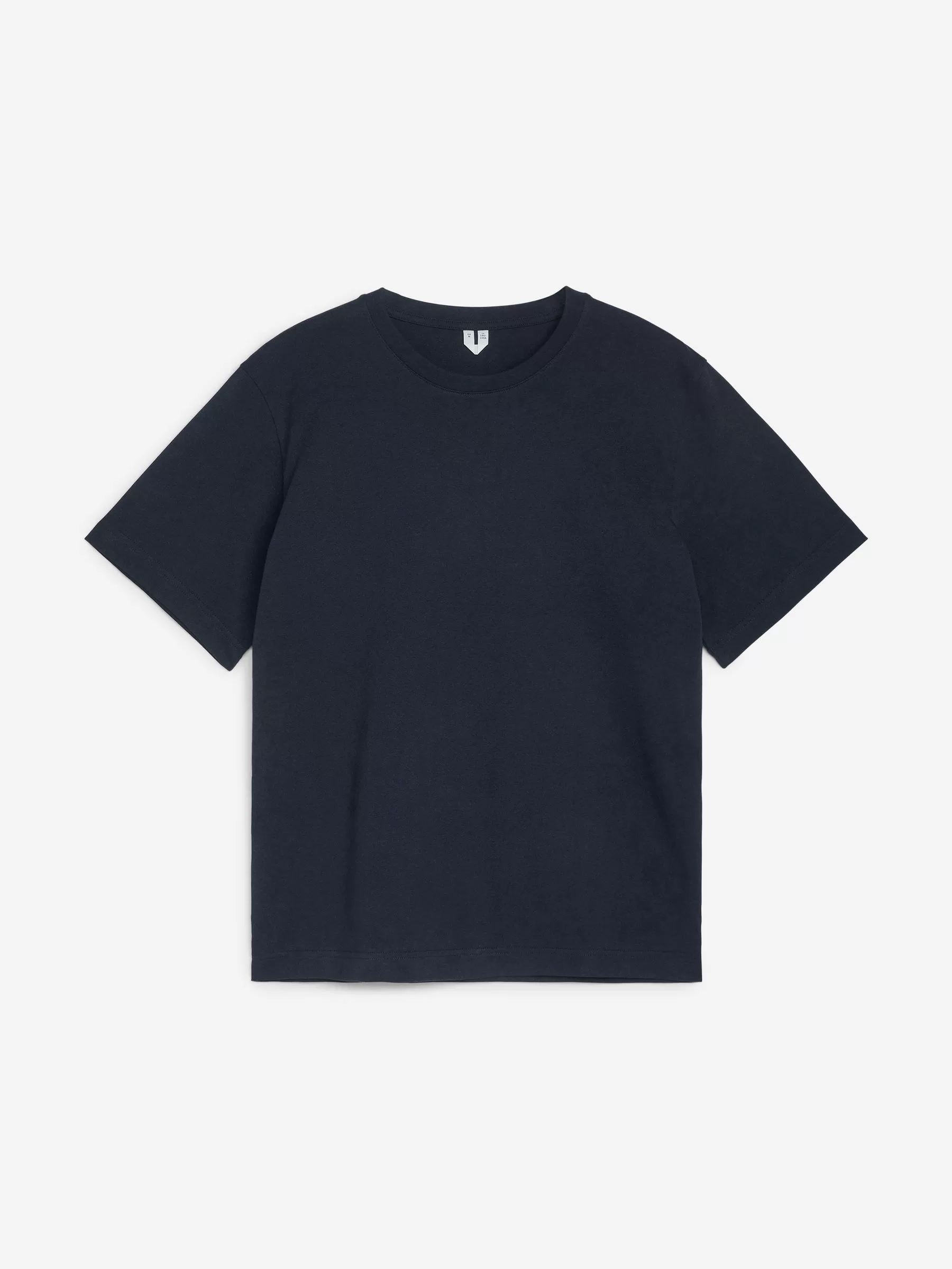 Classic crew-neck T-shirt cut for a regular fit. It is made of 220 GSM single jersey, which indicates that this is the midweight version of ARKET’s standard T-shirts.