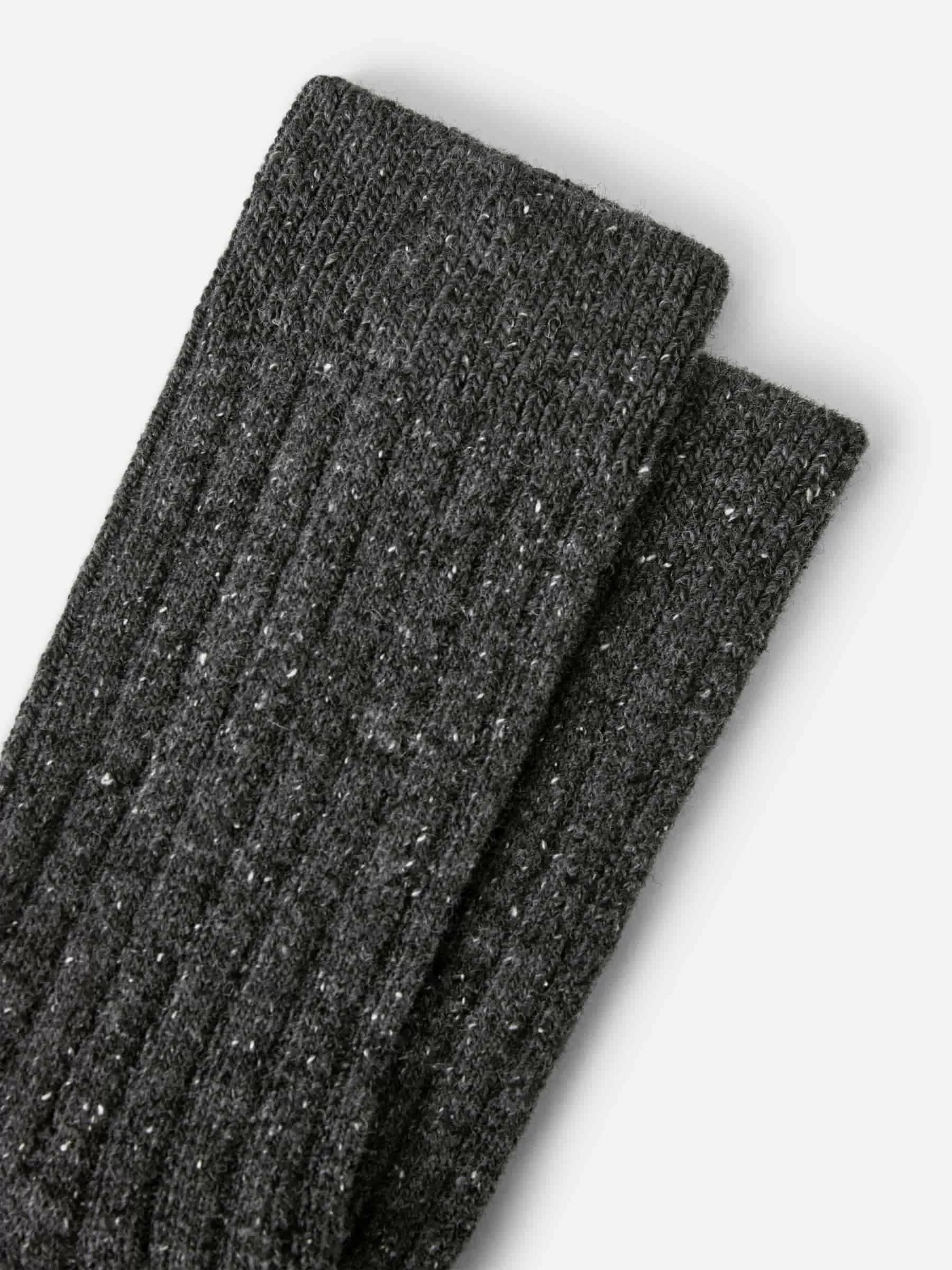 Rib-knitted socks featuring a neps texture. Made from a warming wool blend.