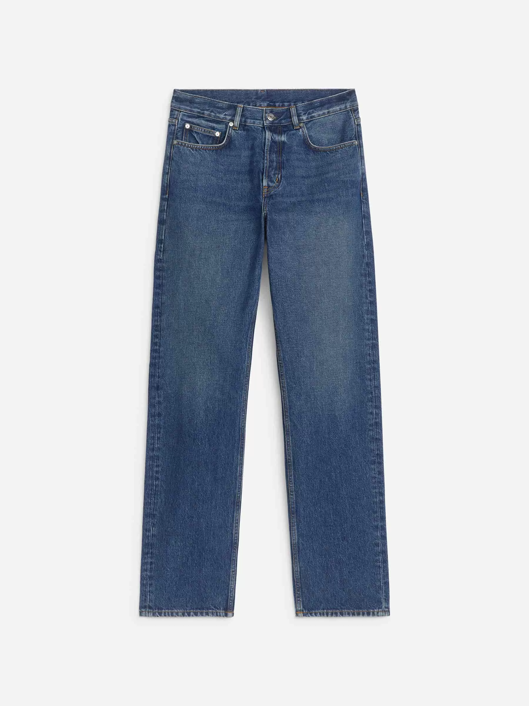 OCEAN is cut for a loose, comfortable fit in non-stretch denim and features a mid-rise waist and straight, full-length legs. Button fly.
