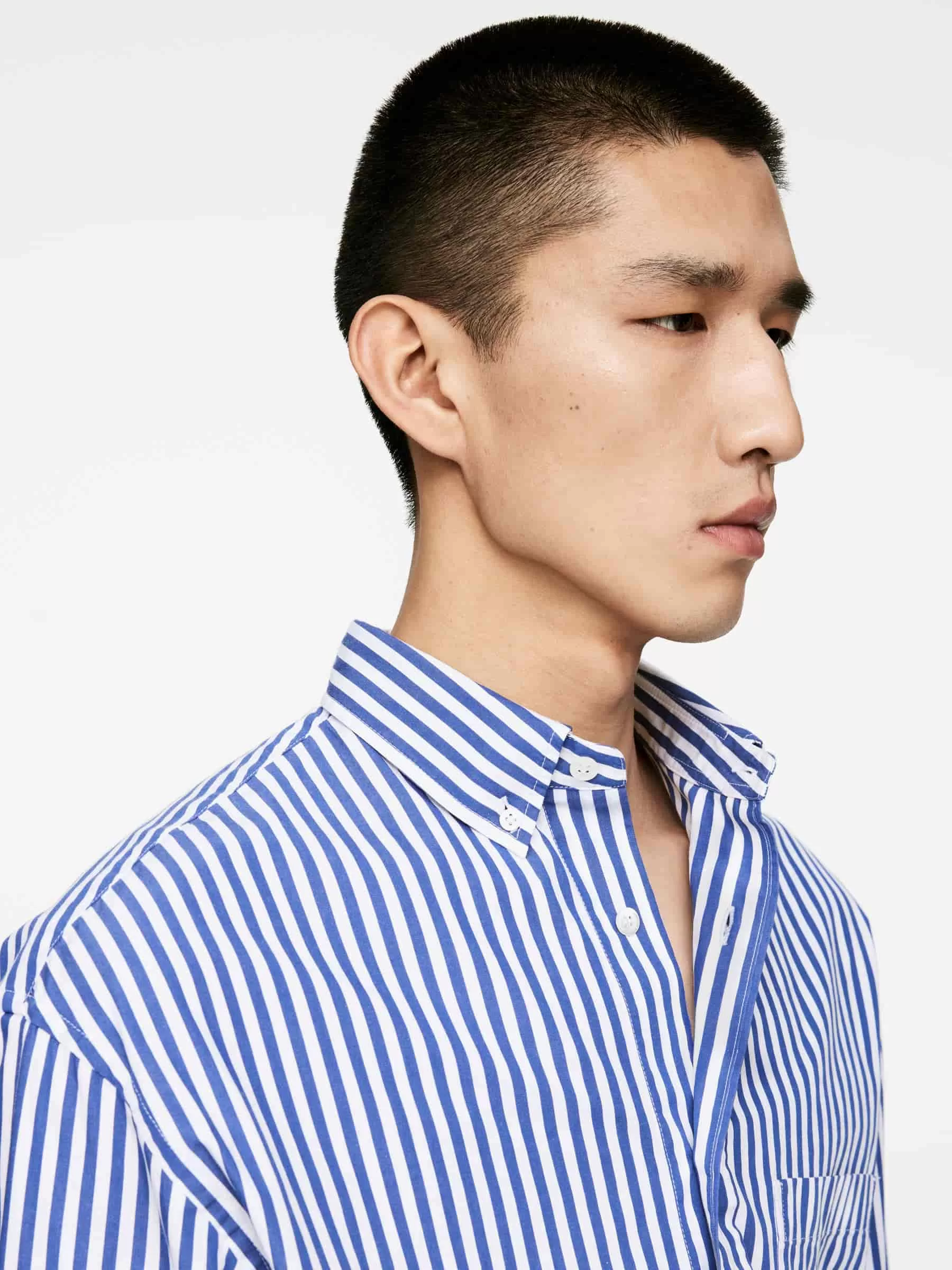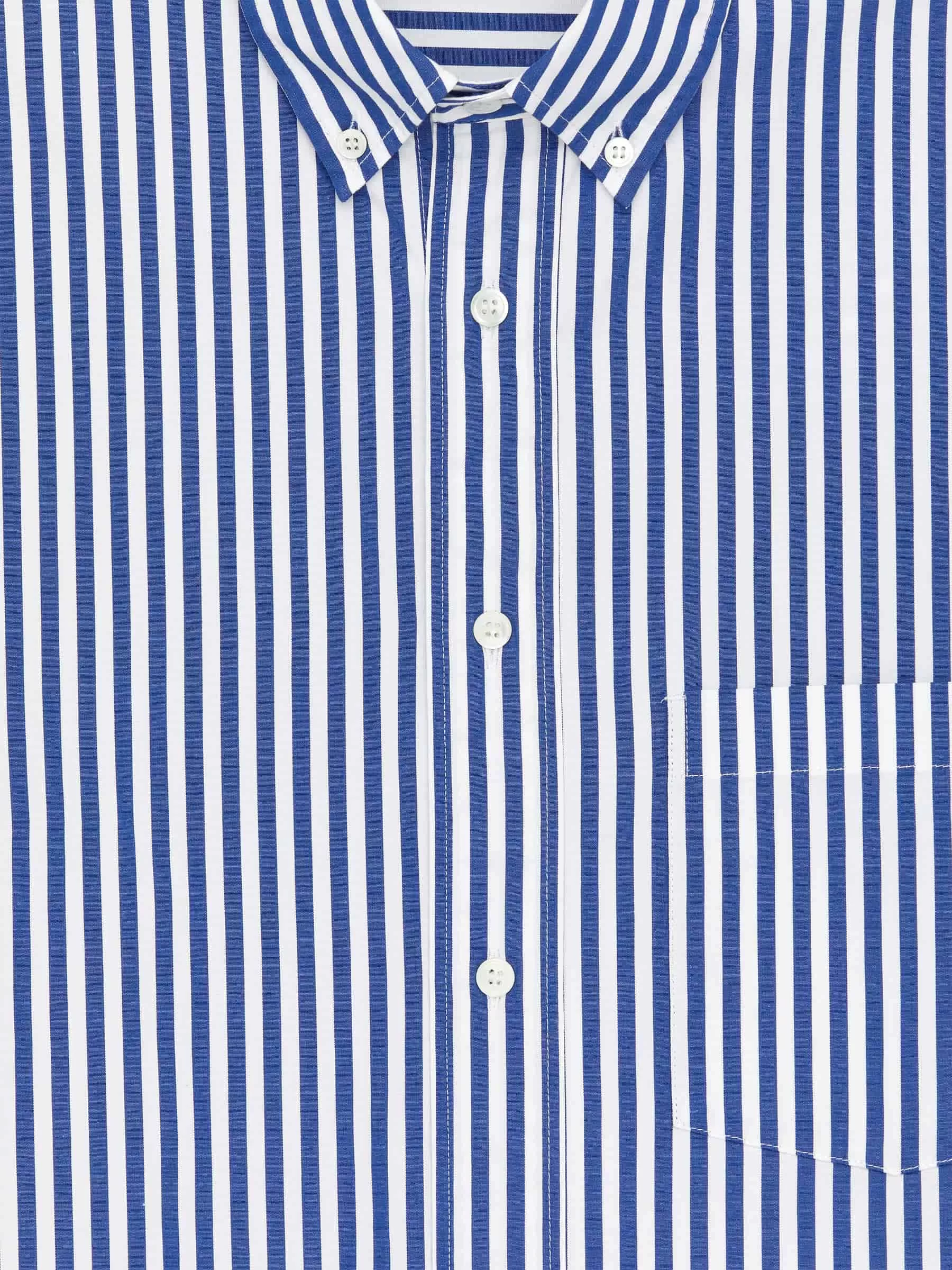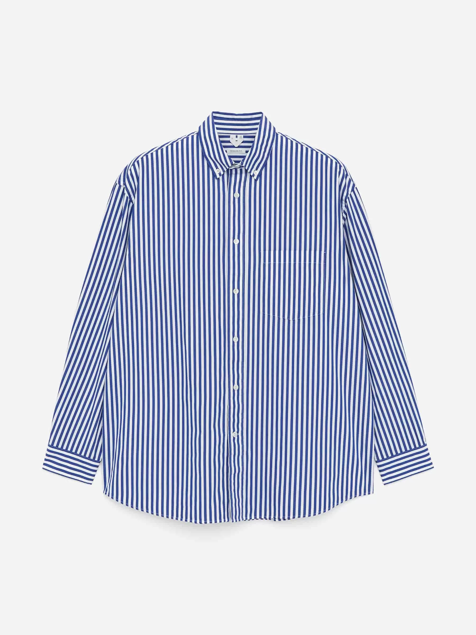 Poplin shirt cut for an oversized fit. Detailed with a button-down collar, front buttoning and a single chest pocket. Buttoned cuffs. Slightly curved hemline.