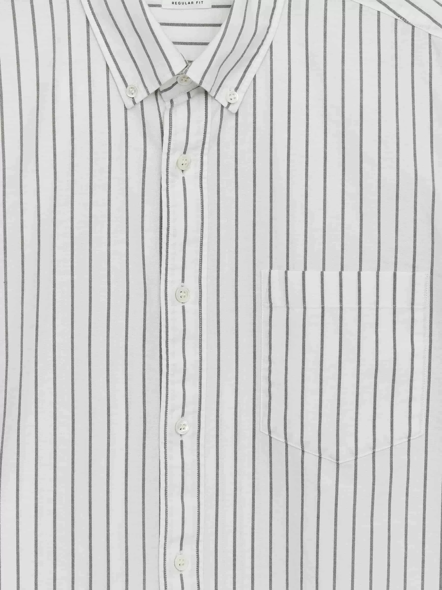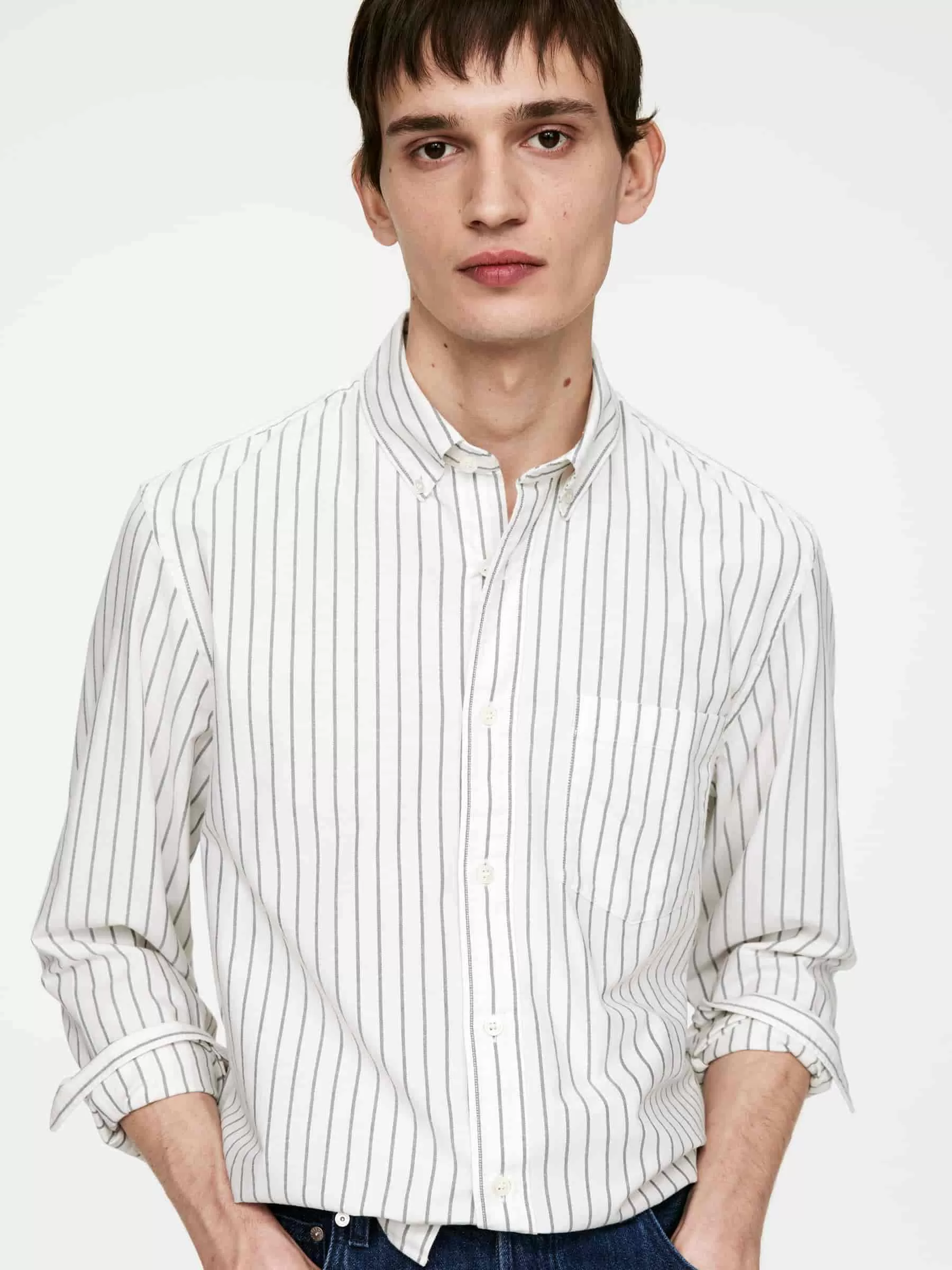 This shirt is one of ARKET’s archetypical designs, a regular-fit shirt with a button-down collar. This iteration is sewn from an Oxford weave. A casual style with a regular front placket and a chest pocket. Rounded hemline.