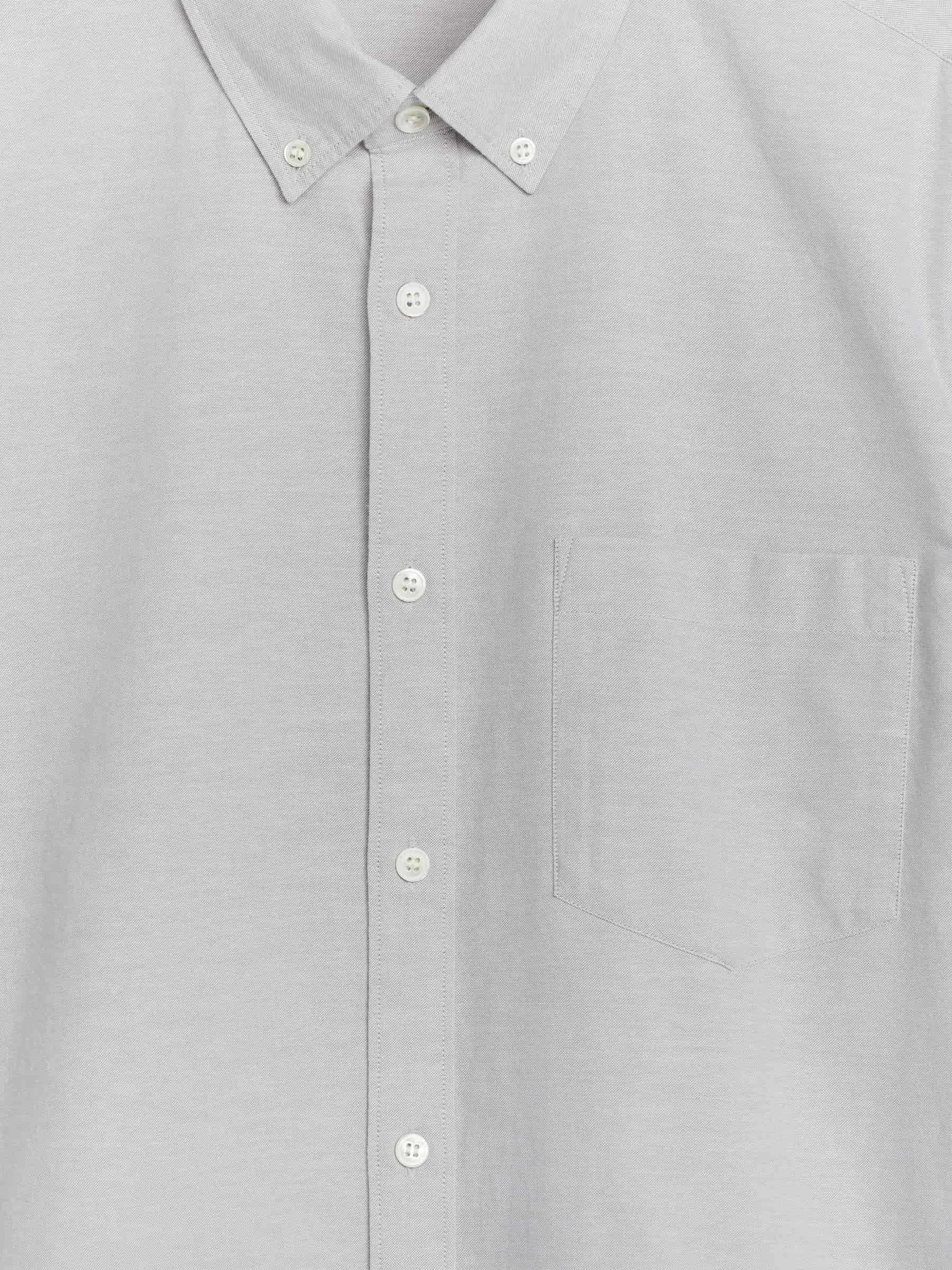 This shirt is one of ARKET’s archetypical designs, a regular-fit shirt with a button-down collar. This iteration is sewn from an Oxford weave. A casual style with a regular front placket and a chest pocket. Rounded hemline.