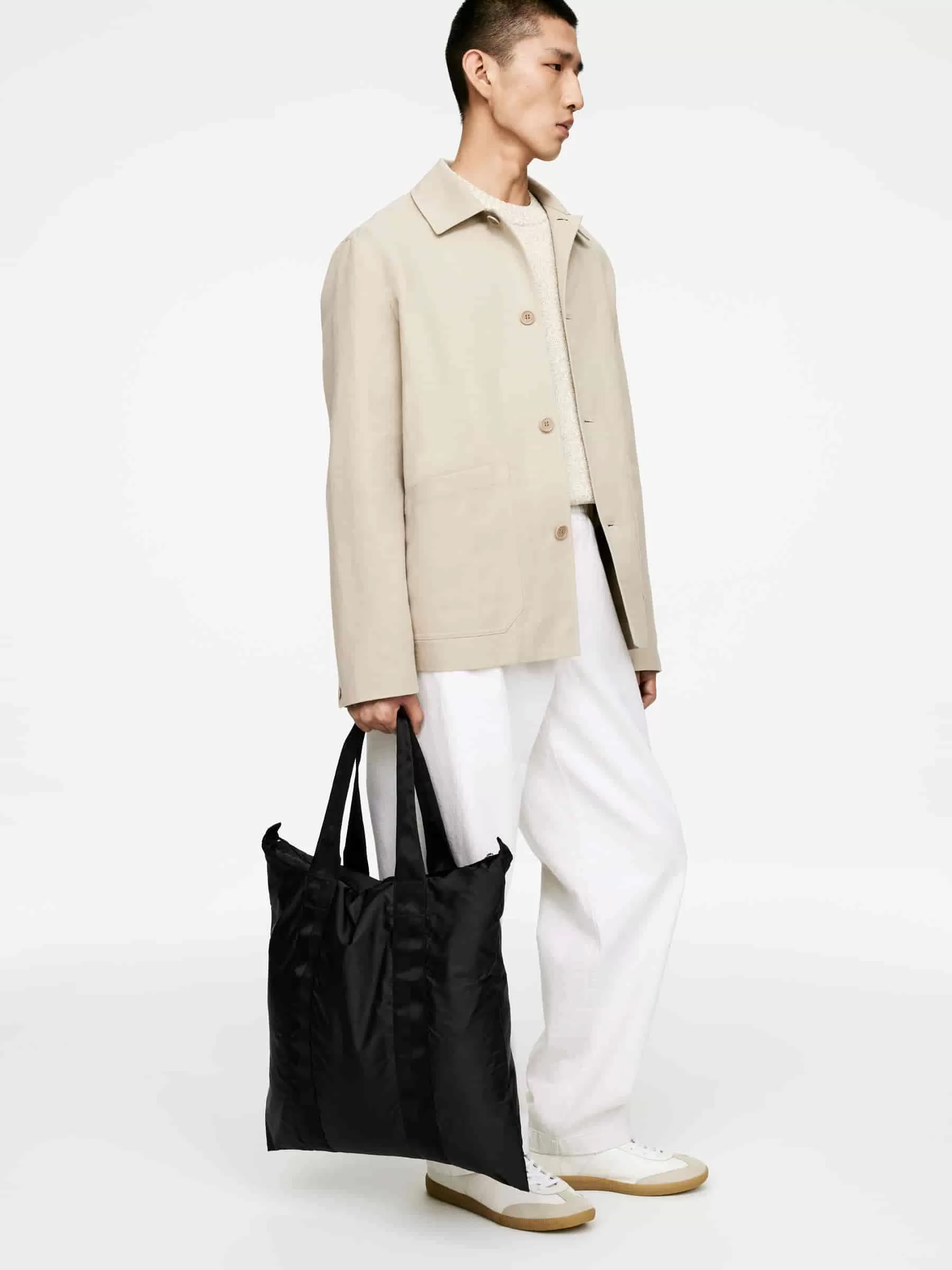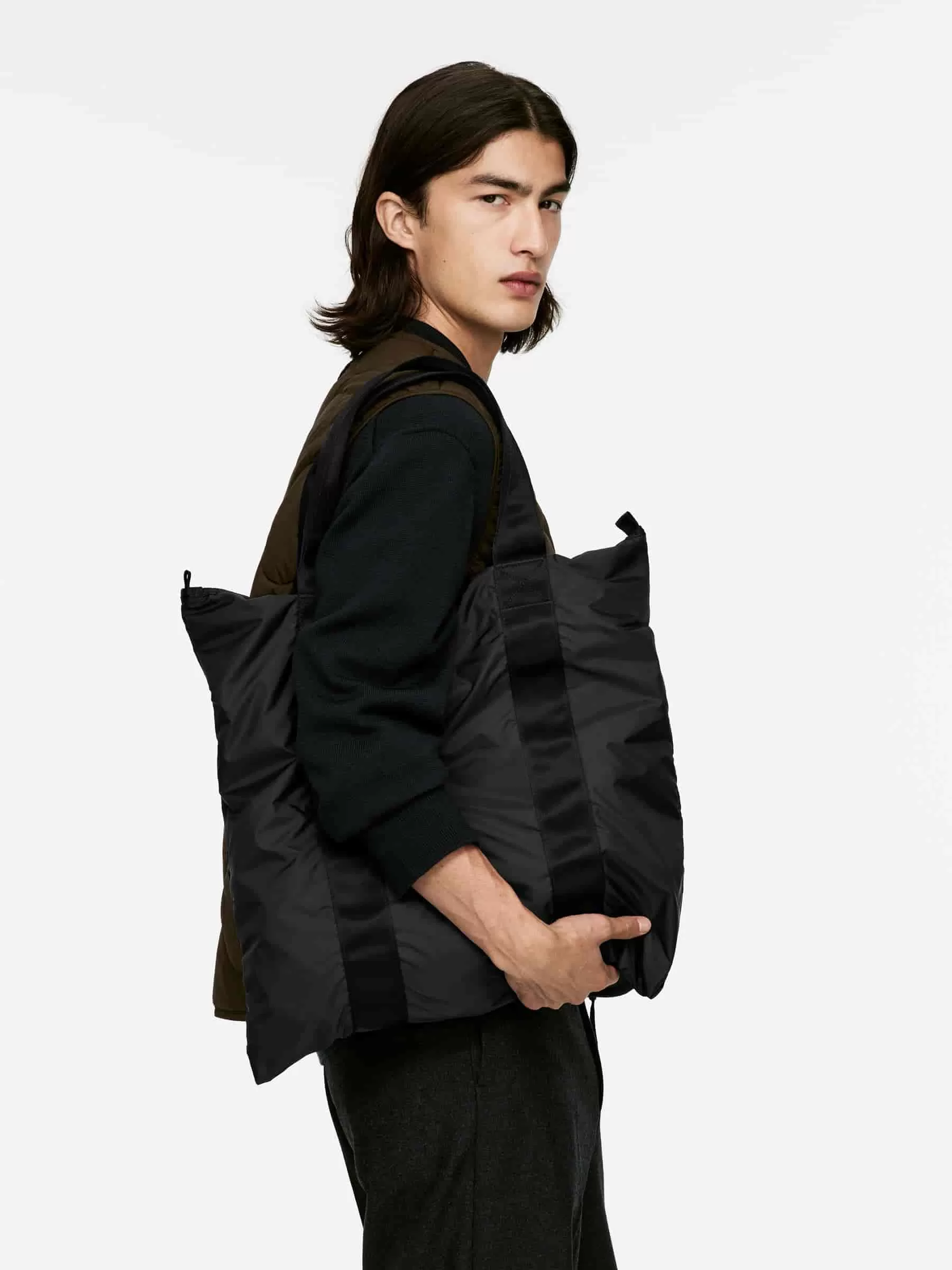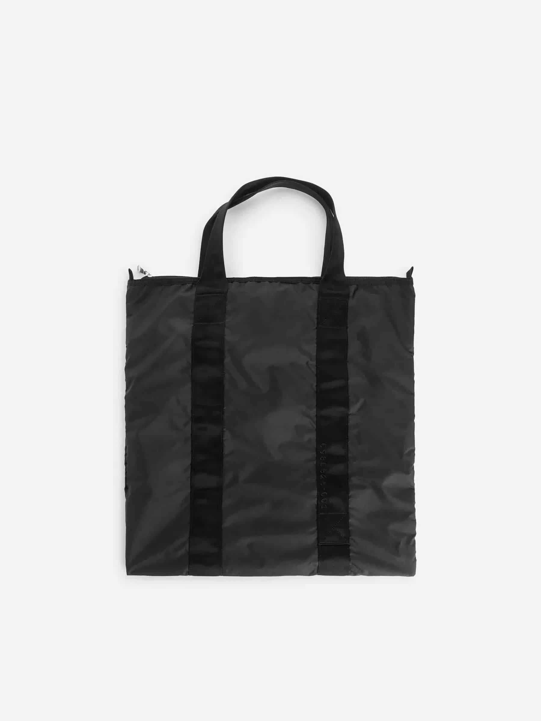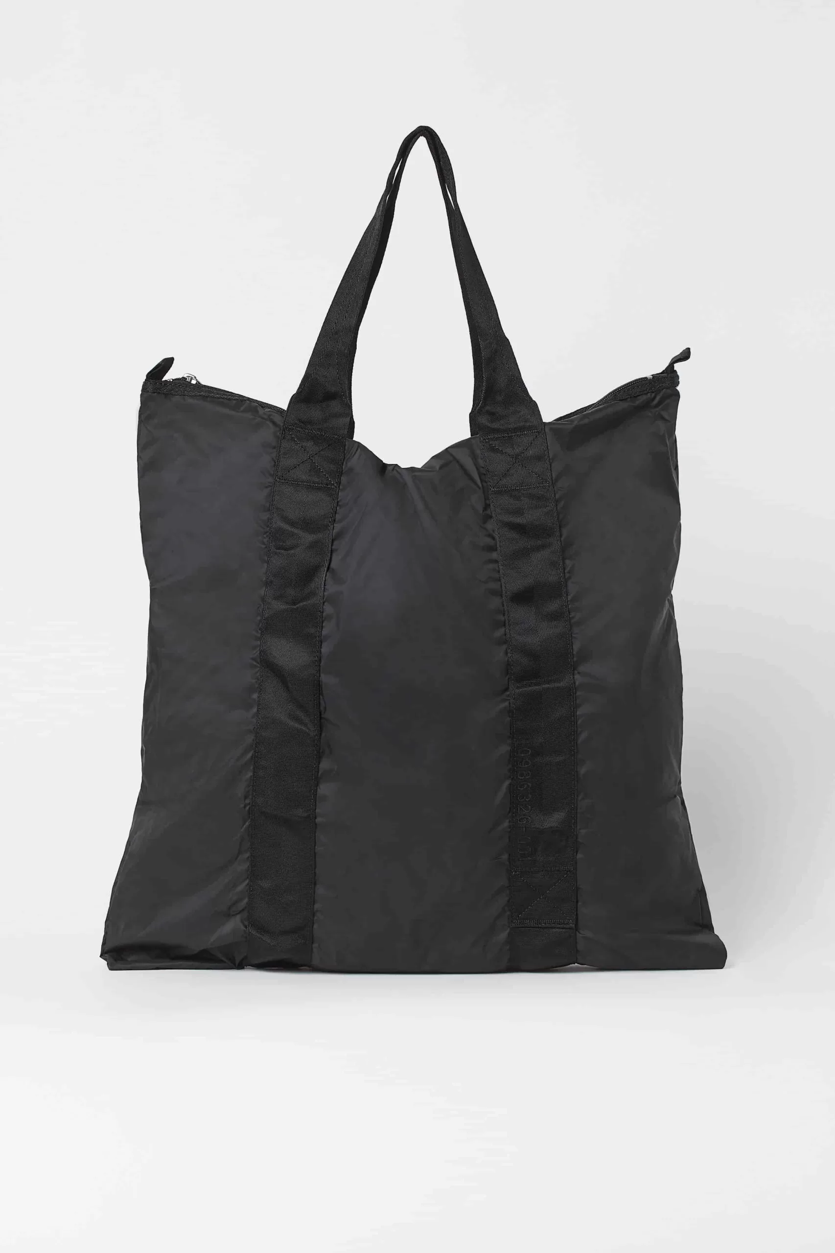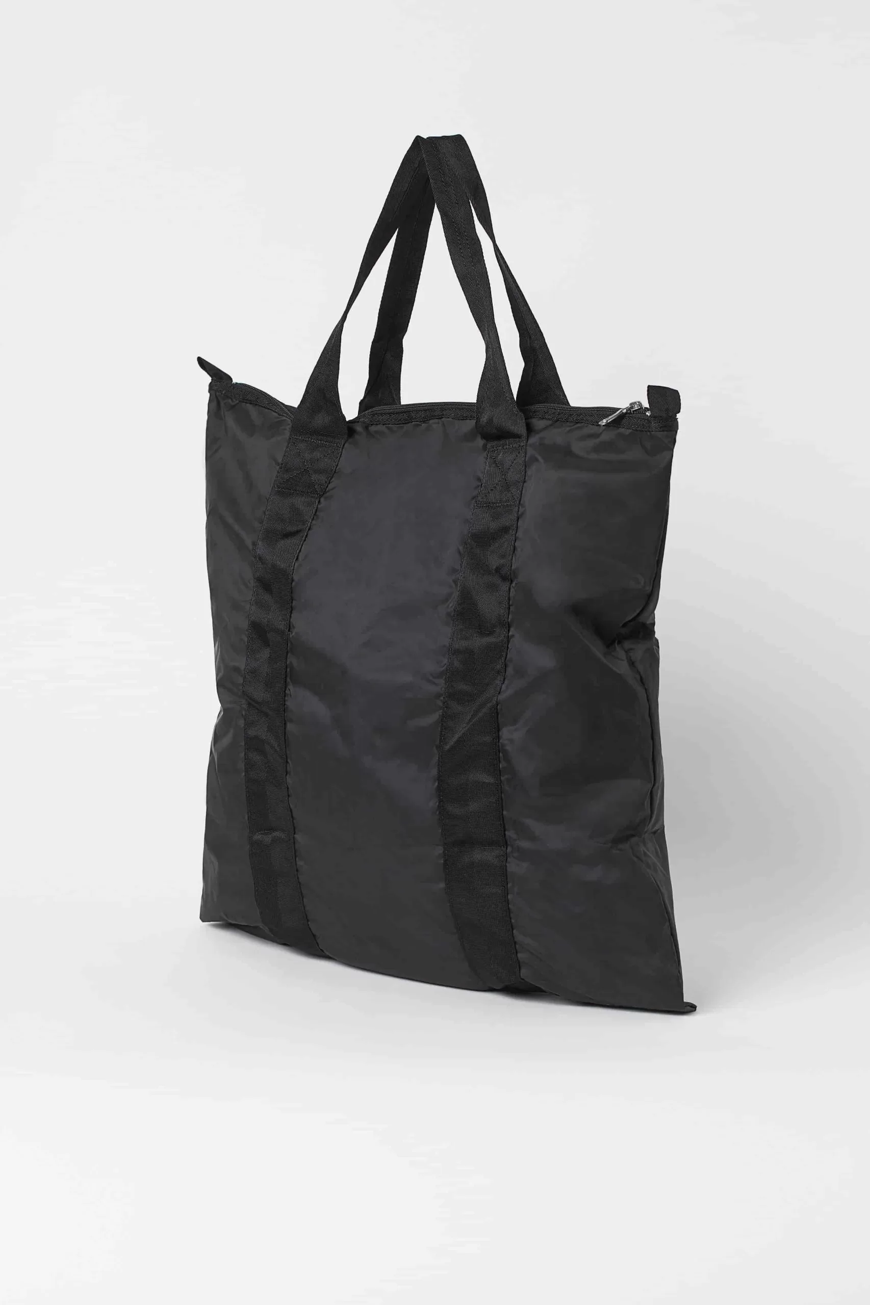 This roomy tote bag fits in its own internal zip pocket for easy storage. Crafted in lightweight and durable polyester with water-repellent properties. Easy to pack for traveling, it offers extra luggage space and works well for shopping, beach days and picnic. Robust webbing handles allow for carrying heavier items. Updated design with an interior pocket that holds 15” laptops. Top zip closure. Two interior pockets. Size 48 x 48 cm.