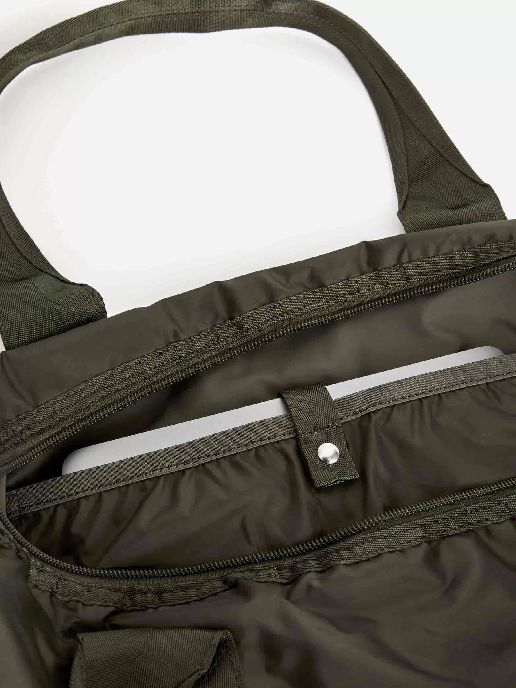 This roomy tote bag fits in its own internal zip pocket for easy storage. Crafted in lightweight and durable polyester with water-repellent properties. Easy to pack for traveling, it offers extra luggage space and works well for shopping, beach days and picnic. Robust webbing handles allow for carrying heavier items. Updated design with an interior pocket that holds 15” laptops. Top zip closure. Two interior pockets. Size 48 x 48 cm.