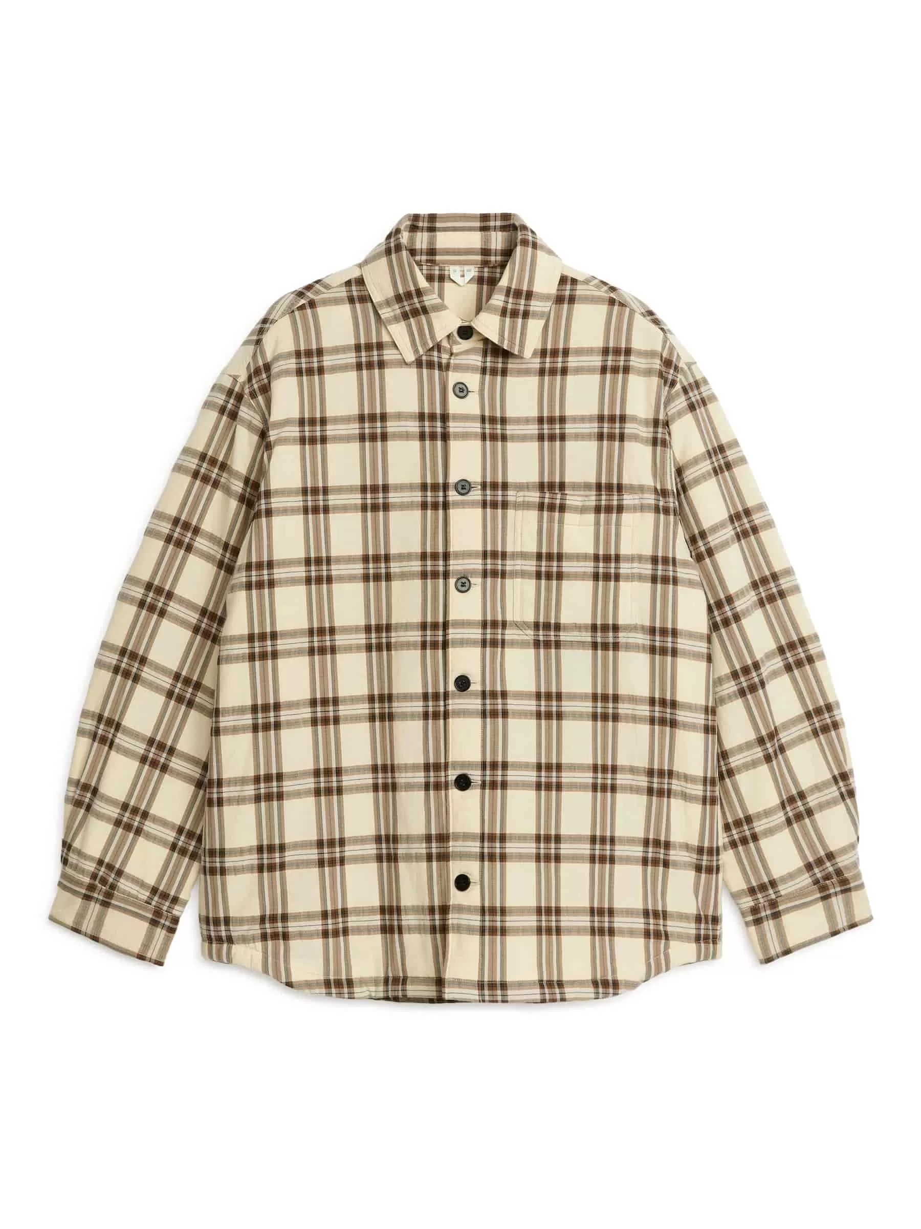 Relaxed overshirt with quilted lining and padding. Styled with a single chest pocket and corozo buttons.
