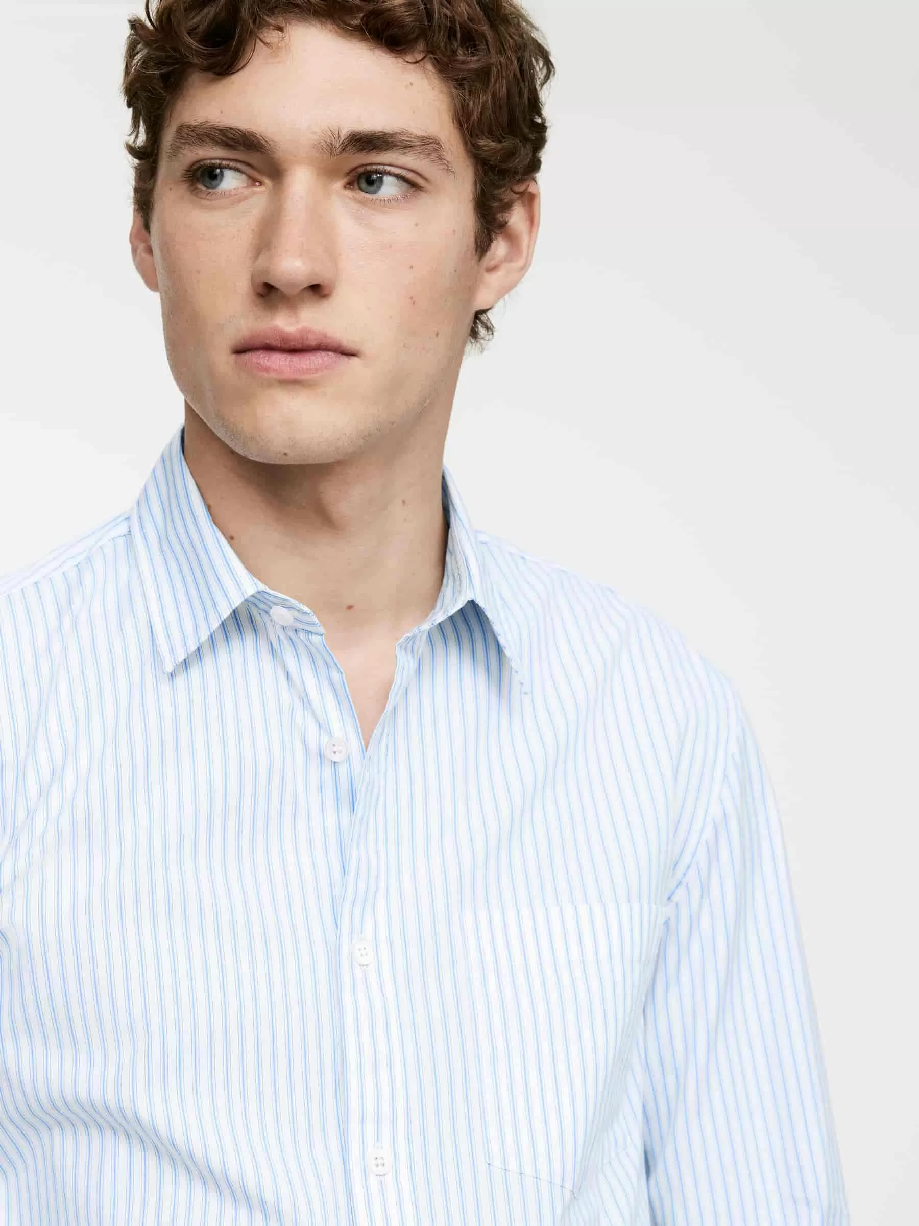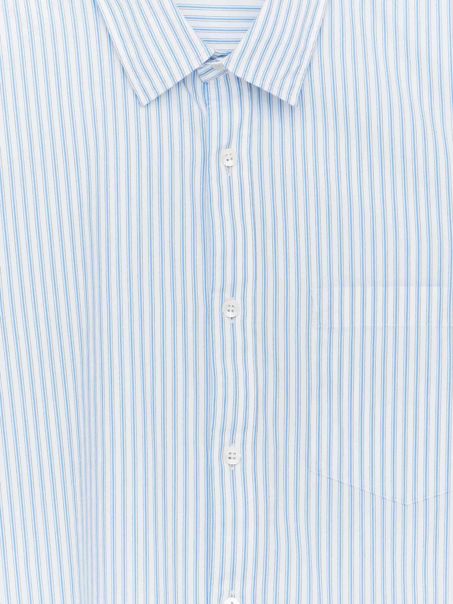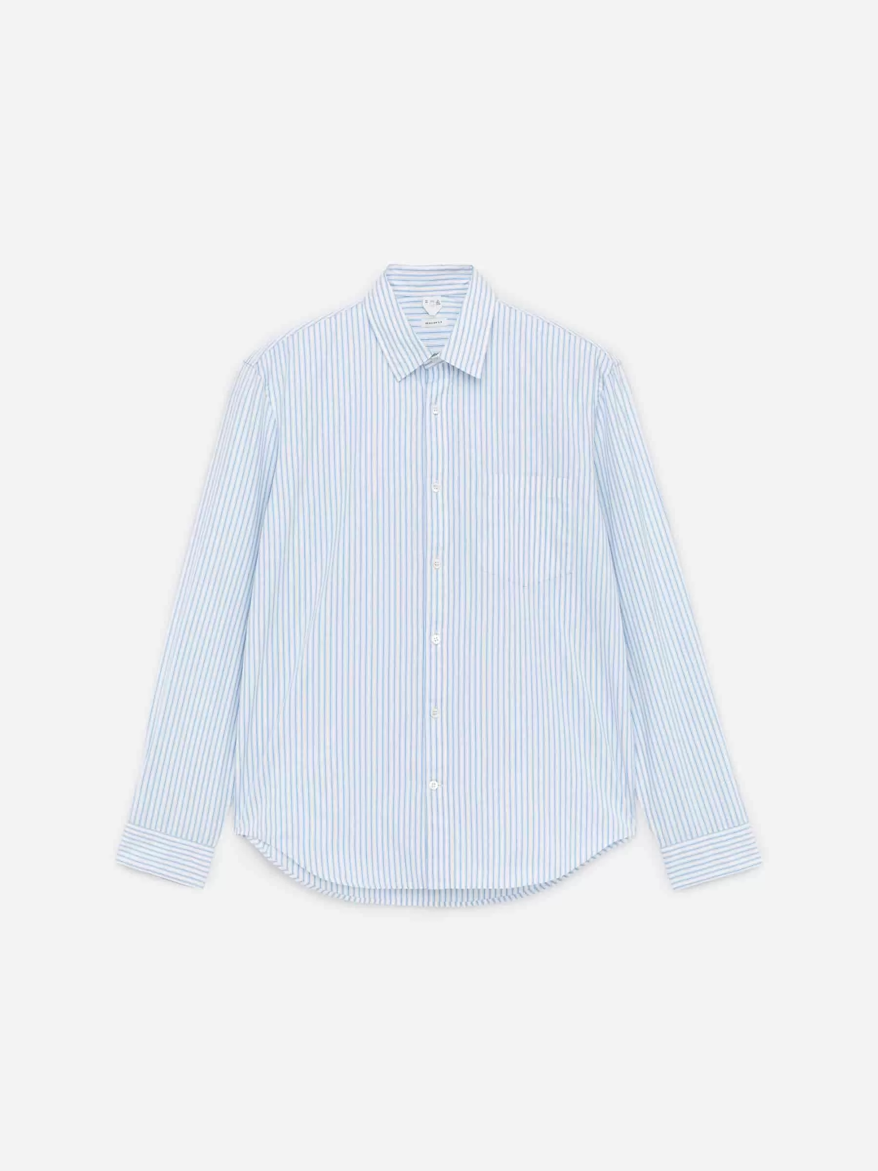 Long-sleeve shirt crafted from a cotton poplin fabric featuring a pattern of yarn-dyed stripes. Styled with a pointed collar and a single chest pocket. Curved hemline. Regular fit.