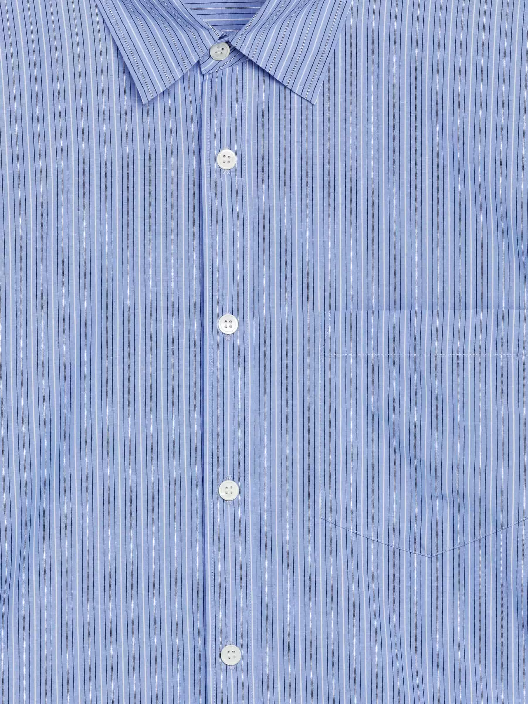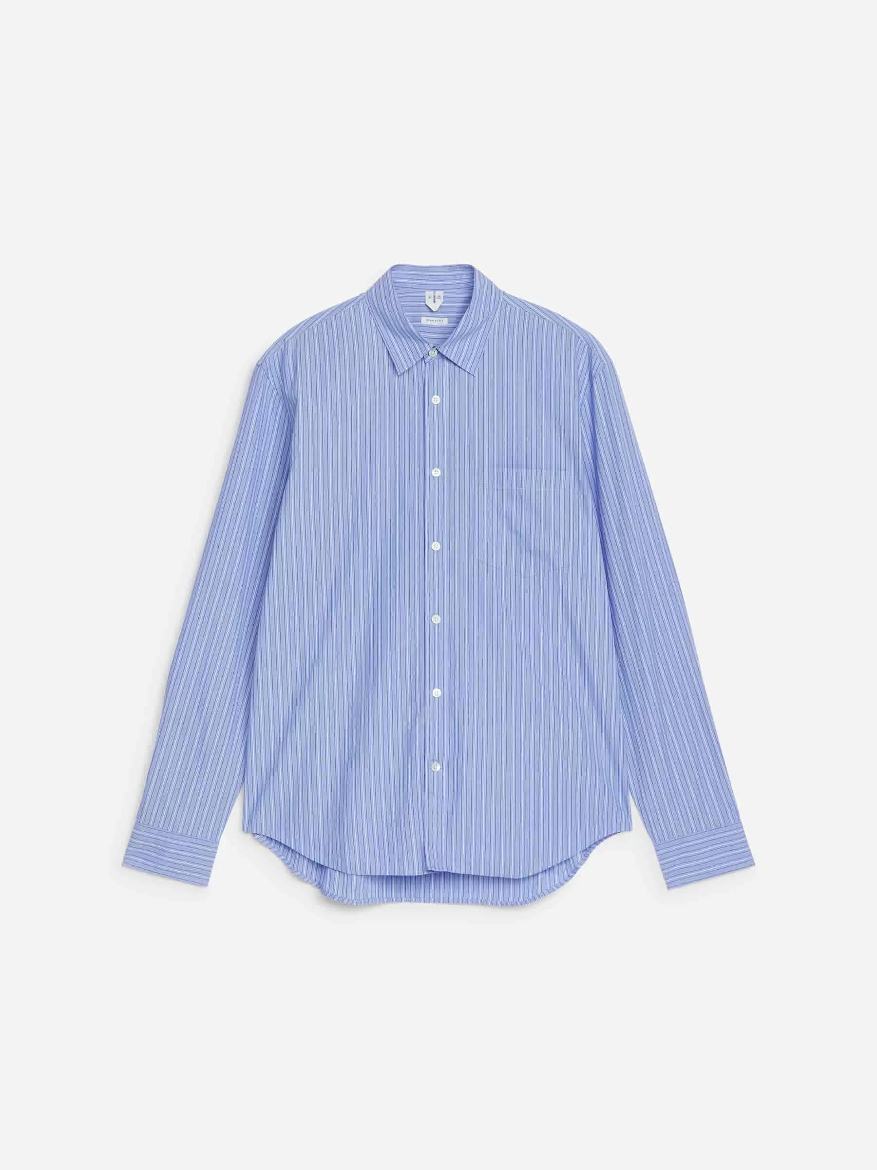 Shirt crafted from a crisp cotton poplin. Cut for a regular fit, styled with a regular collar and a single chest pocket. Buttoned cuffs. Curved hemline. Mother of pearl buttons, which means that this product contains material from animal origin.