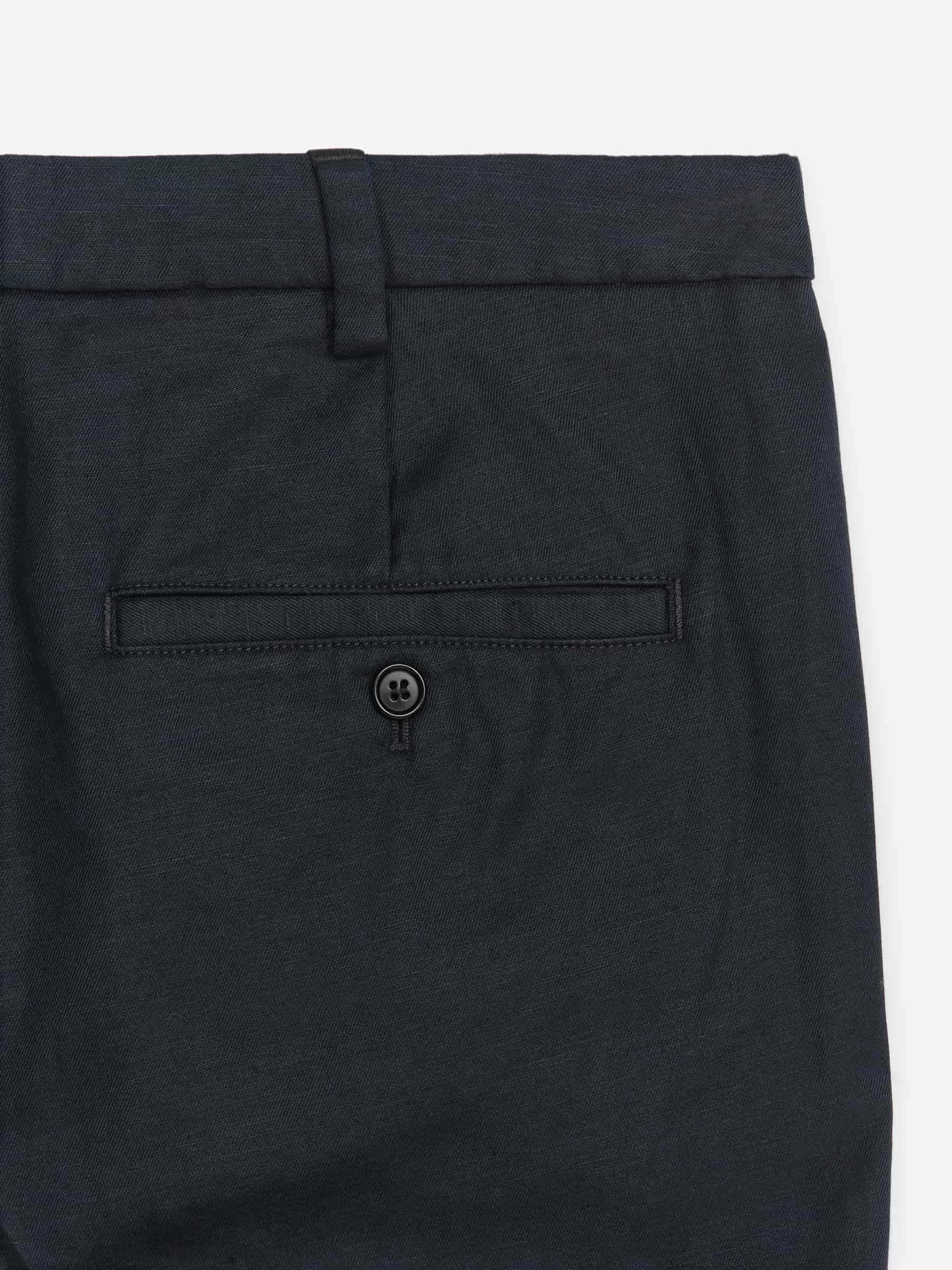 ARKE Men Regular Cropped Cotton-Linen Trousers Dark Blue