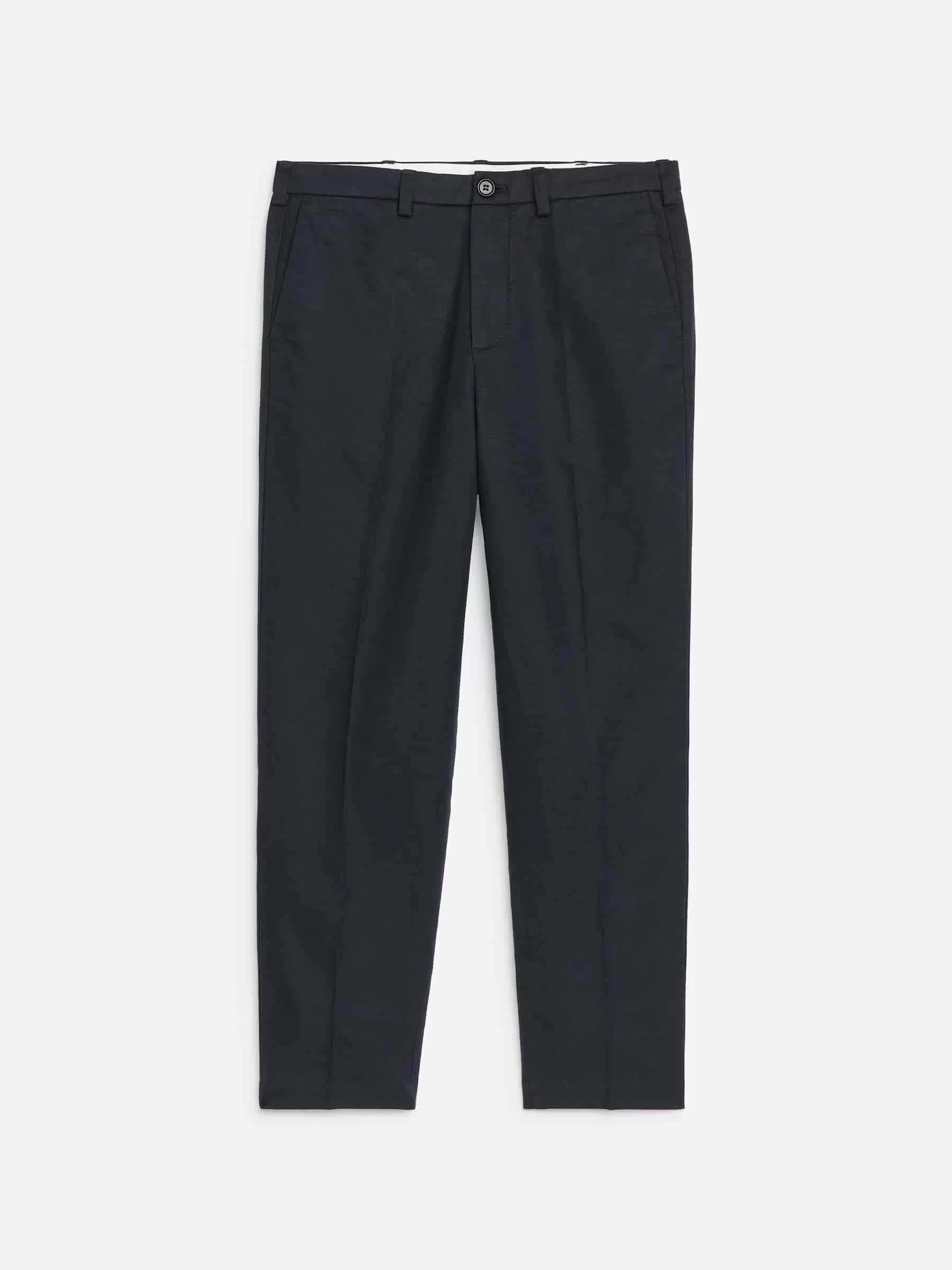 Twill trousers made from a cotton linen blend. A cropped style with a regular fit, detailed with slanted side pockets and buttoned welt pockets at the back. The right-hand pocket holds a hidden coin pocket. Belt loops and zip fly. Pressed creases.