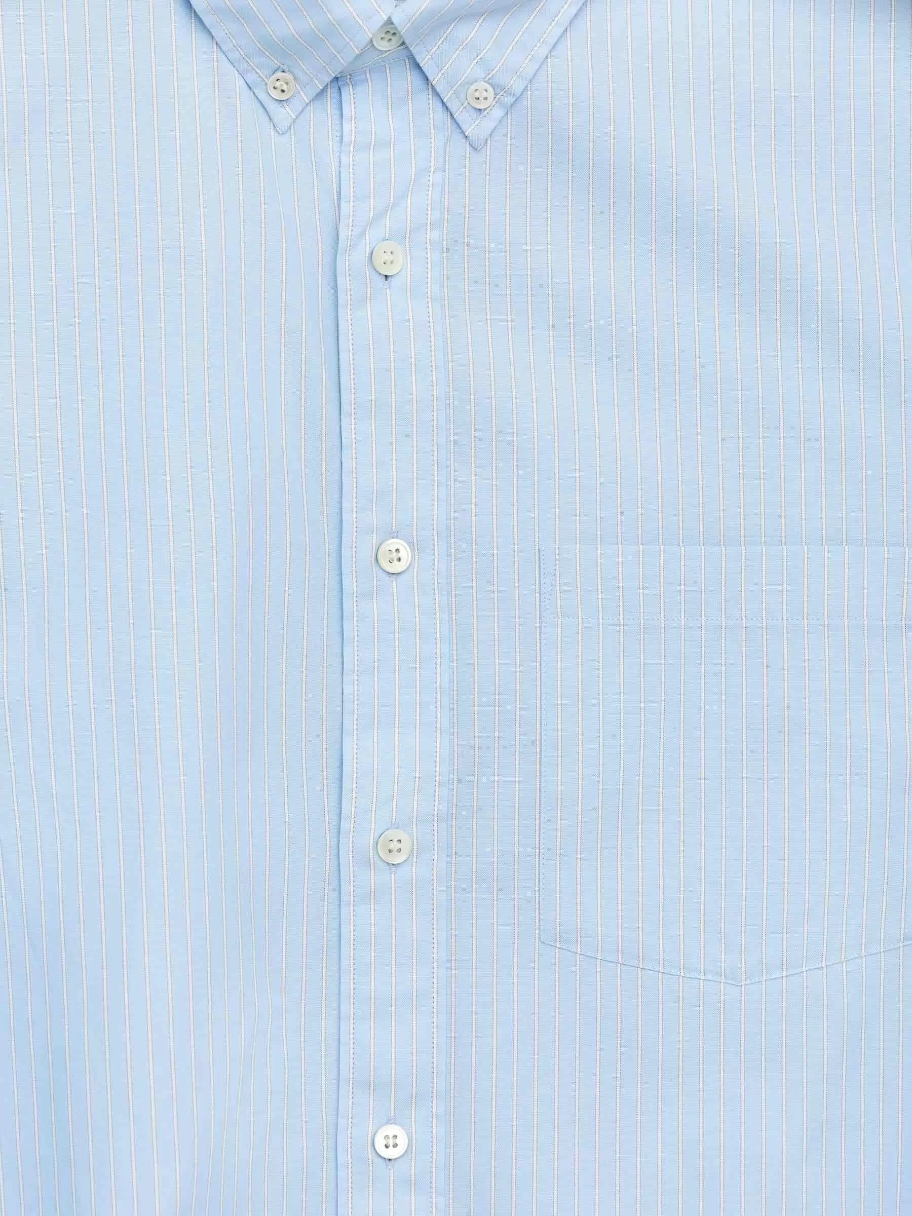 Cotton shirt cut for a relaxed fit. Styled with a button-down collar, front placket and a single chest pocket. Buttoned cuffs. Curved hemline.