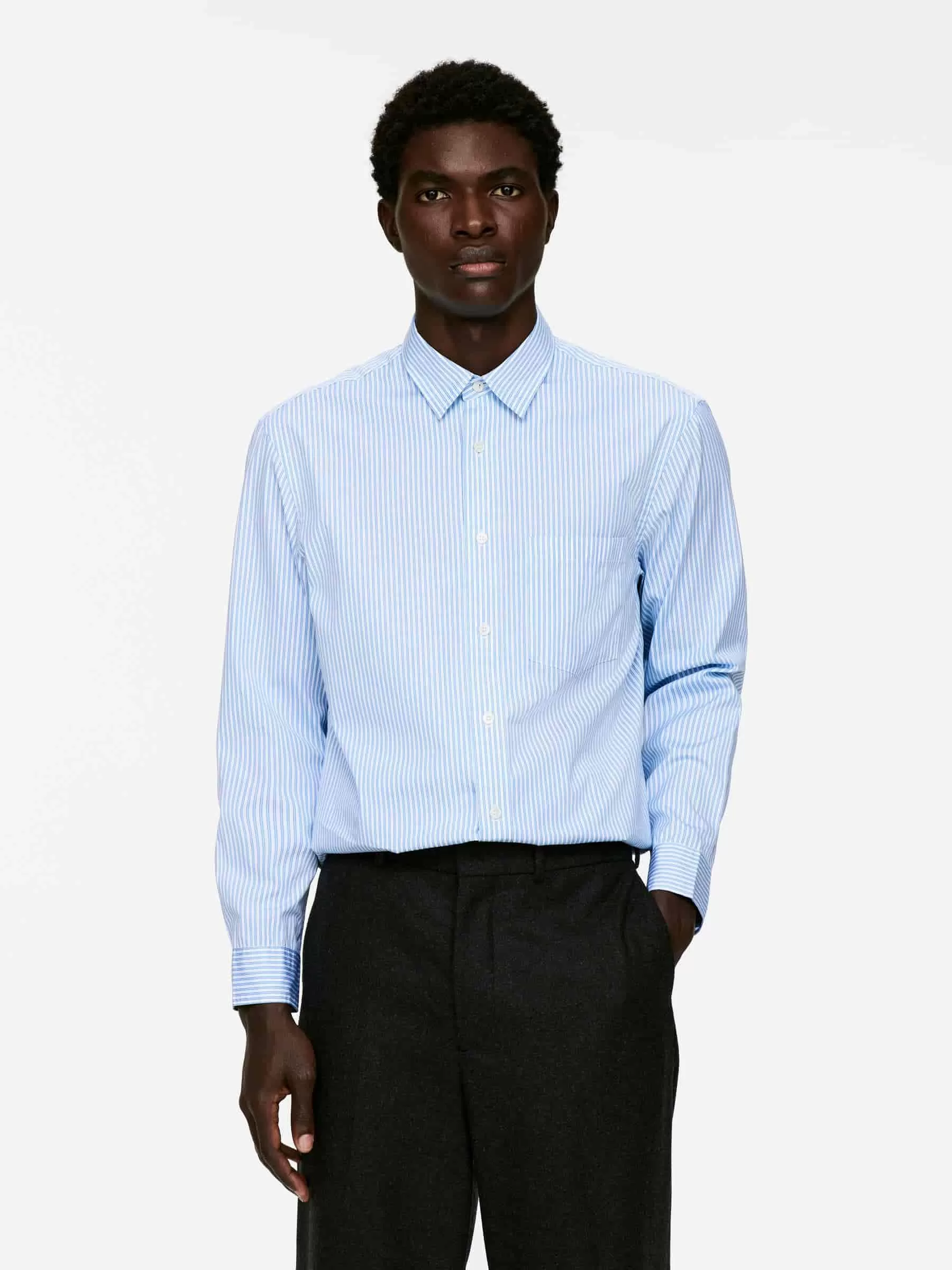 Shirt sewn from a poplin fabric made of cotton. Styled with a single chest pocket and buttoned cuffs. Relaxed fit.