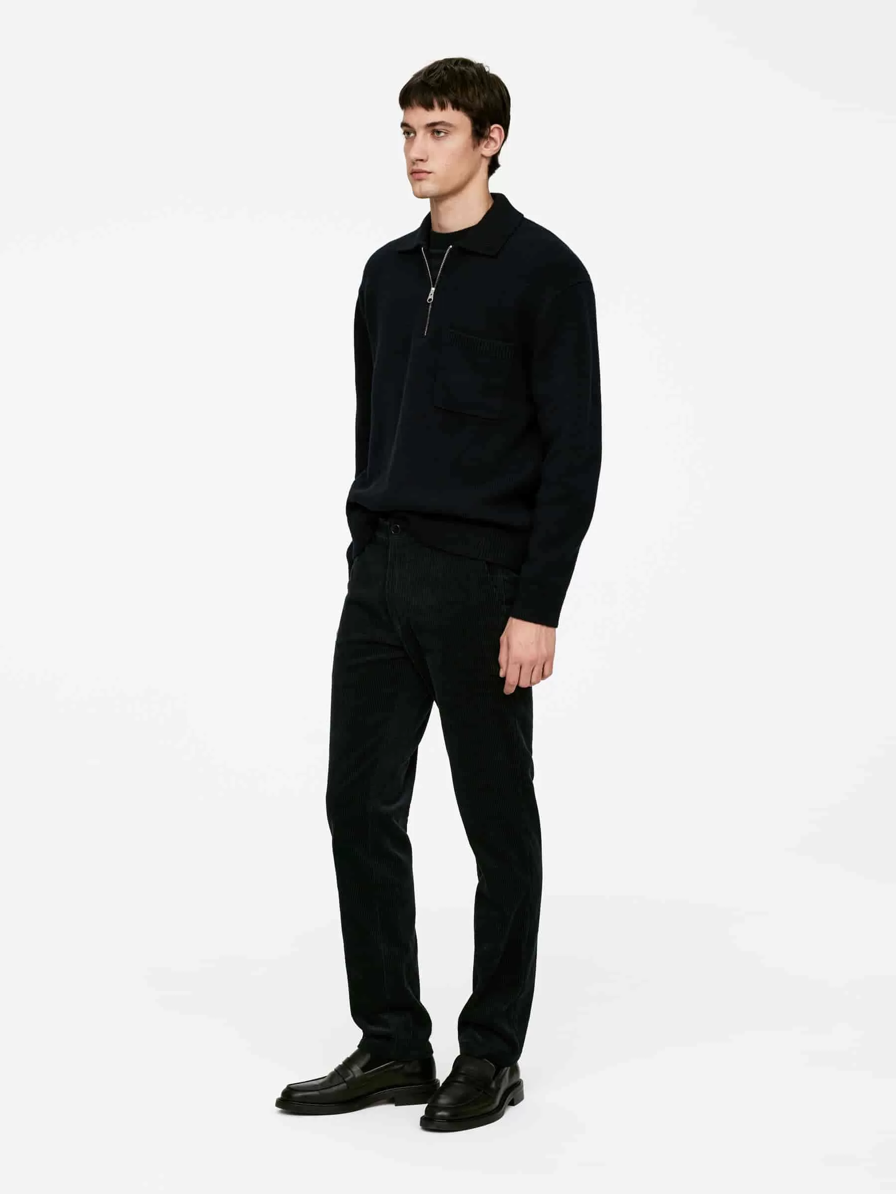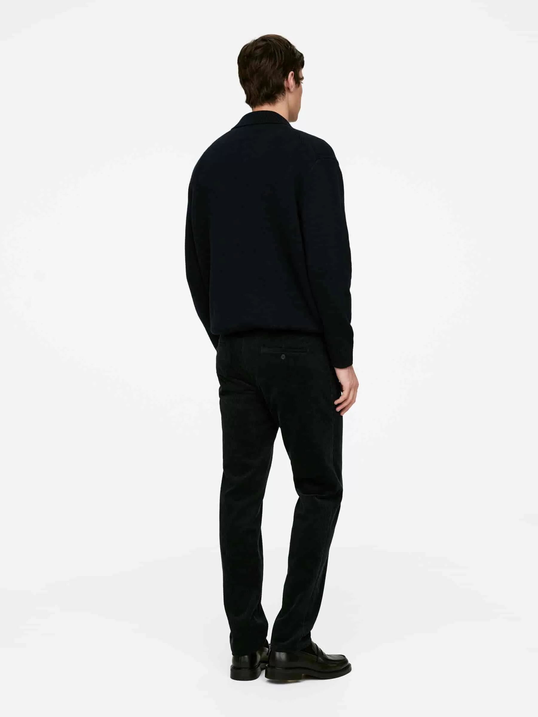 Cotton corduroy trousers cut for a straight fit. Styled with slanted side pockets and welt pockets at the back.