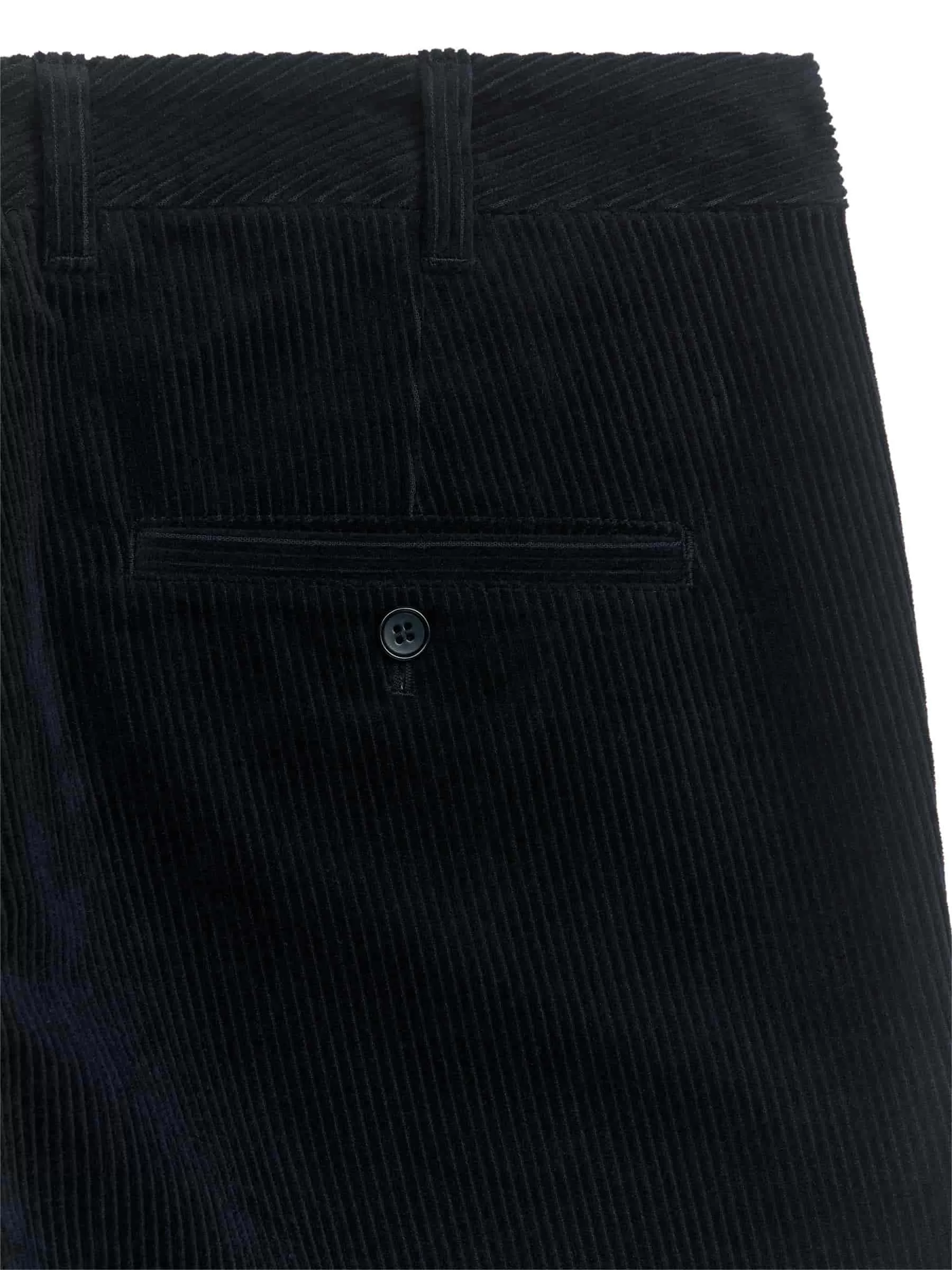 Cotton corduroy trousers cut for a straight fit. Styled with slanted side pockets and welt pockets at the back.