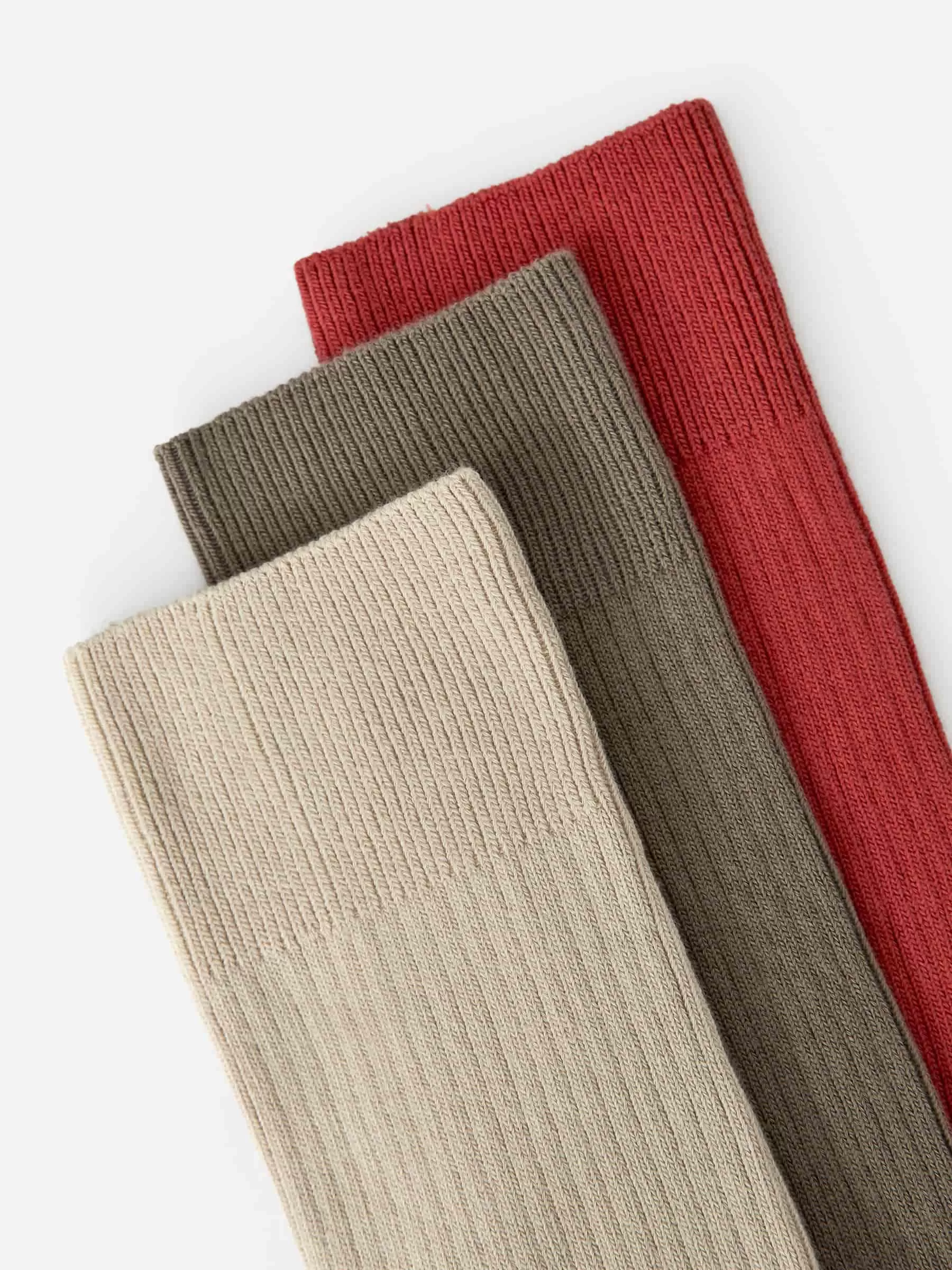 ARKE Men Supima Cotton Rib Socks Set of 3 pairs Beige/Green/Red