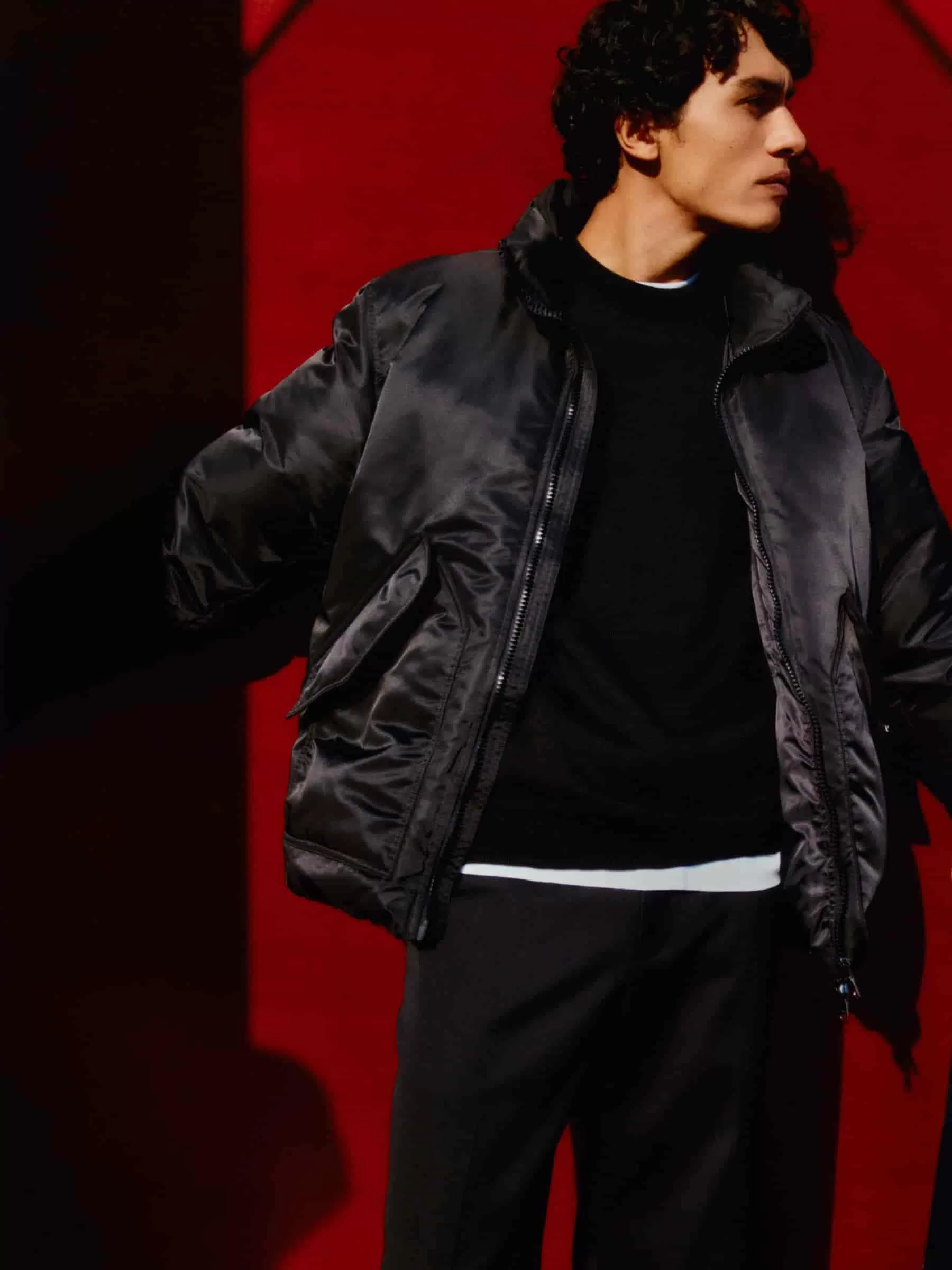 Flight jacket filled with a blend of down and feathers for cold resistance. A nylon twill shell provides wind resistance and water repellent properties. Styled with a high collar and a two-way zip at front. Two large pockets with flaps and snap button closure. Snap buttons at end of sleeves to enable adjustments of the sleeve width. Elastics at inside hemline for heat retention. Inner pocket with zip closure. The Upcycled Down products are filled with recycled down and feathers sourced from Re:Down®. These materials, collected from used textiles, are washed and sterilised at high temperatures without the use of chemicals.
