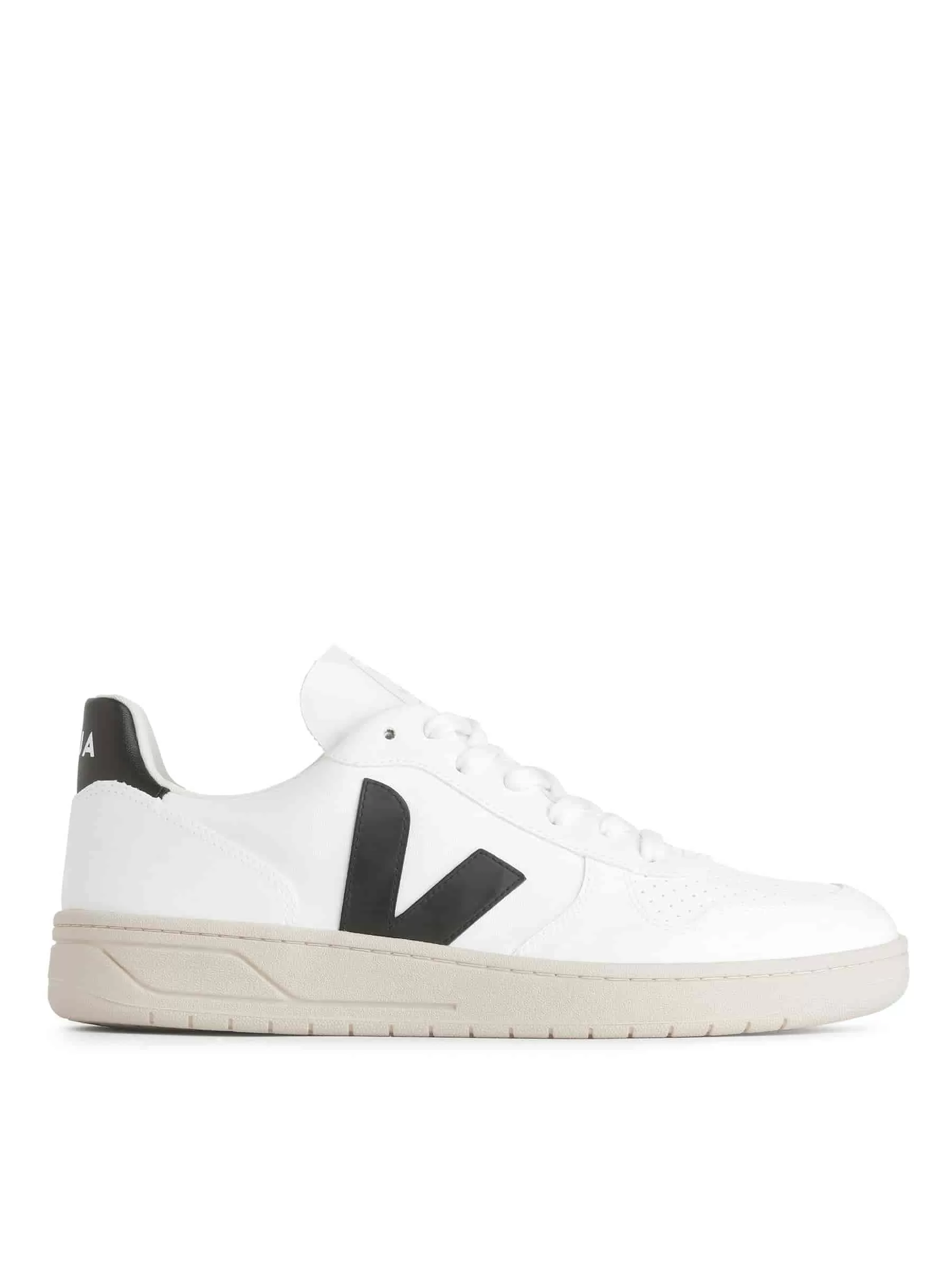 The Veja V-10 silhouette features an upper made of vegan leather, an outsole in Amazonian wild rubber and soft cotton lining. It is detailed with a perforated toe box and a V-logo on both sides.